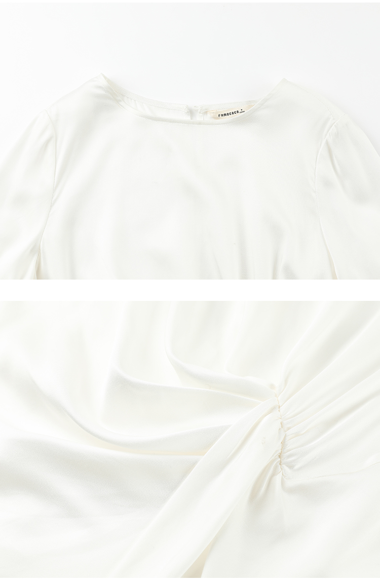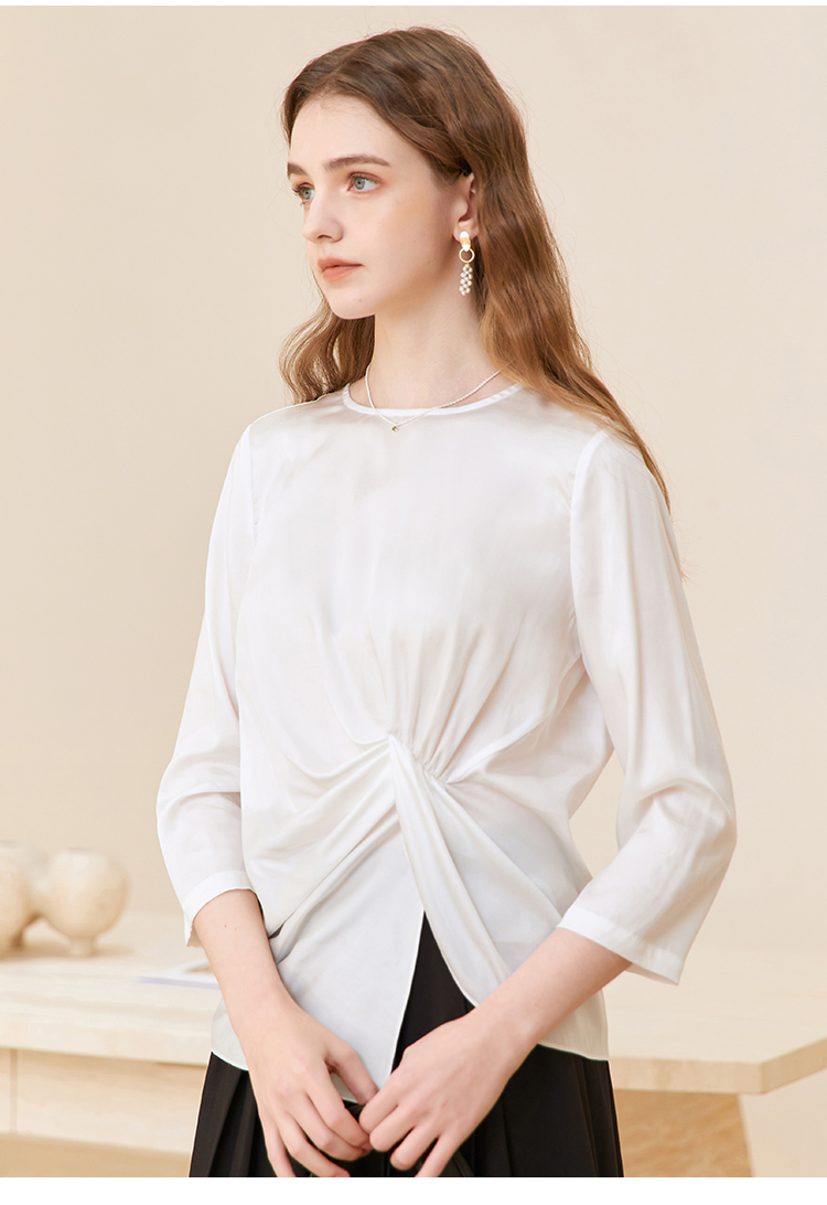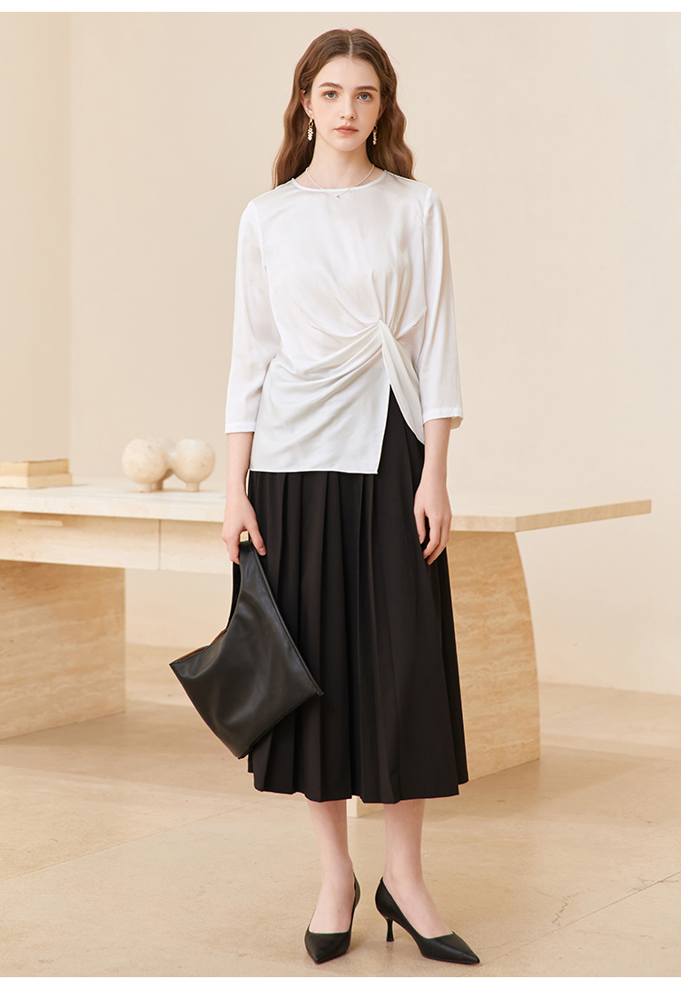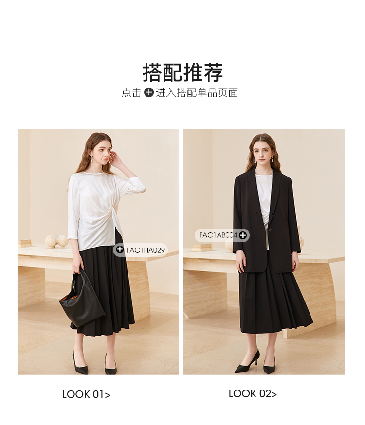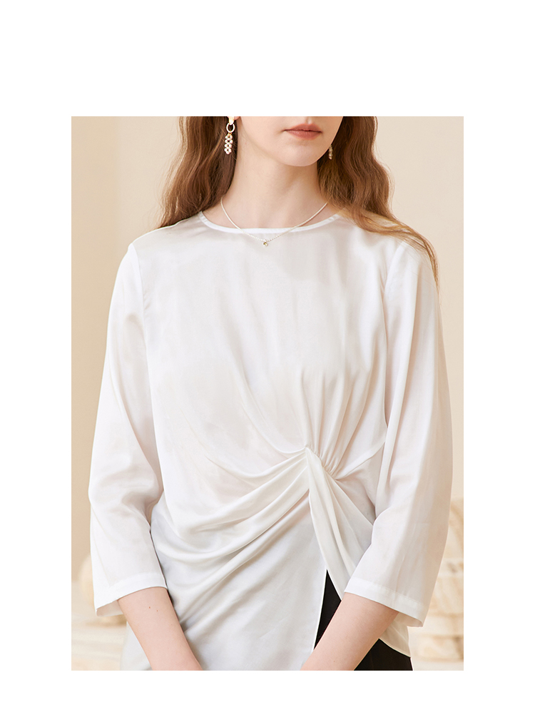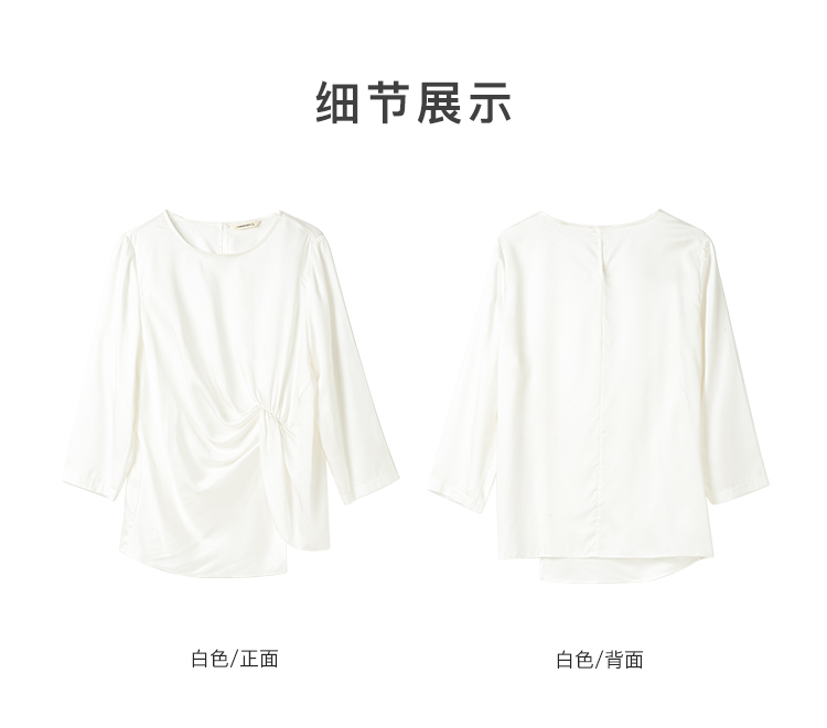 Famecoco天丝垂感t恤女士七分袖垂感不规则内搭上衣FAC1BK005