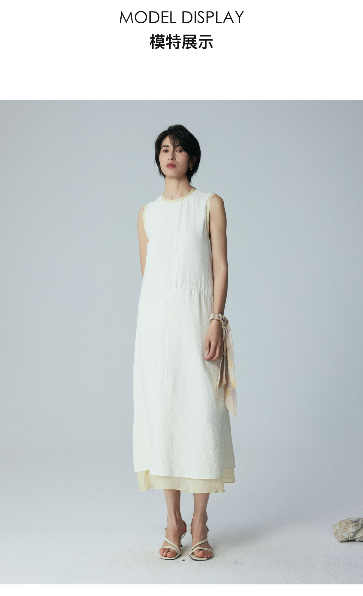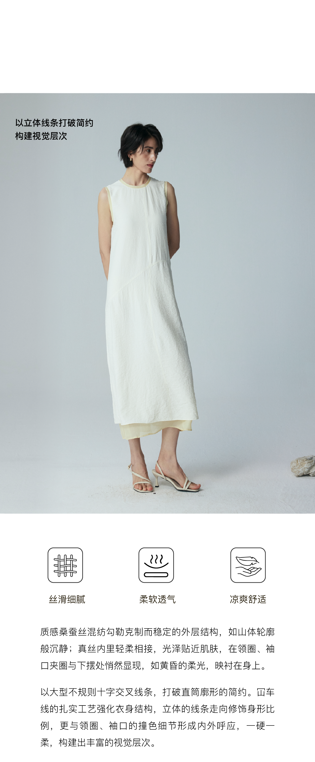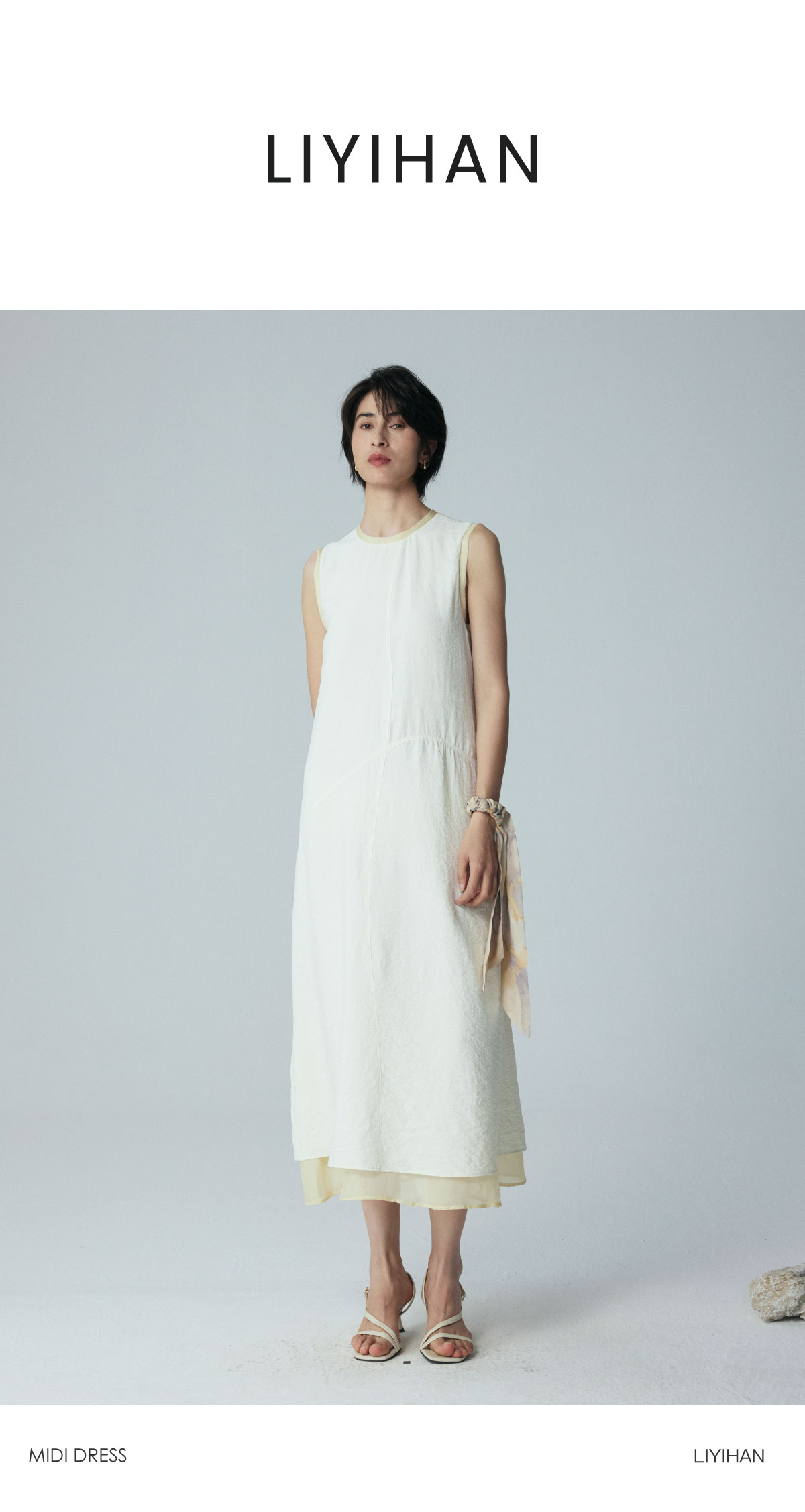 LIYIHAN 2026夏季新款通勤桑蚕丝连衣裙米白色女真丝背心裙设计感