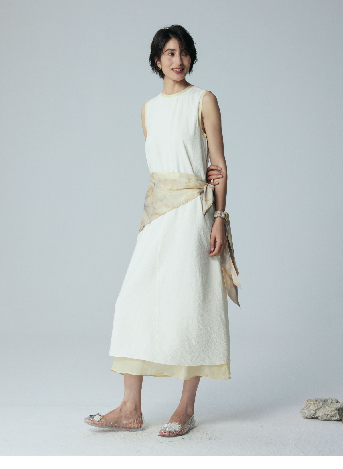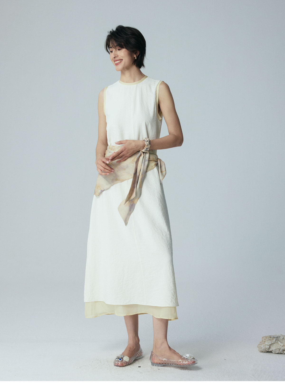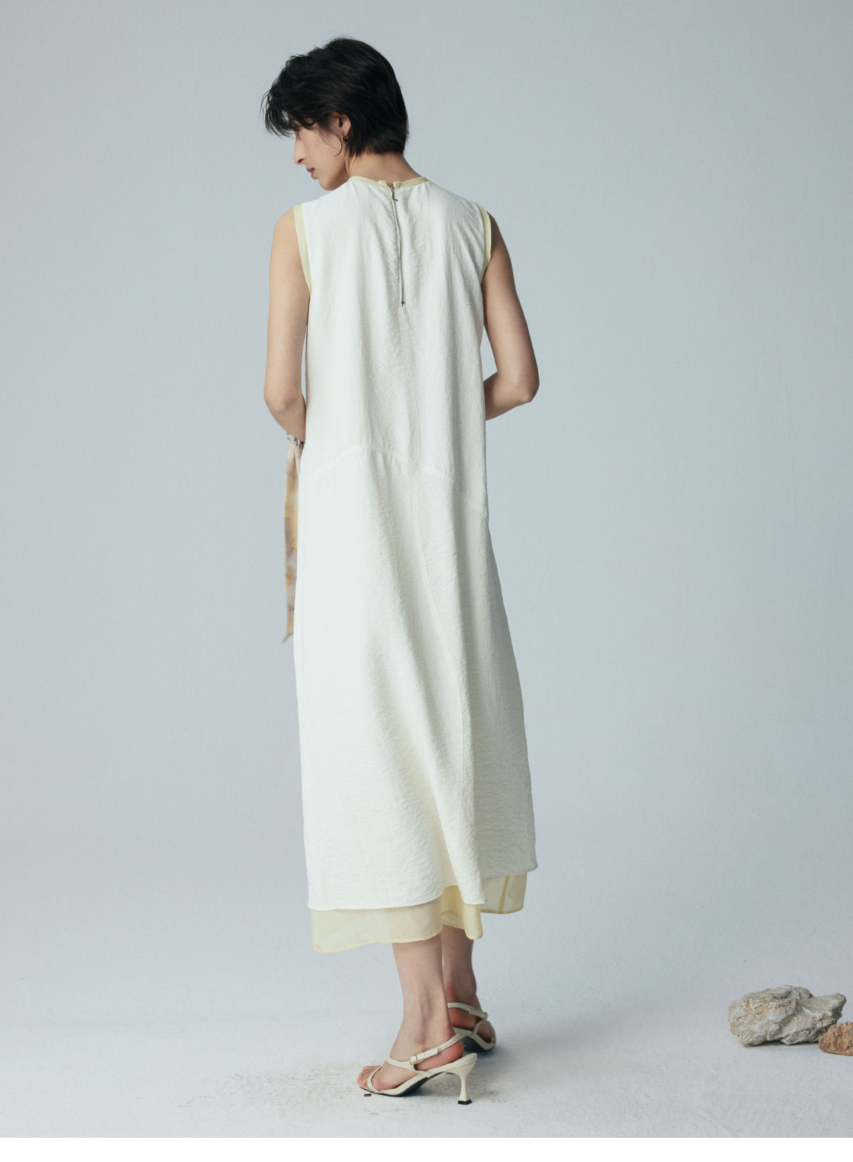 LIYIHAN 2026夏季新款通勤桑蚕丝连衣裙米白色女真丝背心裙设计感