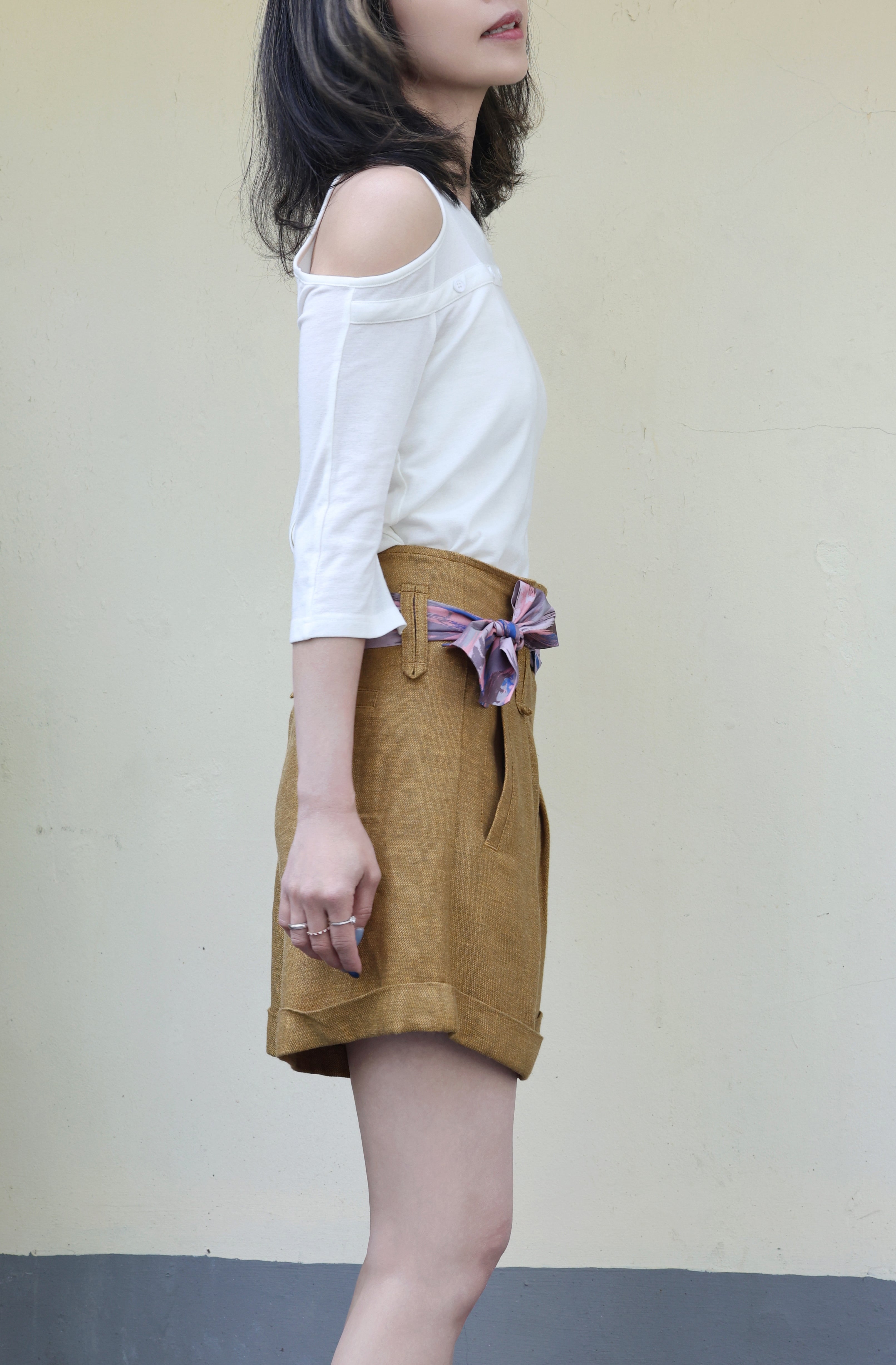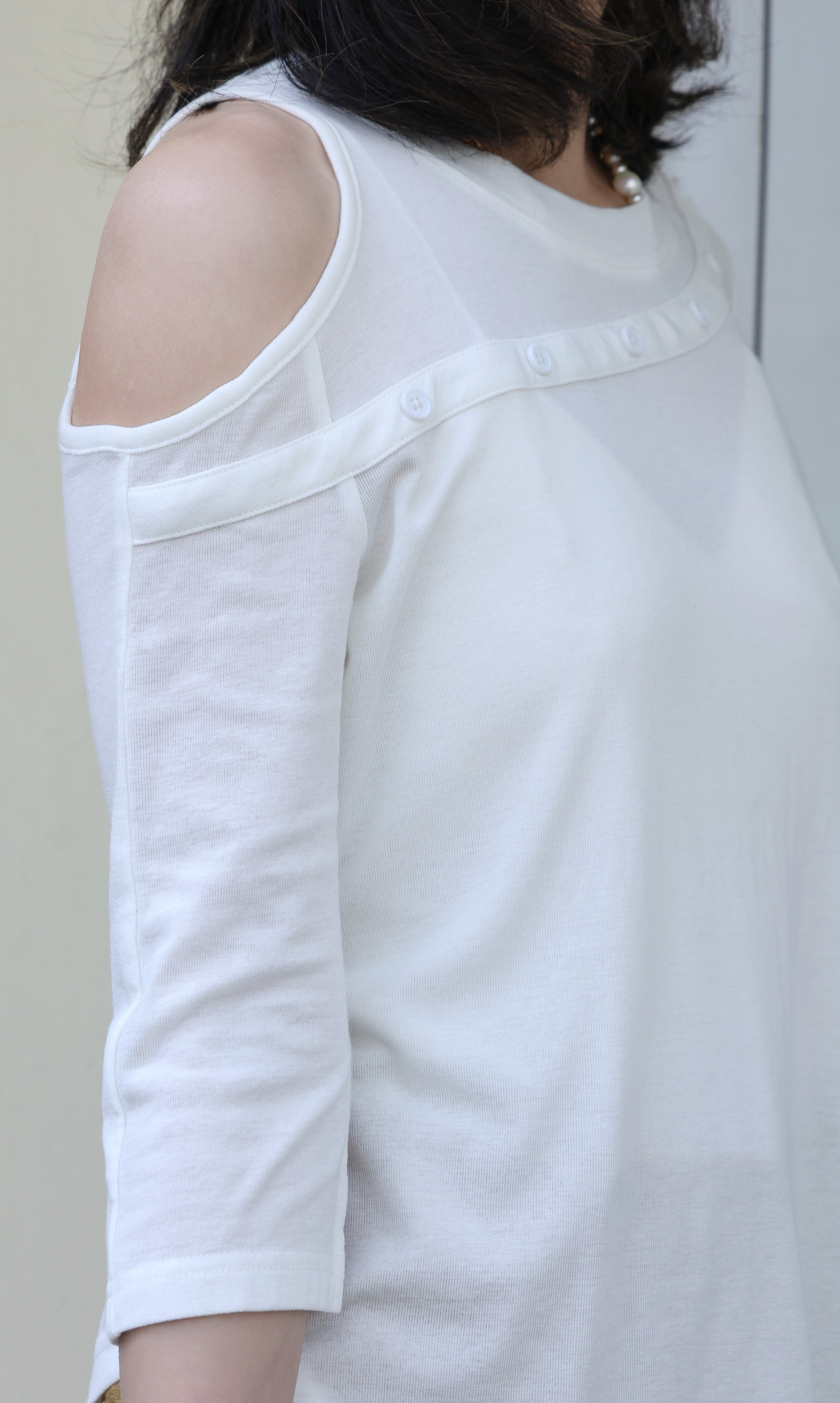 TYNVIE 单剪裁肩扣 T 恤-白色