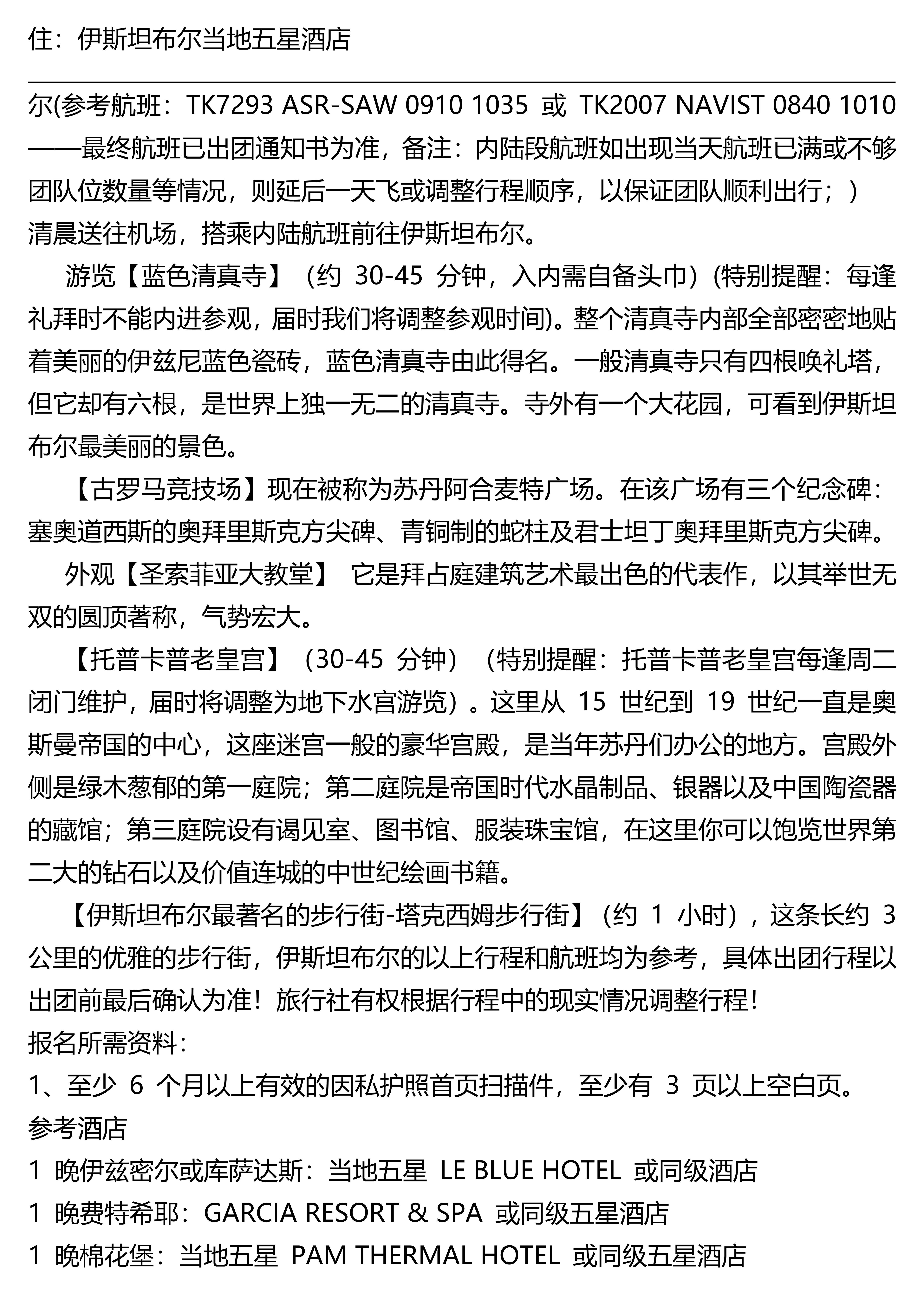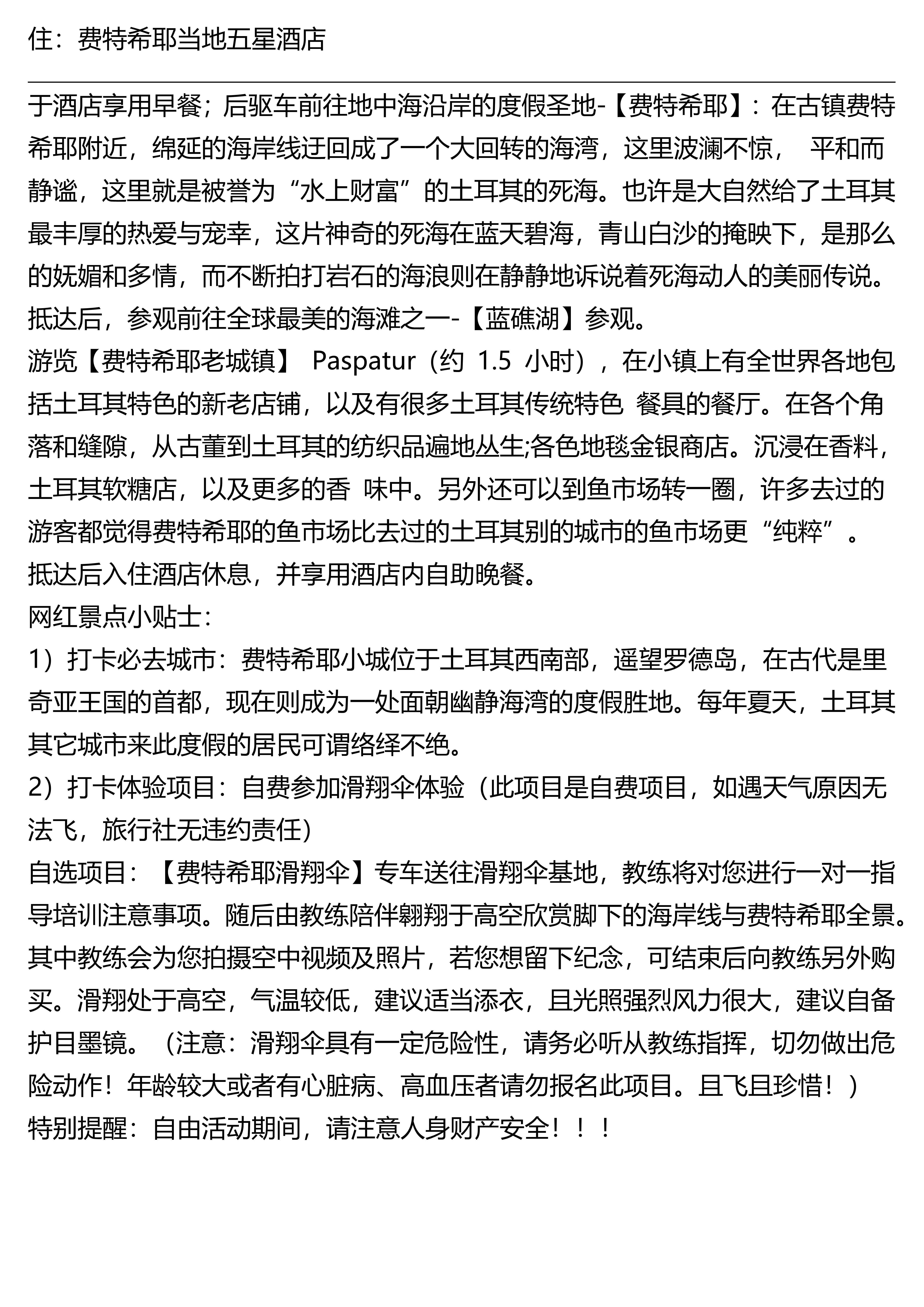 【蓝色童话】土耳其费特希耶10 天 4 飞纯玩之旅