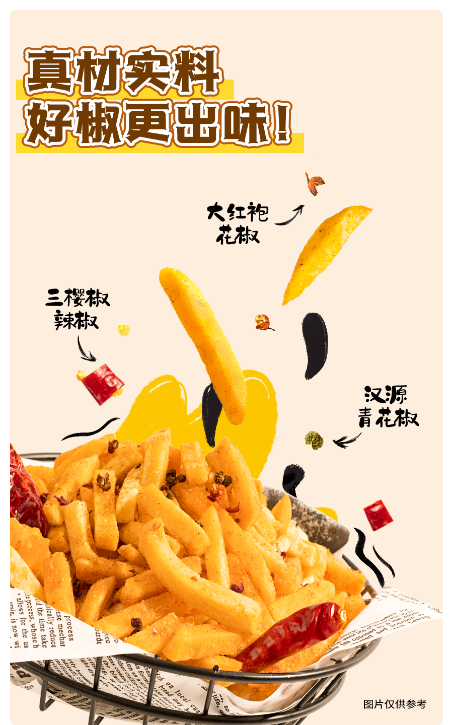 【原切】王辣辣0反式脂肪酸薯条20g*16包 干净成分 不添加白砂糖味精 低温+甩油工艺