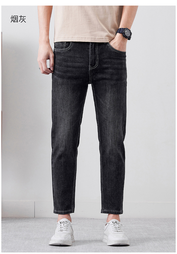 圣得西九分牛仔裤休闲裤子男款2025夏季新款弹力宽松显高直筒裤