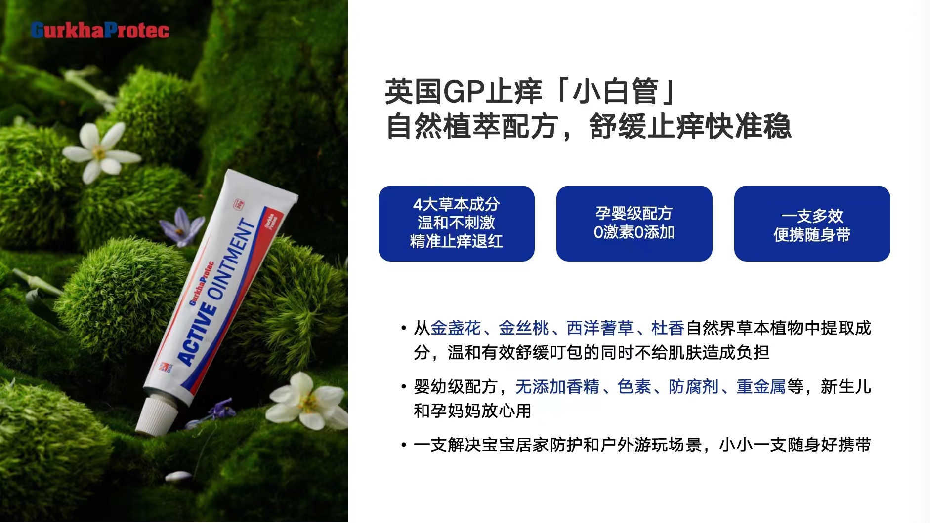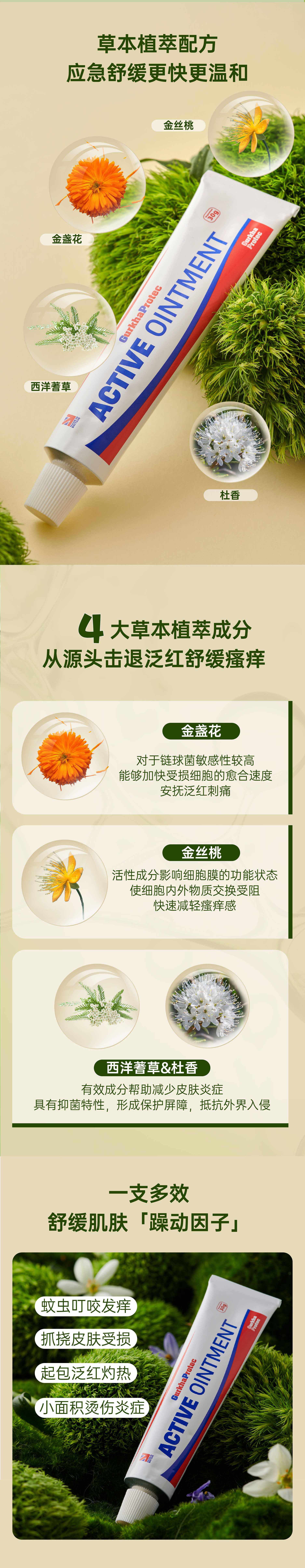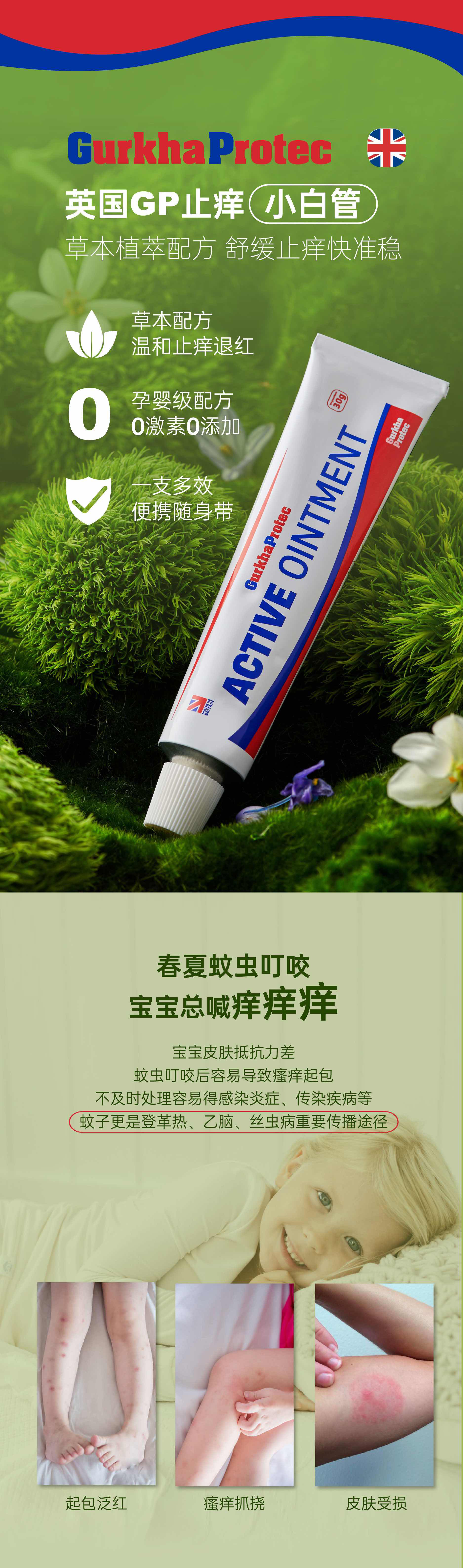 GurkhaProtec英国GP金盏花止痒膏 买一赠一蚊虫叮咬止痒退红|孕婴可用
