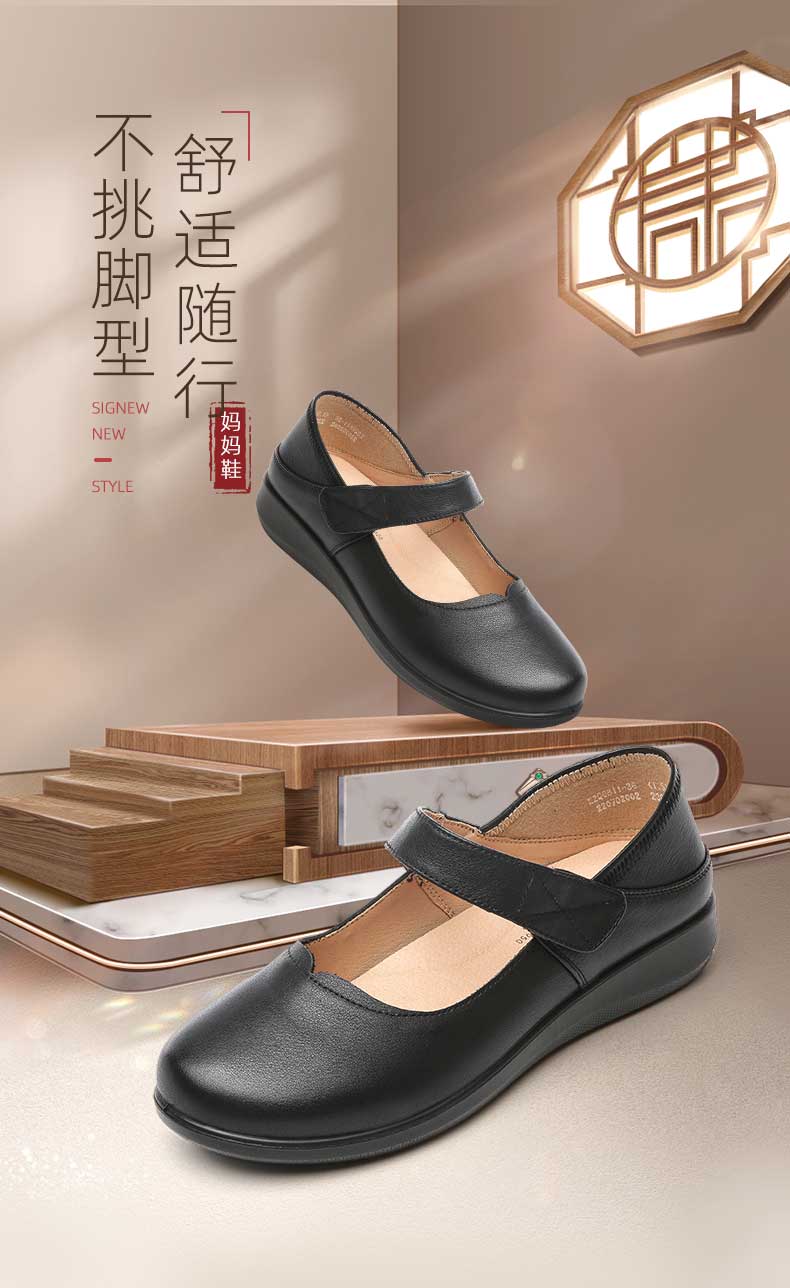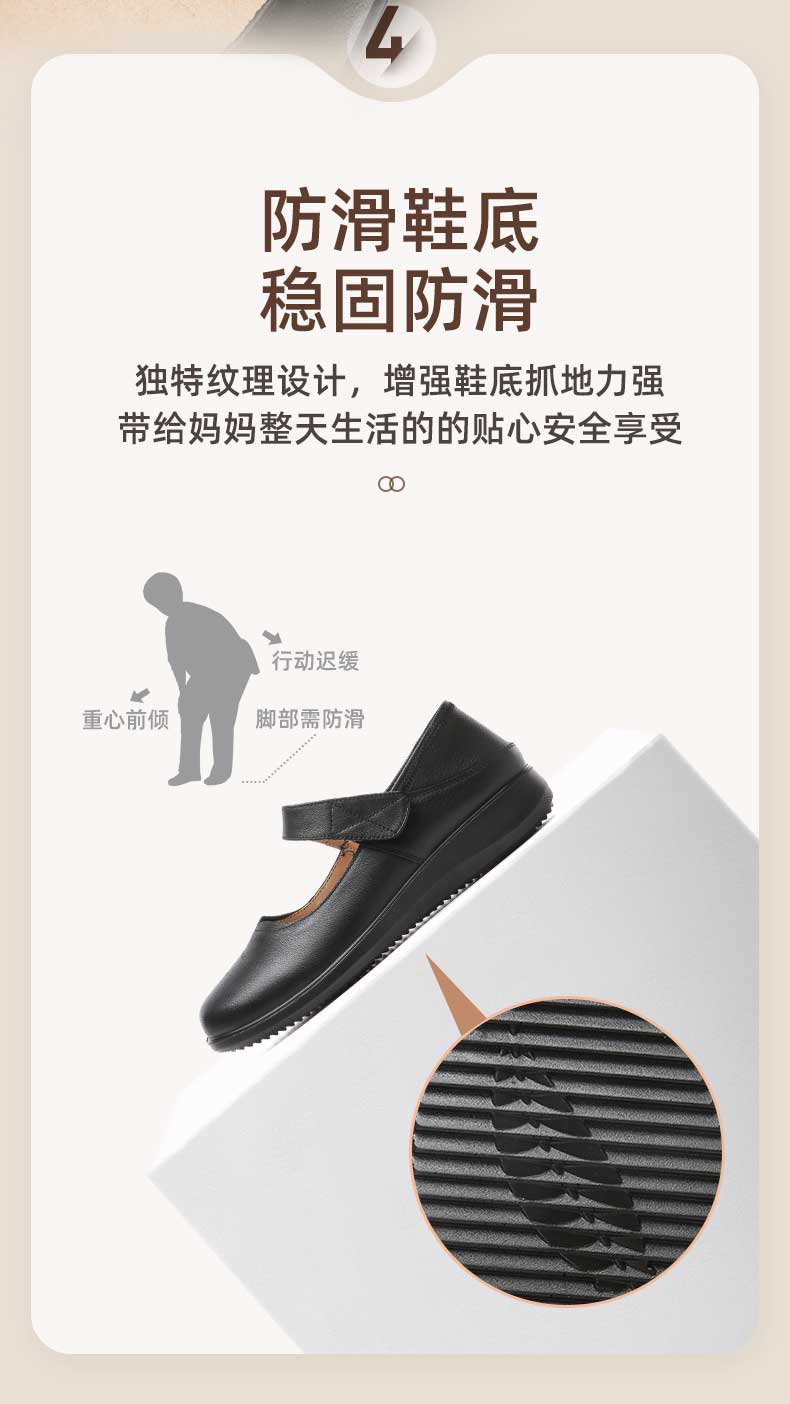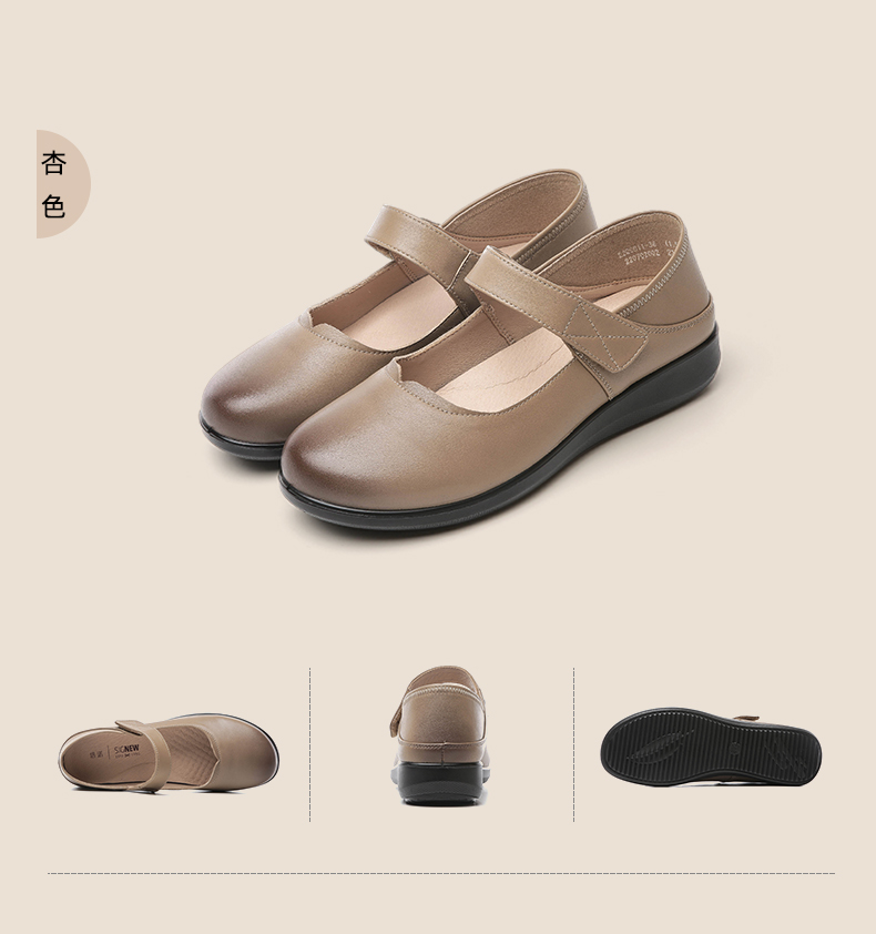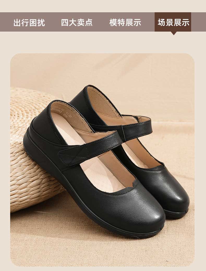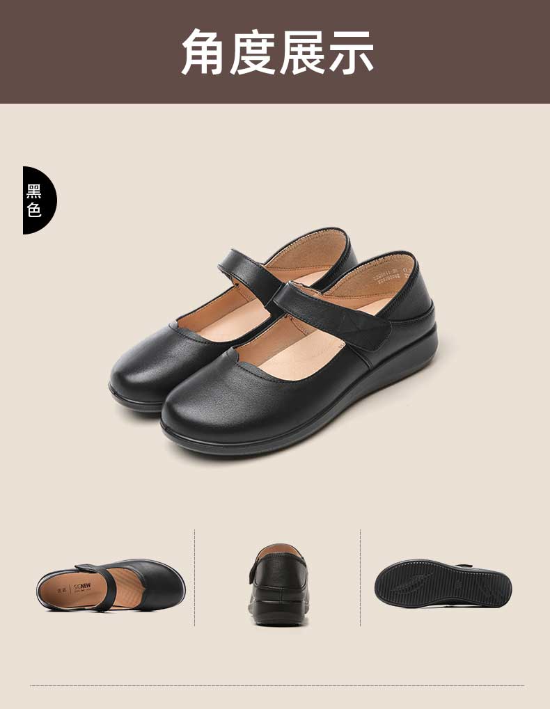老人单鞋真皮防滑舒适女妈妈春秋新款平底中老年软底老太太皮鞋子22Q9811-26