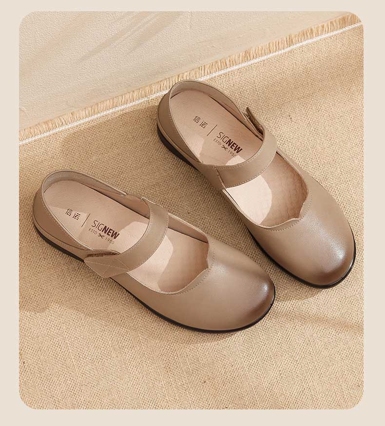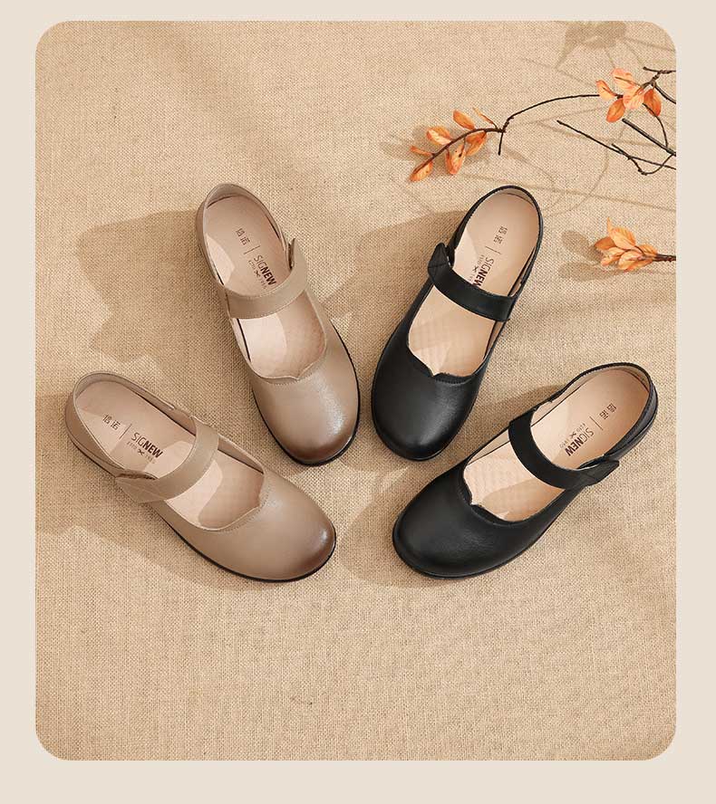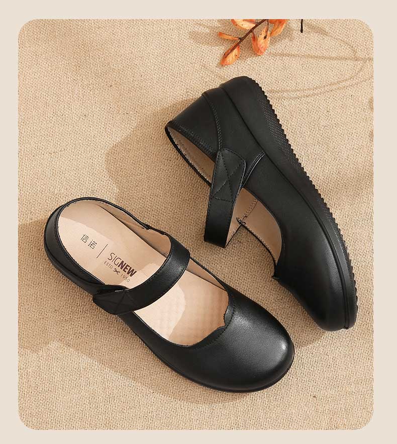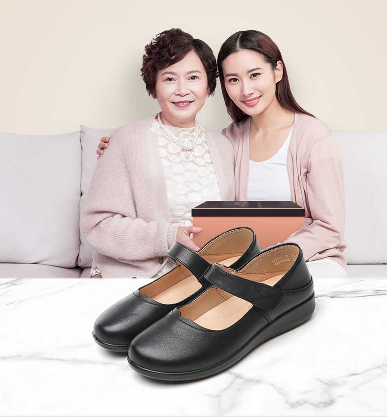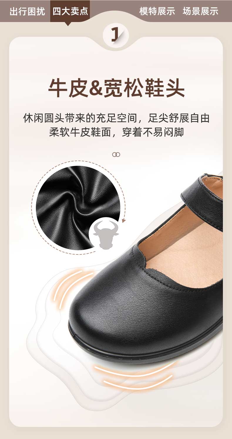 老人单鞋真皮防滑舒适女妈妈春秋新款平底中老年软底老太太皮鞋子22Q9811-26