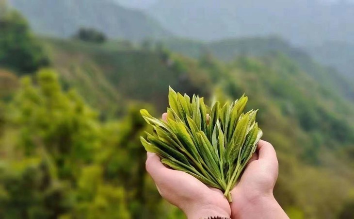 茶鲜叶,柿大叶种,谷雨前后长到20公分才采,不老不苦还很香甜
