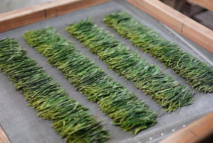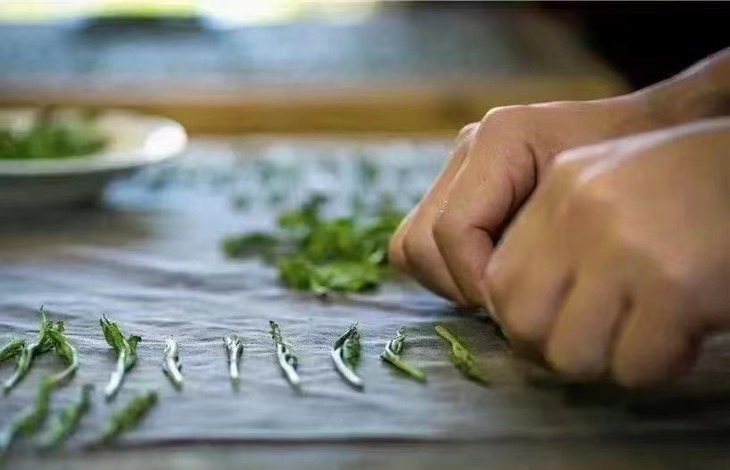 3)纯手工。铁锅手工炒(一锅就两把叶子)+ 趁热手工捏尖(一根根地捋直)+干茶也得手工一根根头尾分清的装进包装