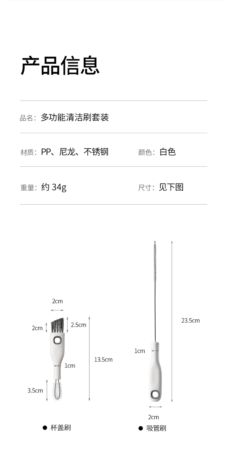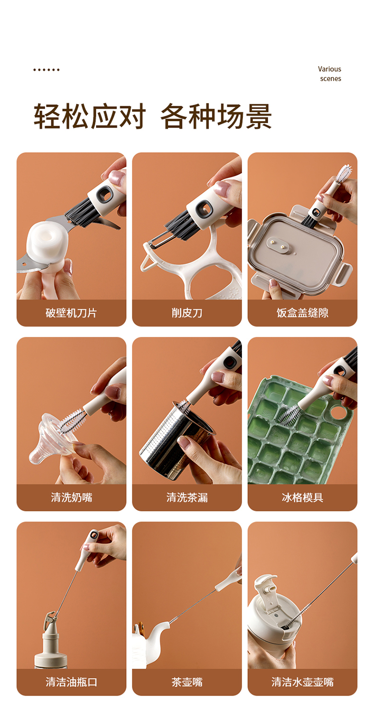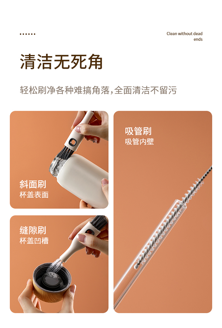 FaSoLa杯口缝隙清洗刷多功能清洁刷套装无死角吸管刷子保温杯盖刷
