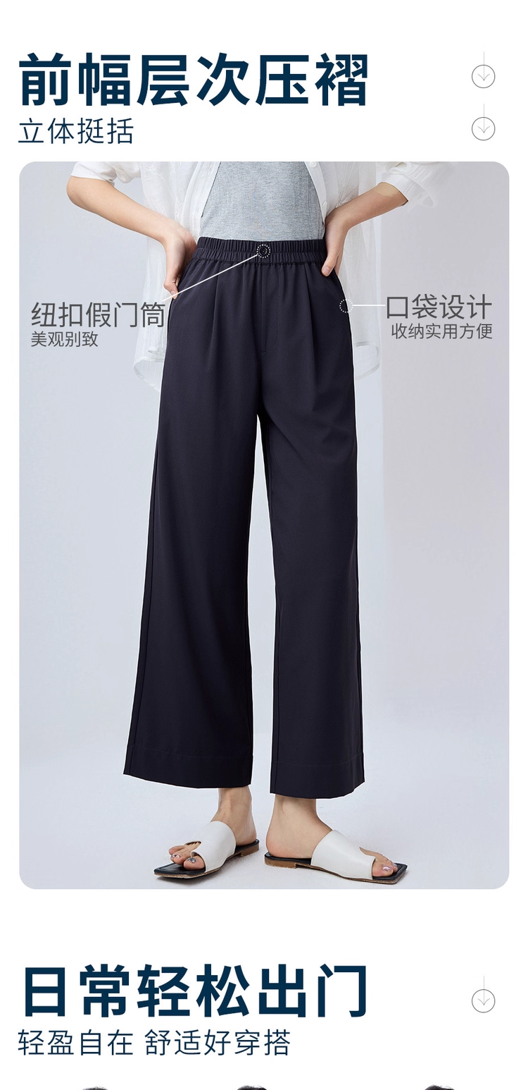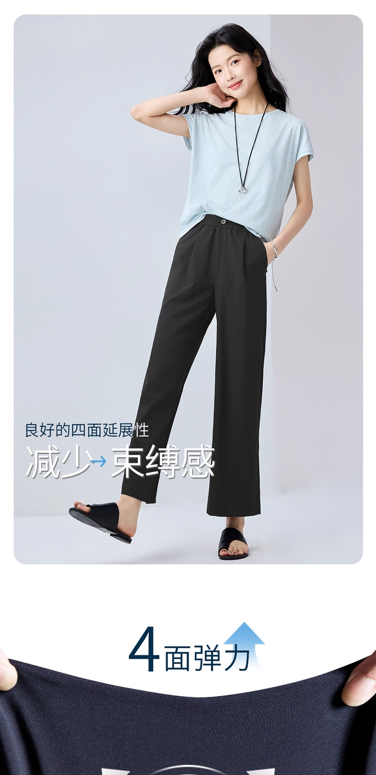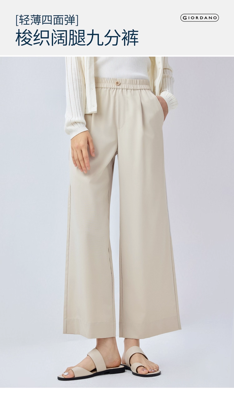 佐丹奴九分裤女装四面弹梭织假门筒松紧腰阔腿薄九分裤 13425232