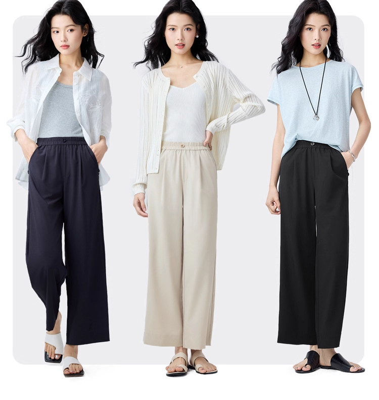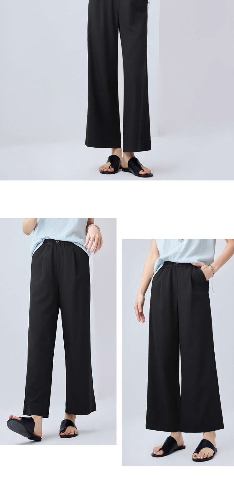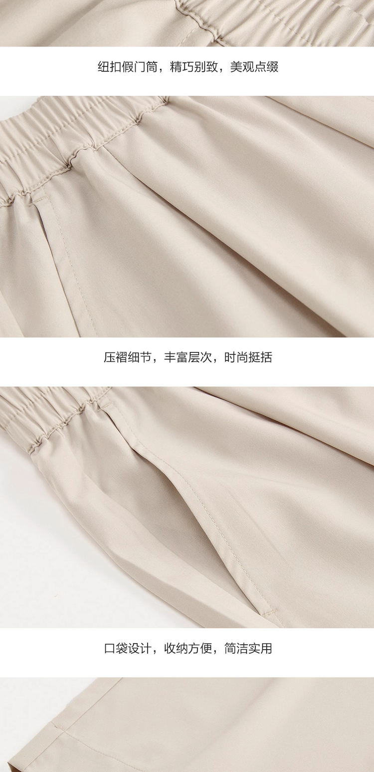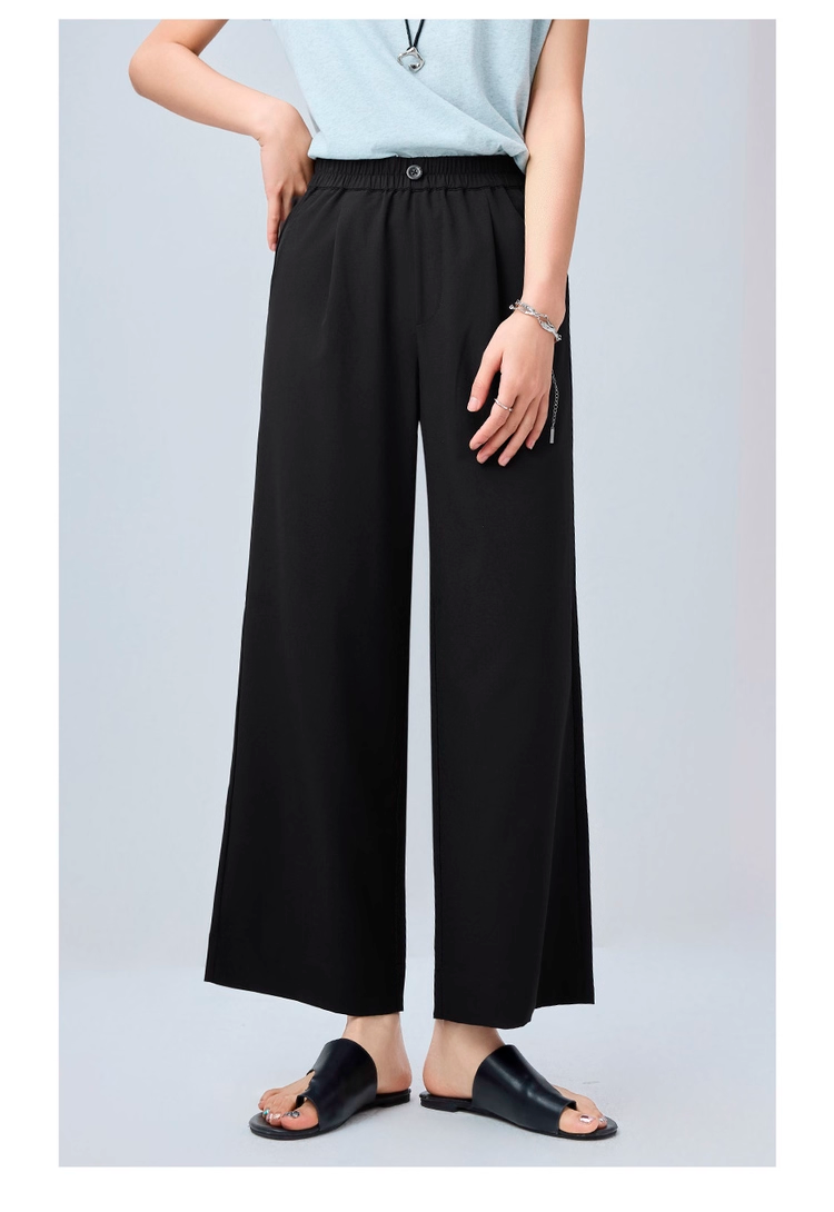 佐丹奴九分裤女装四面弹梭织假门筒松紧腰阔腿薄九分裤 13425232