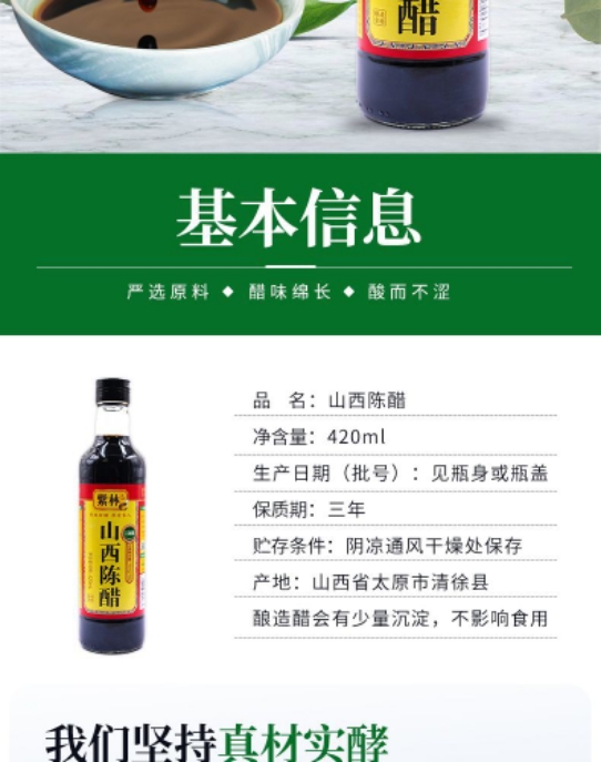 420ml 紫林山西陈醋 二年陈酿造食醋 饺子醋凉拌炒菜用陈醋