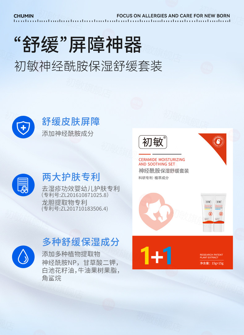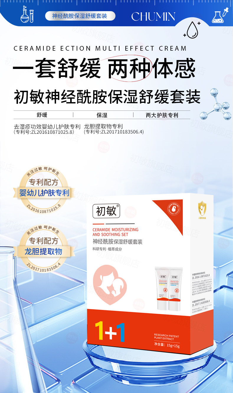 初敏 神经酰胺保湿舒缓乳霜套装15g+15g