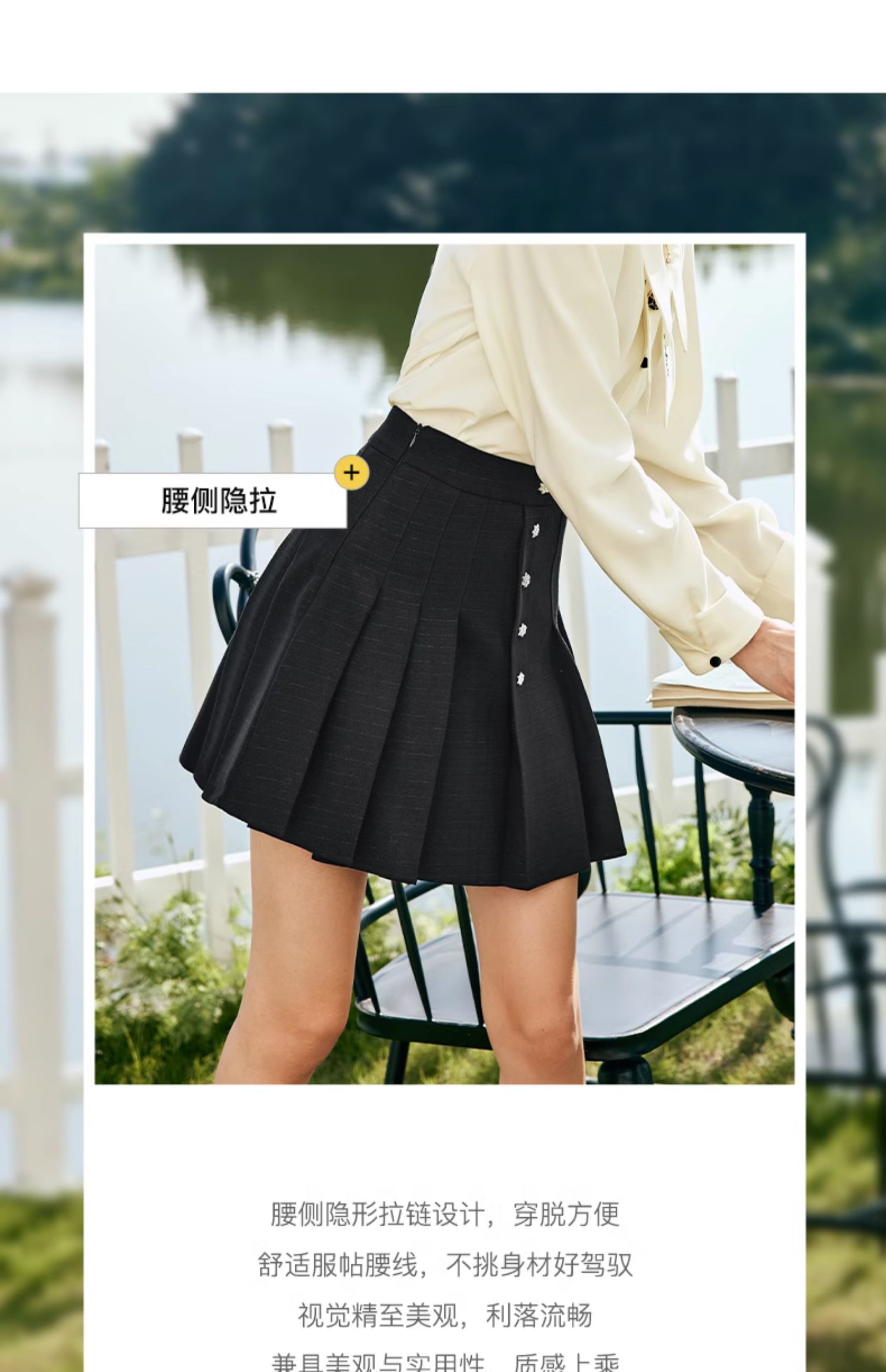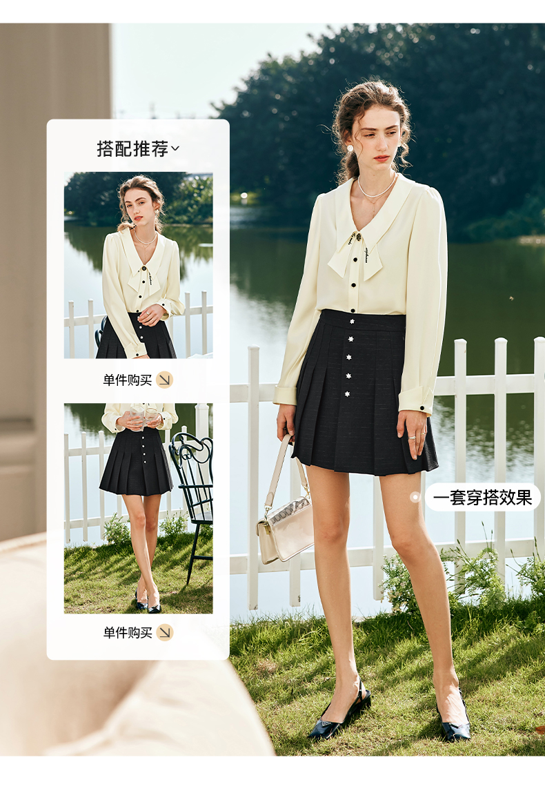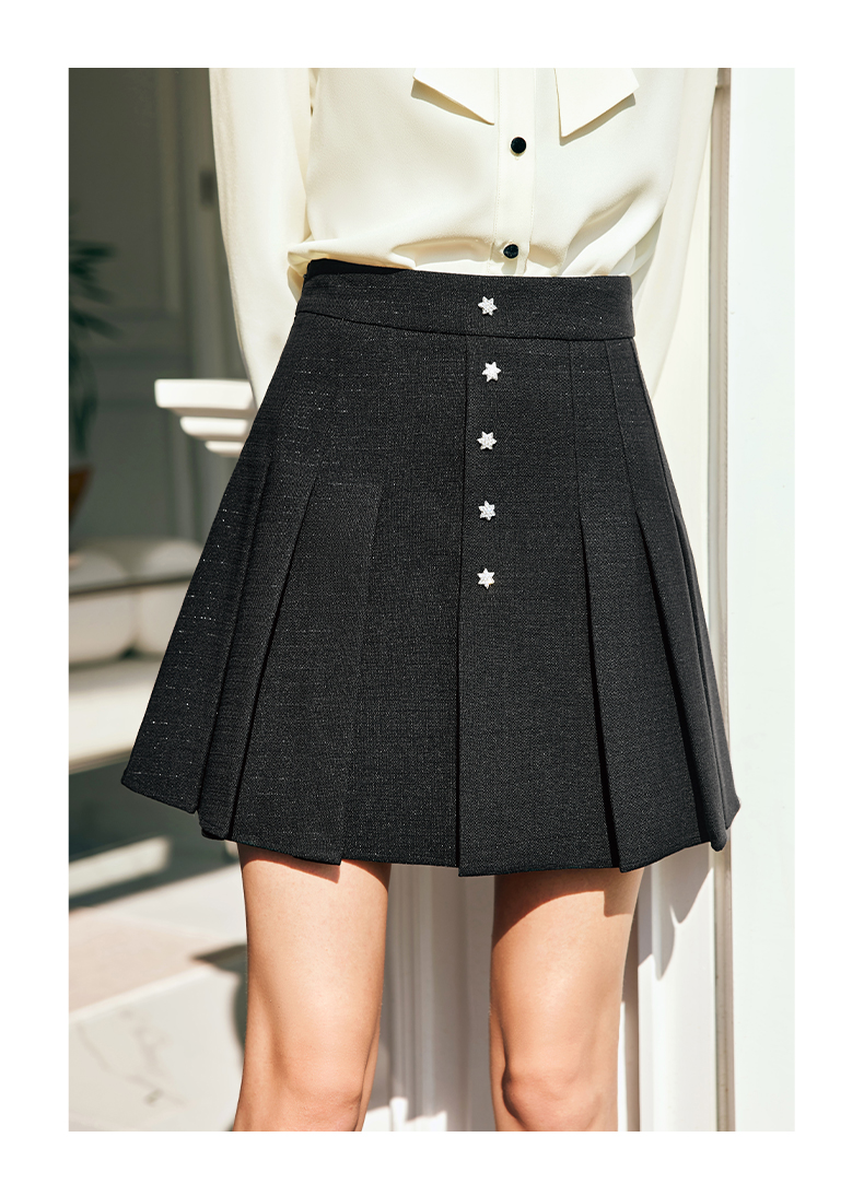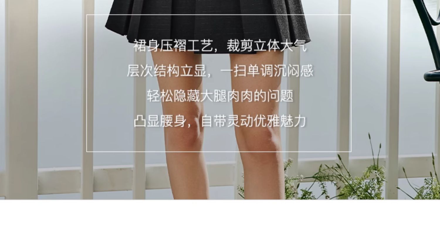 OLrain欧芮儿法式黑色半身裙女春季2024新款高腰减龄压褶A字短裙