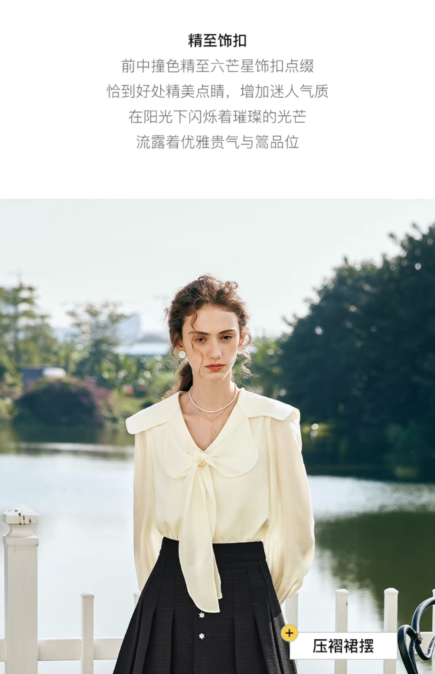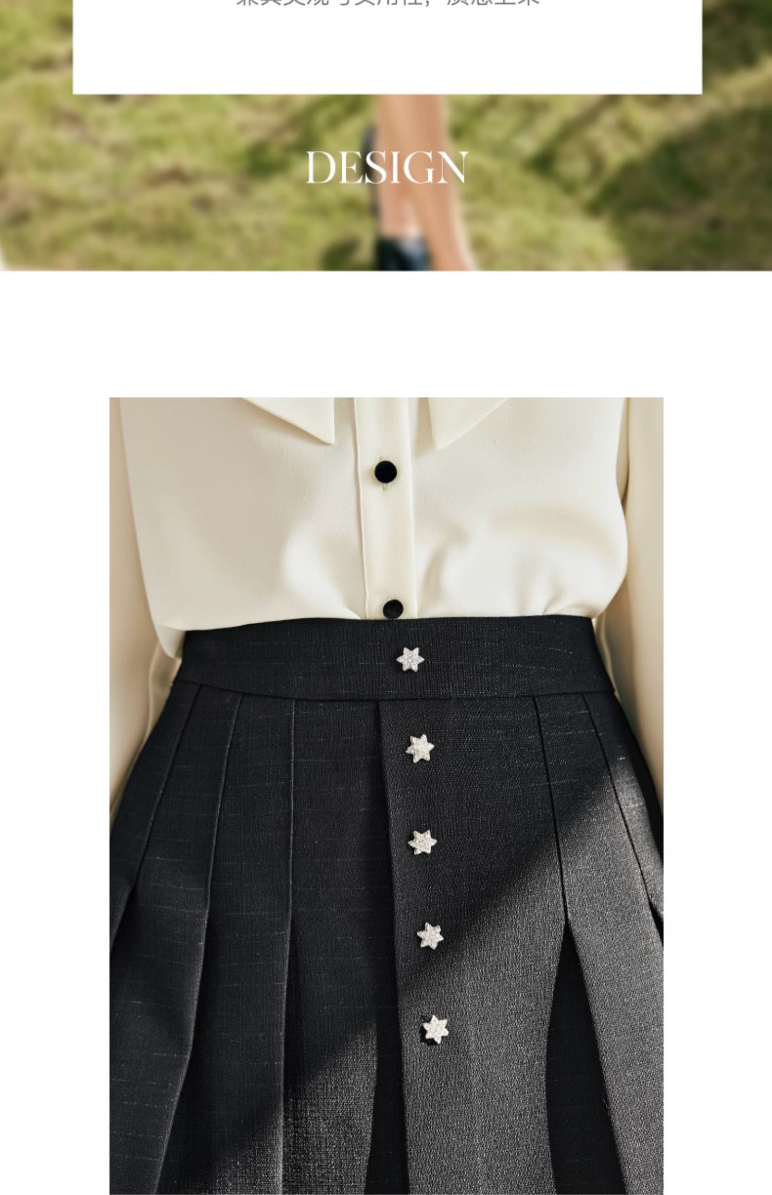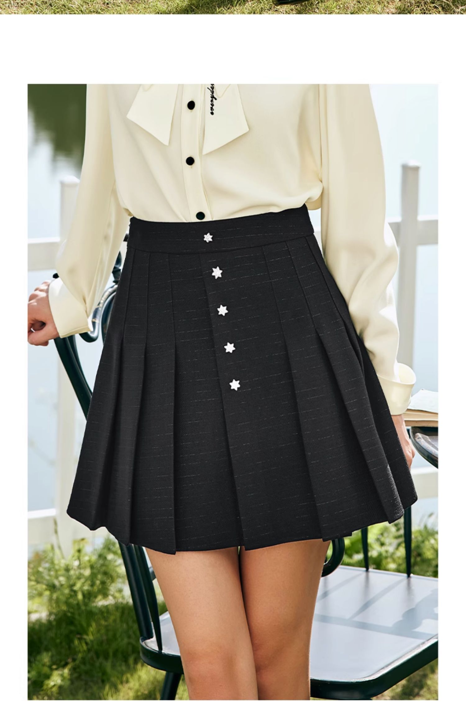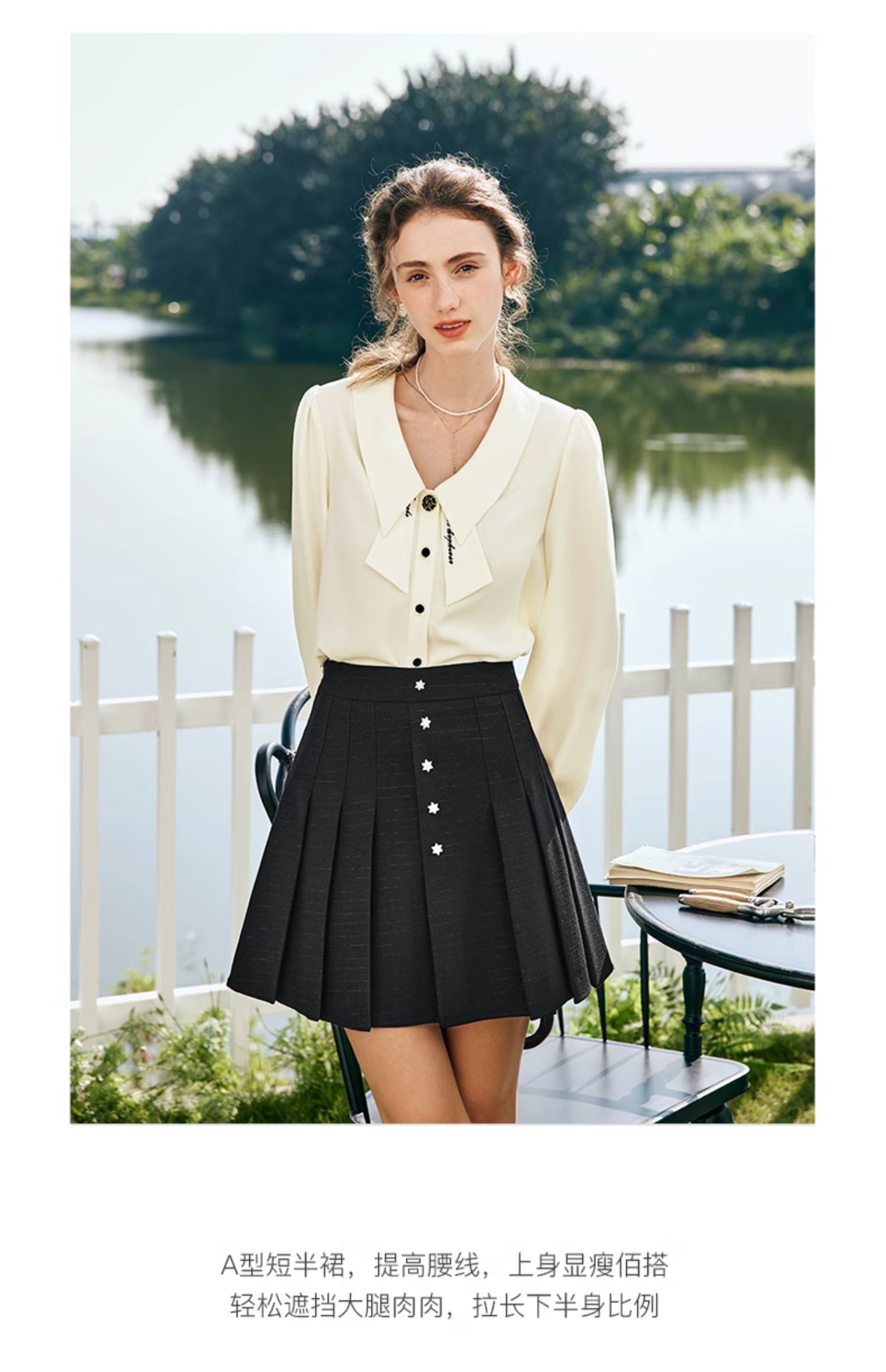 OLrain欧芮儿法式黑色半身裙女春季2024新款高腰减龄压褶A字短裙