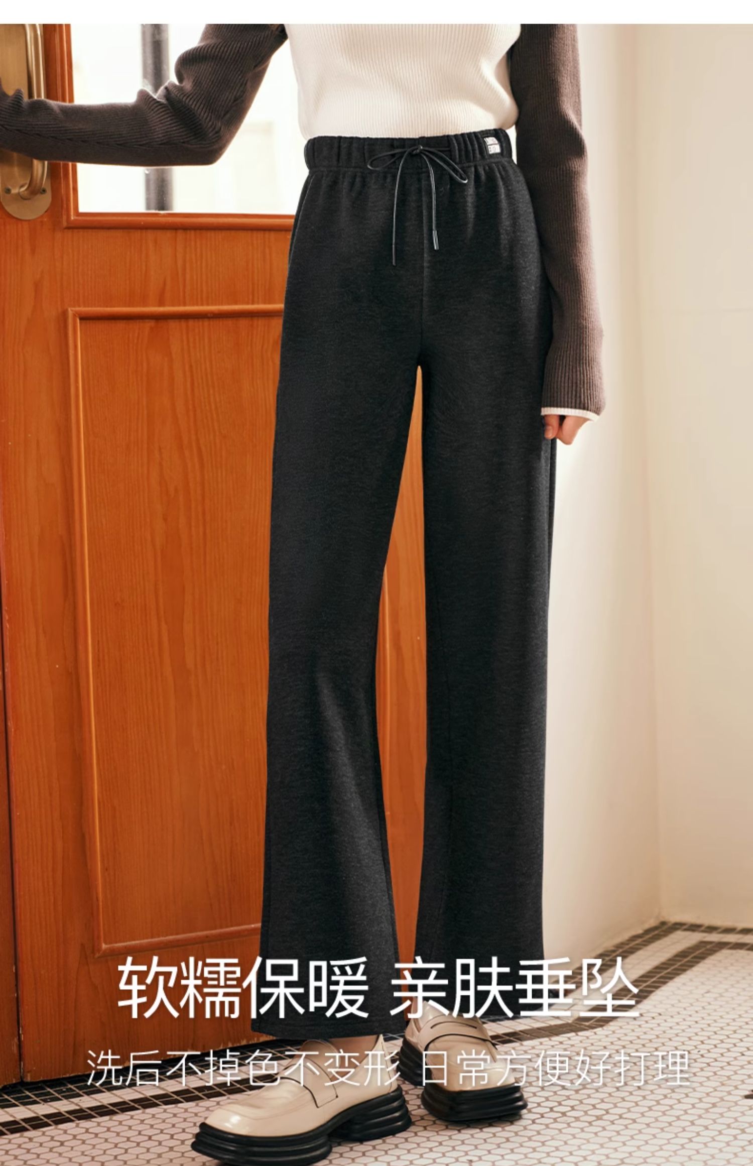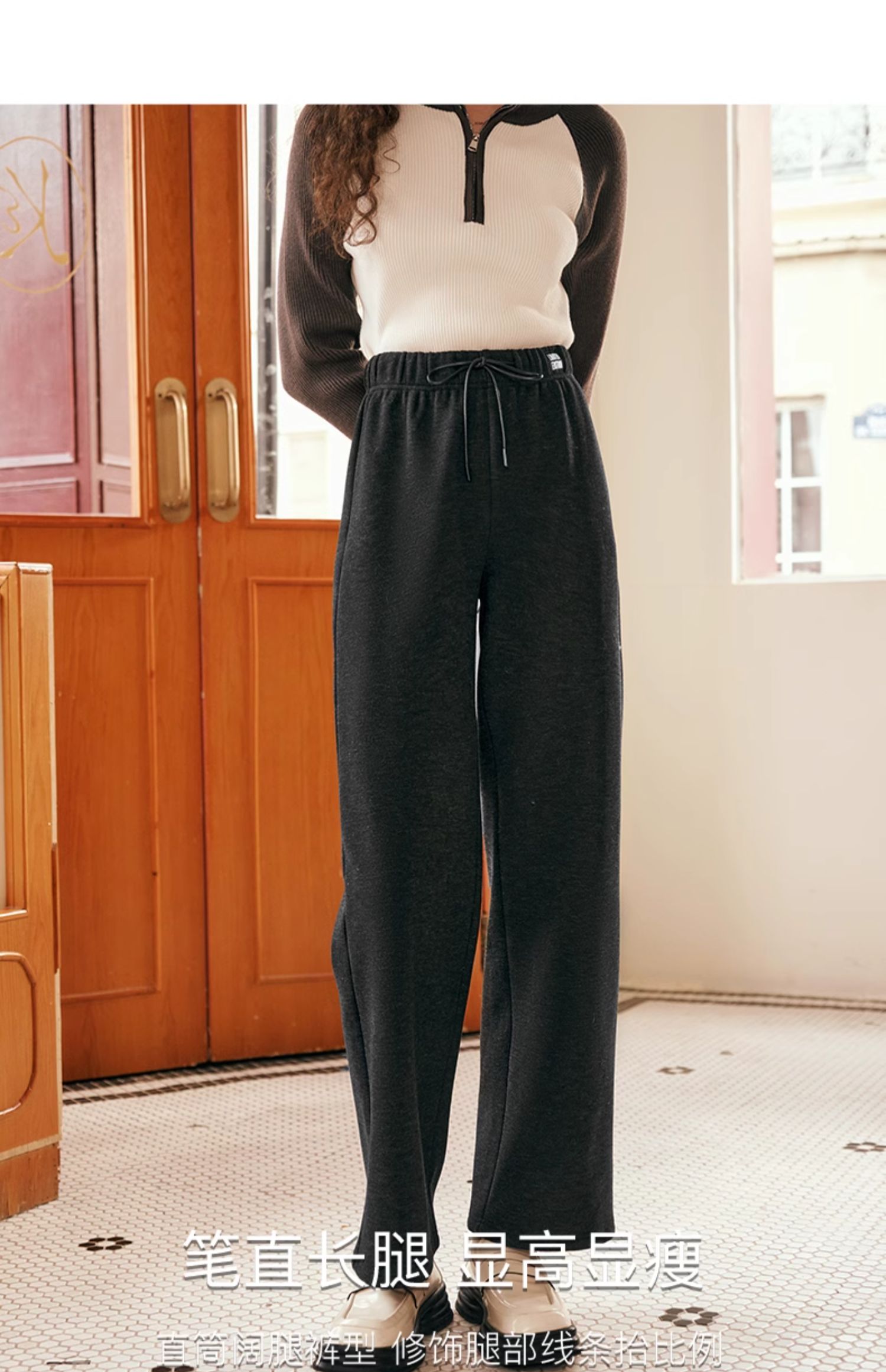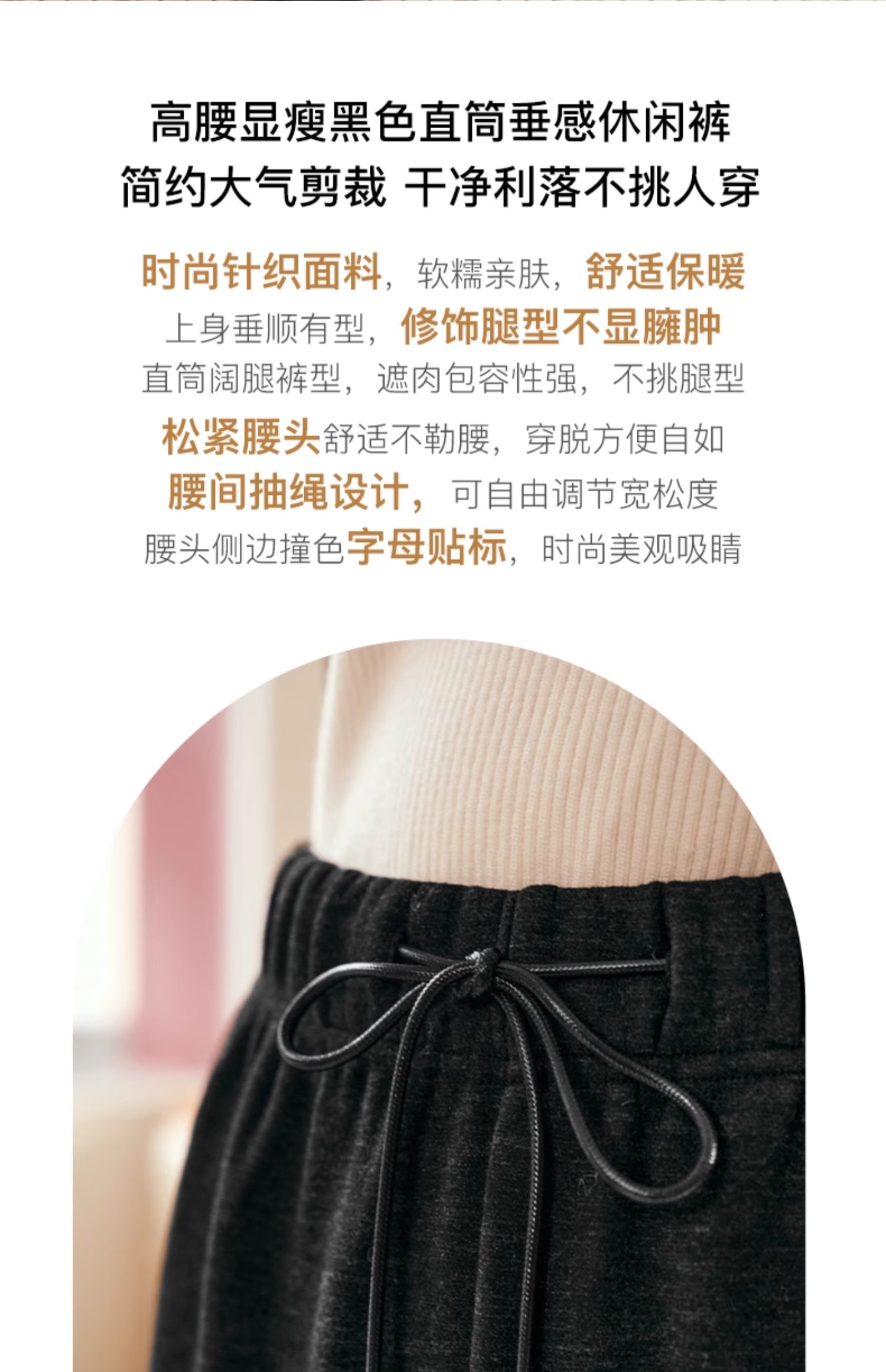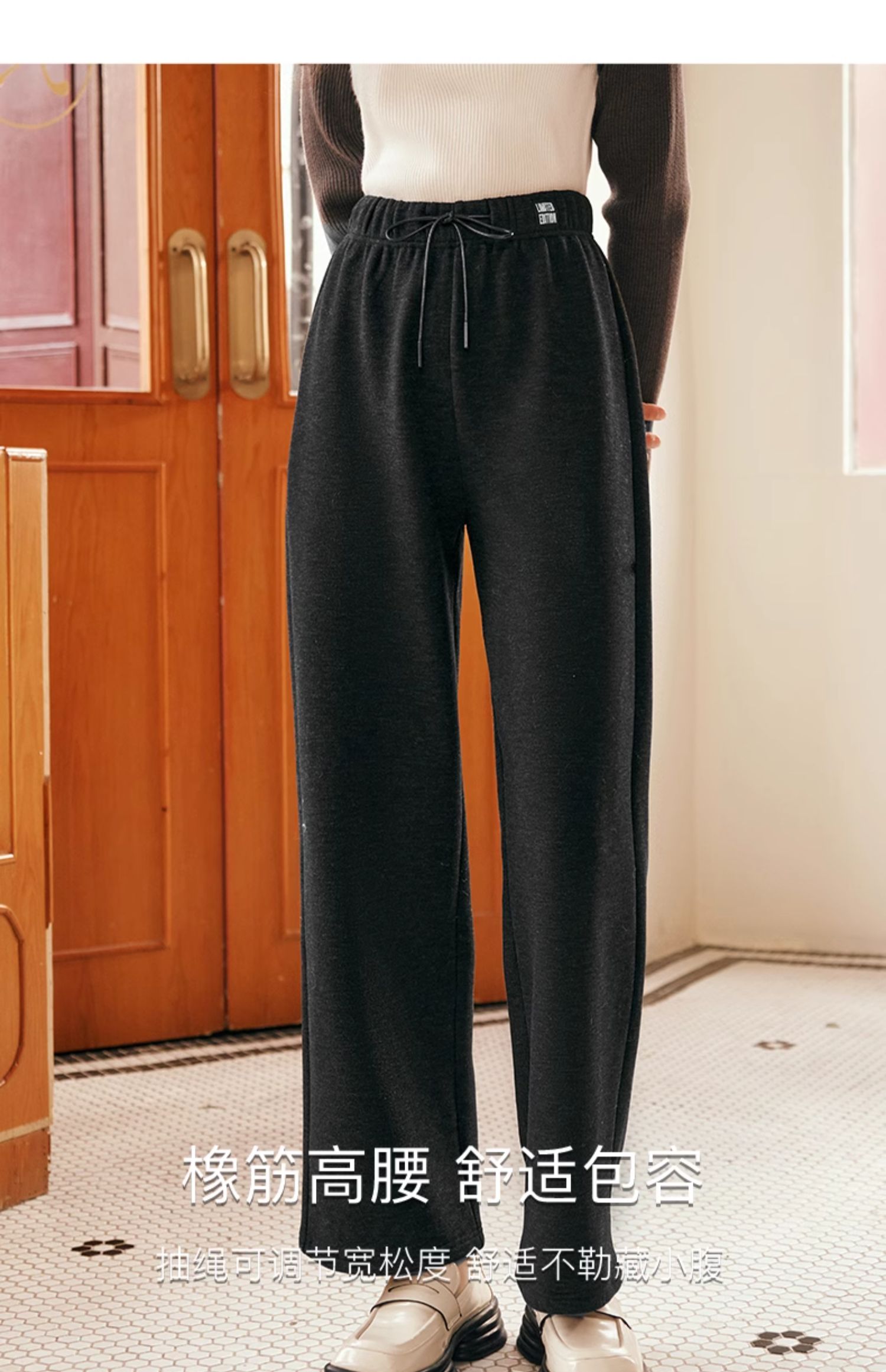 OLrain欧芮儿黑色休闲裤女早春2025年新款时尚宽松直筒慵懒阔腿裤
