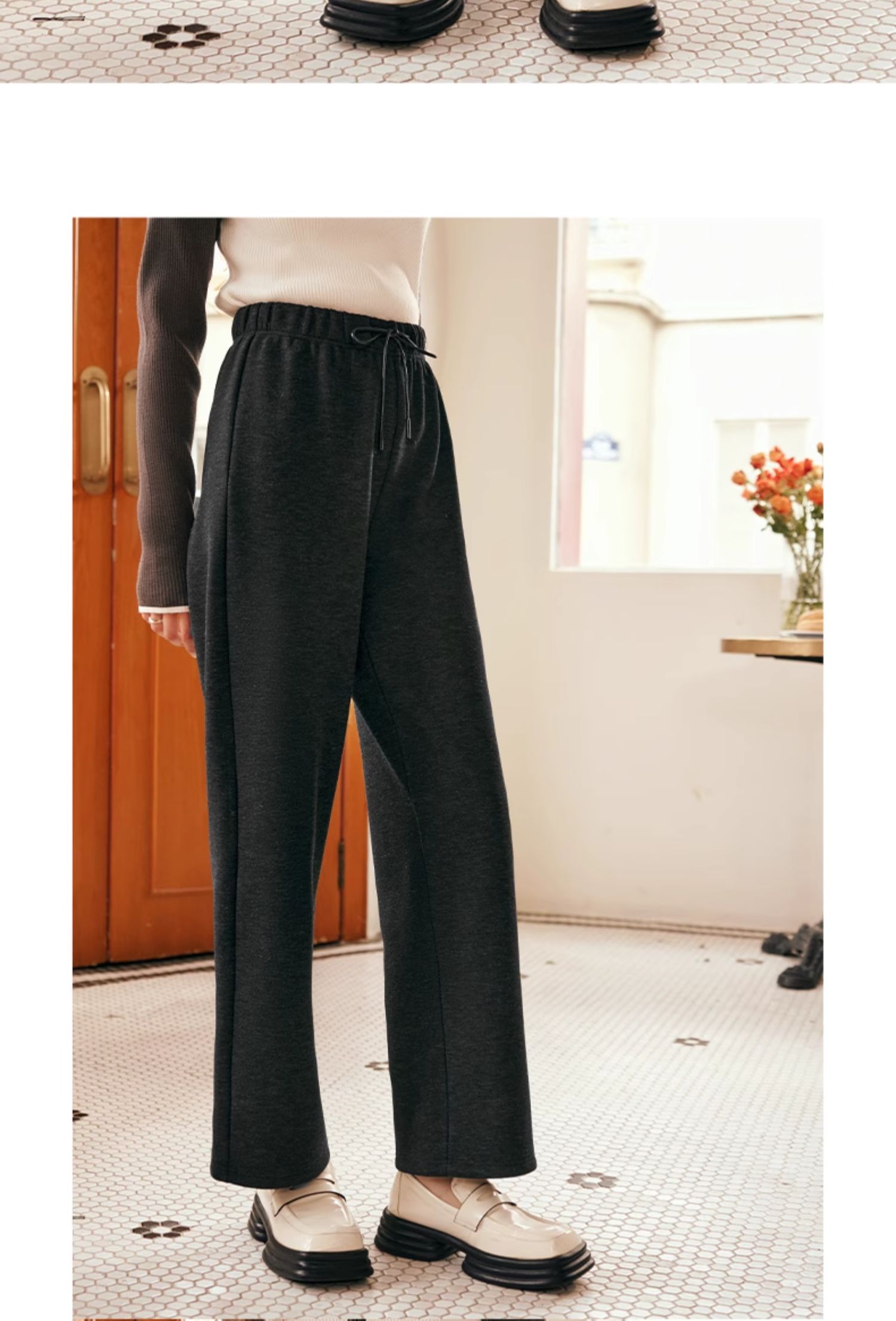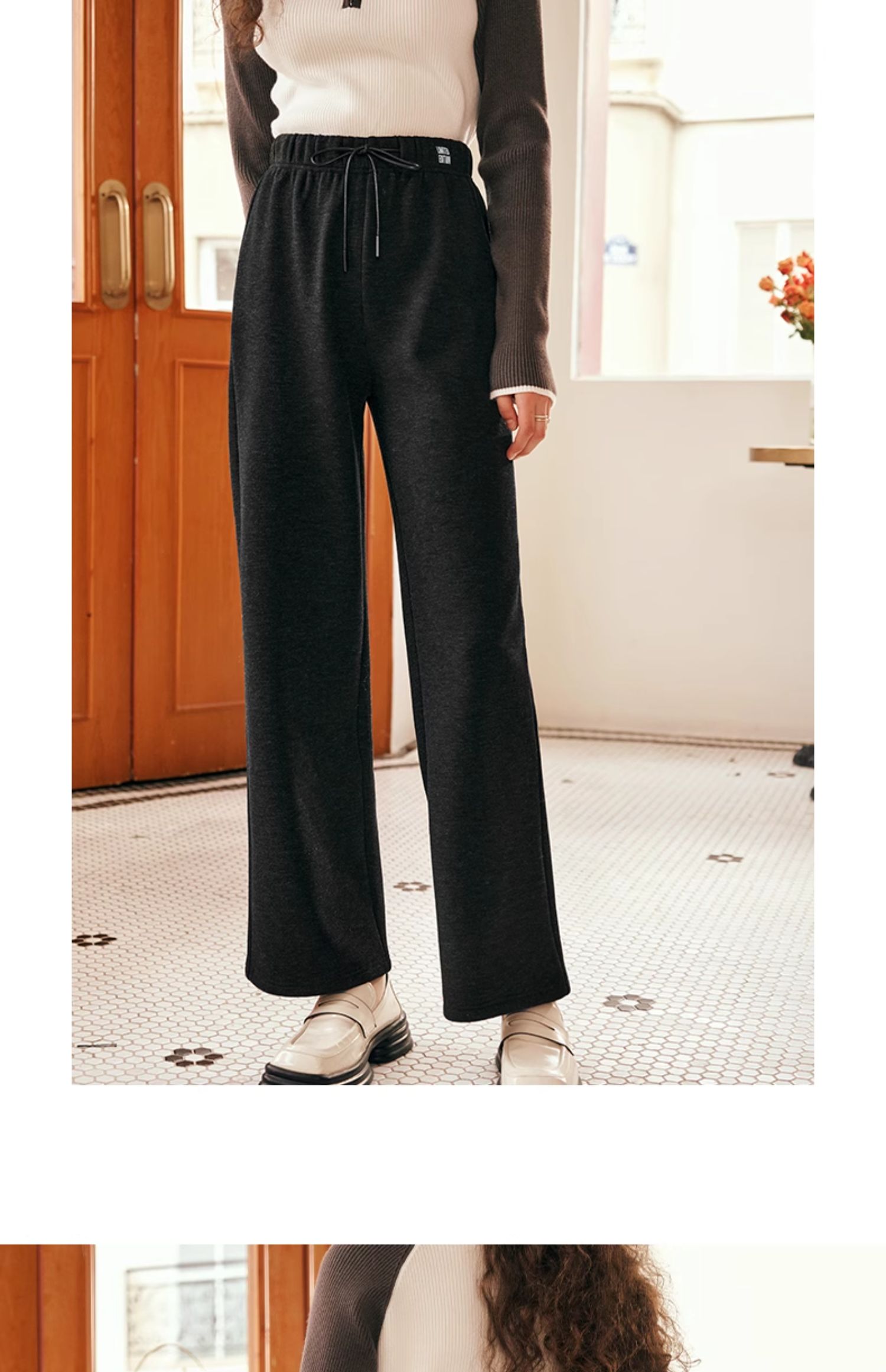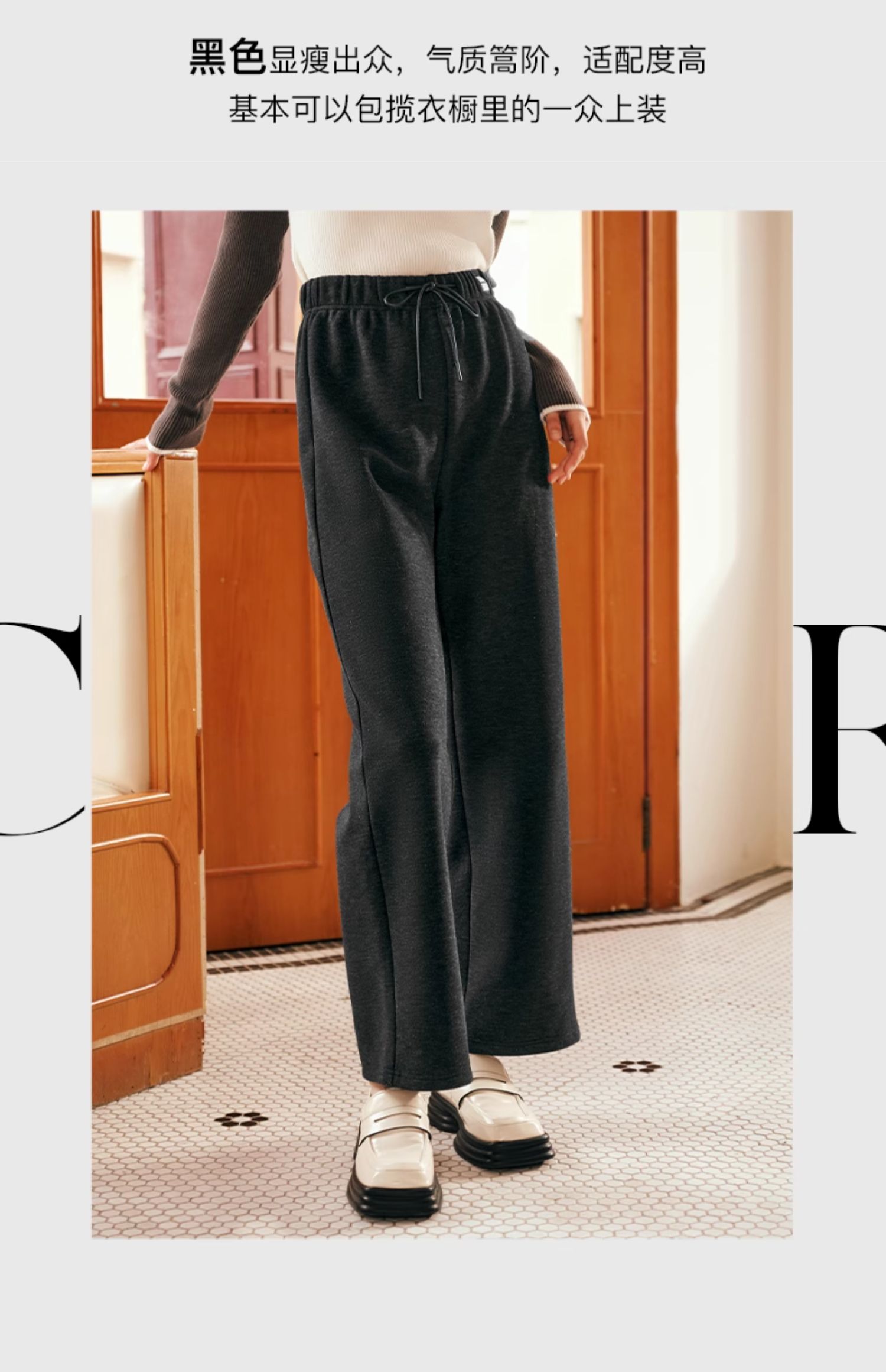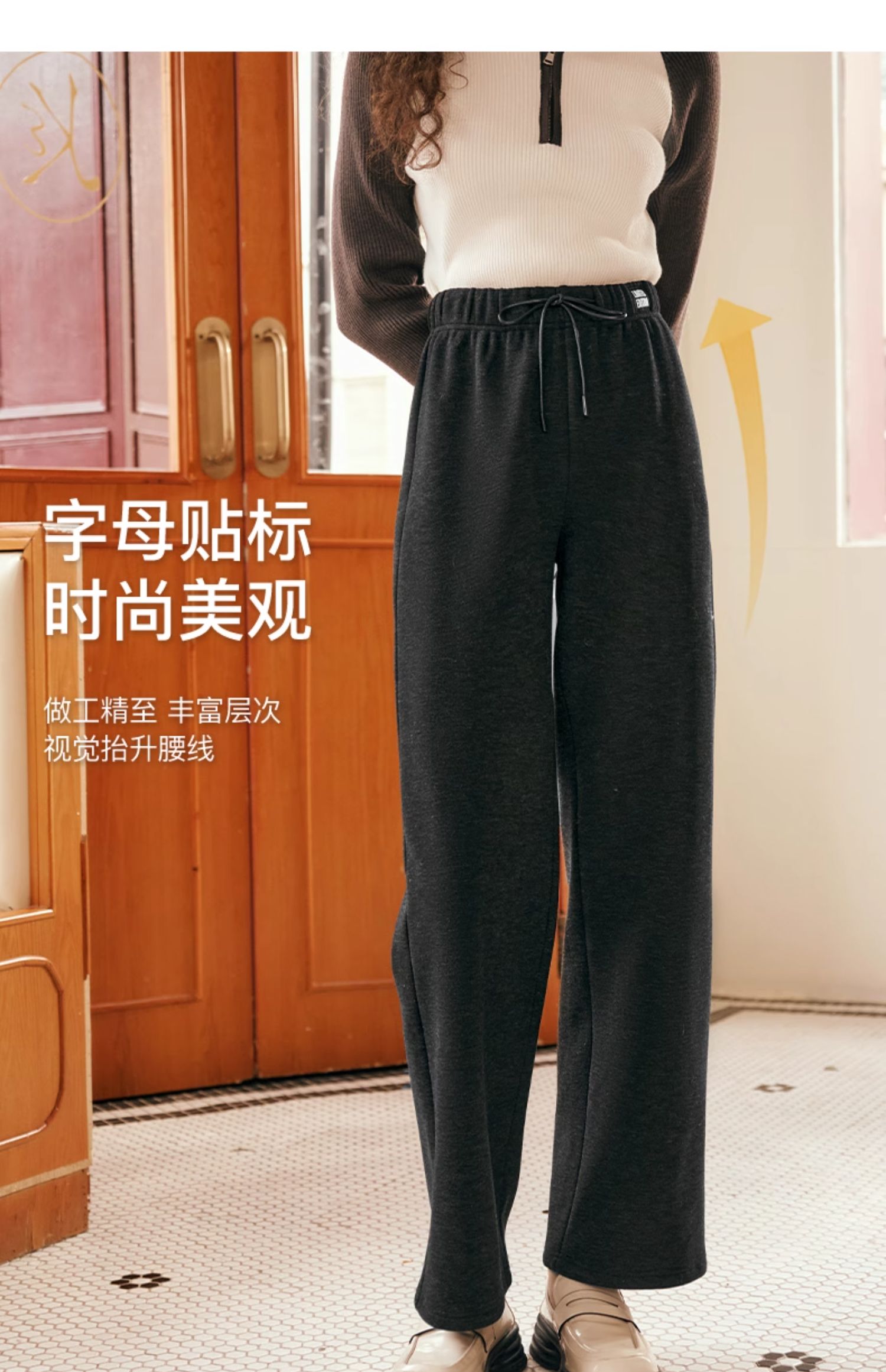 OLrain欧芮儿黑色休闲裤女早春2025年新款时尚宽松直筒慵懒阔腿裤