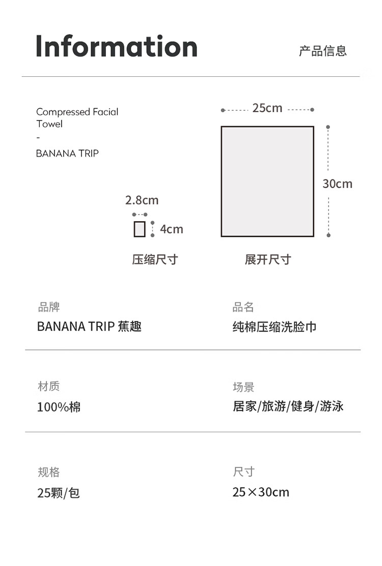 BANANA TRIP纯棉压缩洗脸巾(25条)B1245