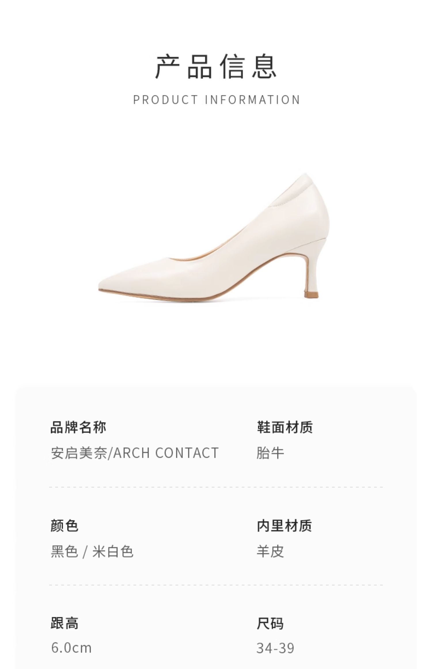 ARCH CONTACT安启美奈2024新款单鞋女胎牛皮细高跟女鞋休闲通勤52937-1