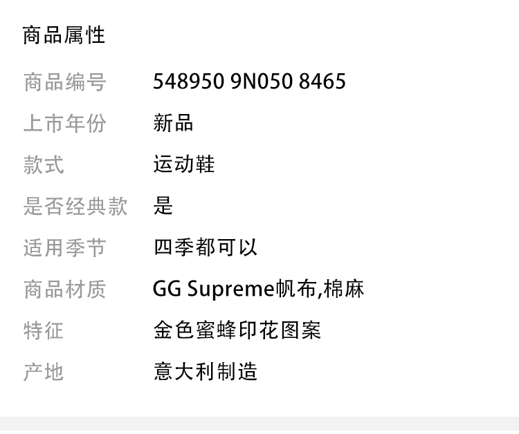 【三】GUCCI 古驰 Ace系列 男士蜜蜂图案GG Supreme帆布运动鞋 混色 548950 9N050 8465