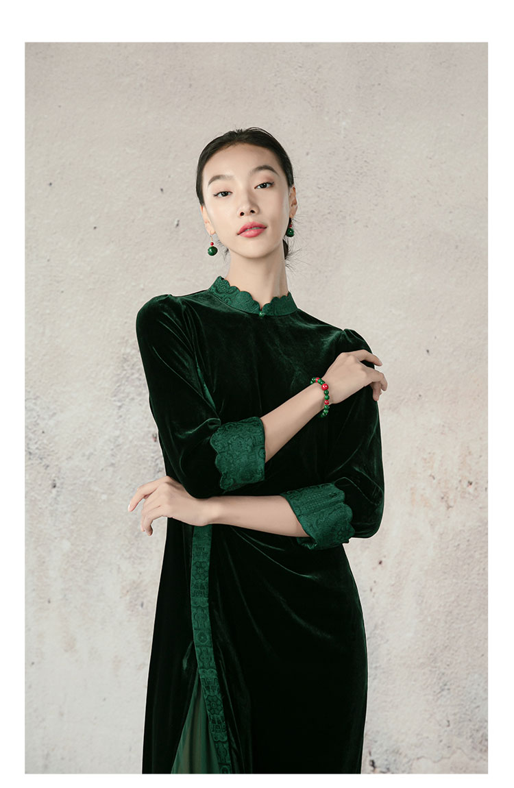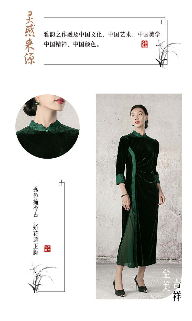 吉祥衣家新中式国风复气质显瘦修身女装春来江水绿如蓝真丝连衣裙