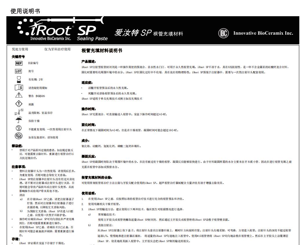 根管充填及修复材料Root Canal filling repair materials (爱汝特 SP根管充填及修复材料 bc)