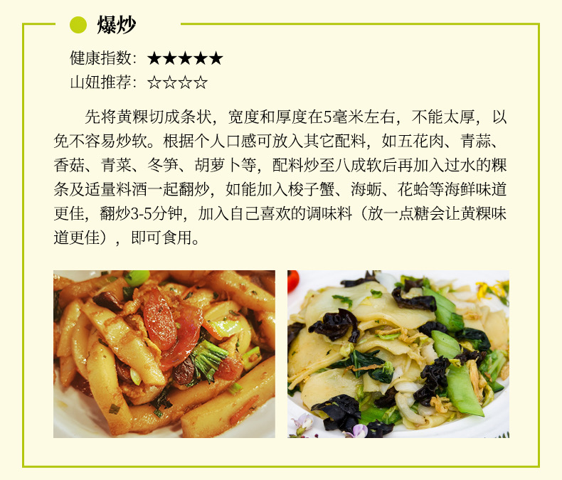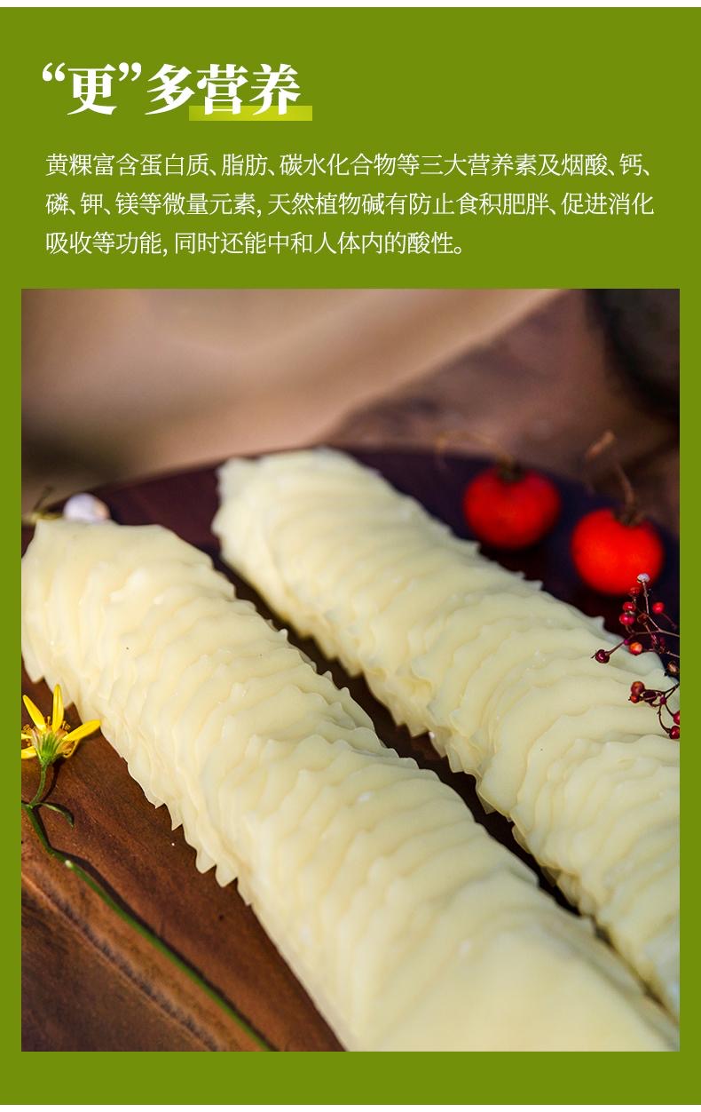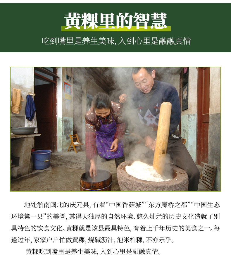 庆元黄粿呈橙黄透绿色,属粳米与柃木(野桂花)碱配制后而形成的自然色。若出现黄粿过硬不容易切的情况,可给菜刀沾点水后再切。