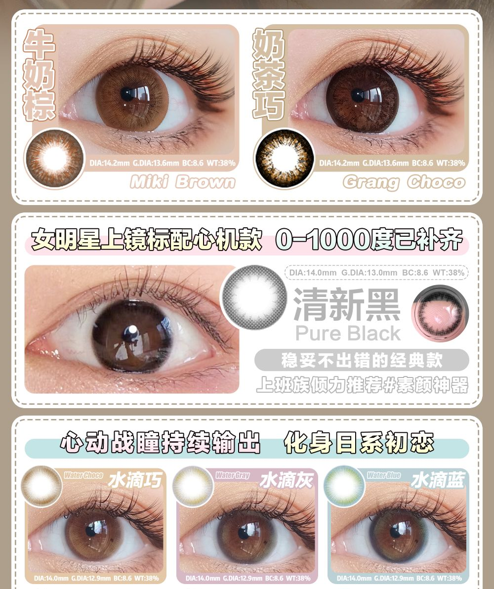 【小红书推荐款】medusee 天然巧,年抛/直径14.0/着色12.8,138/一副,最高度数有1000