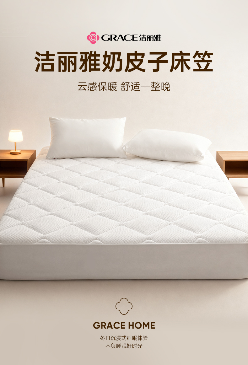 洁丽雅奶皮子夹心床笠防滑保护套加厚秋冬季家用卧室四季通用床罩