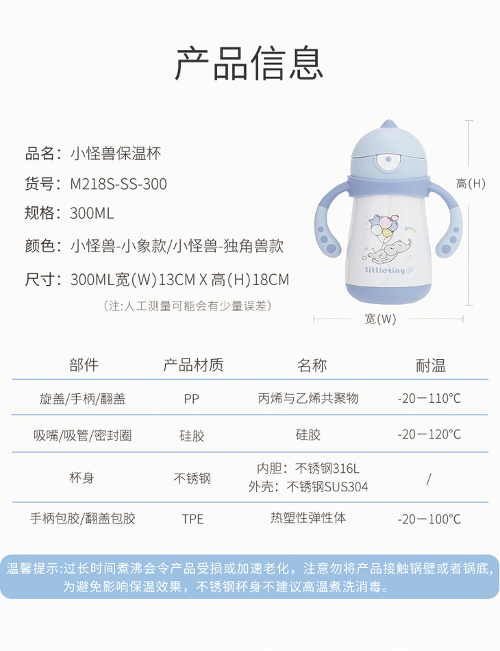 *Little Tiny小怪兽保温杯 婴幼儿水杯 吸管杯 学饮杯(6个月+适用)