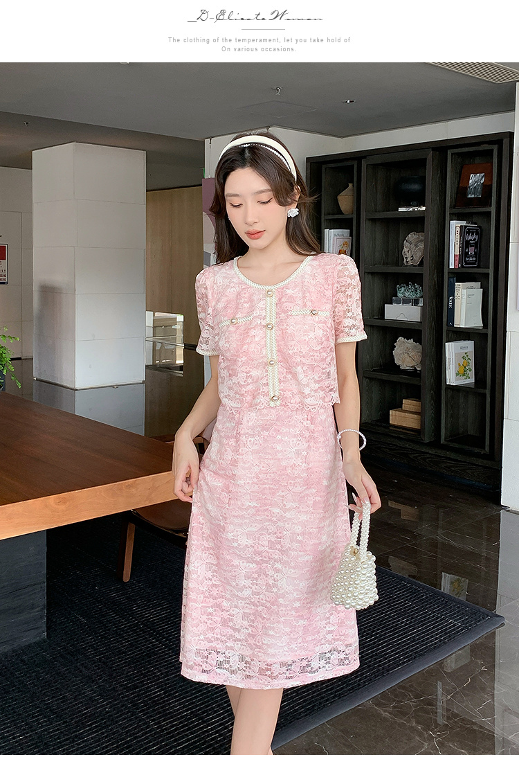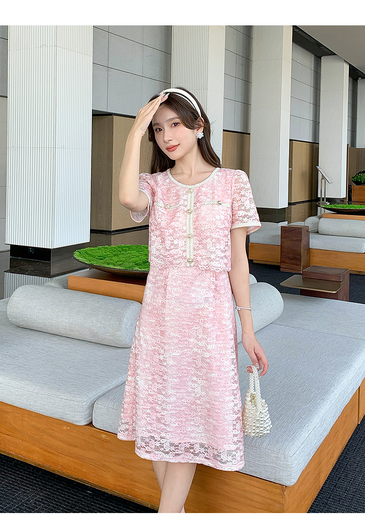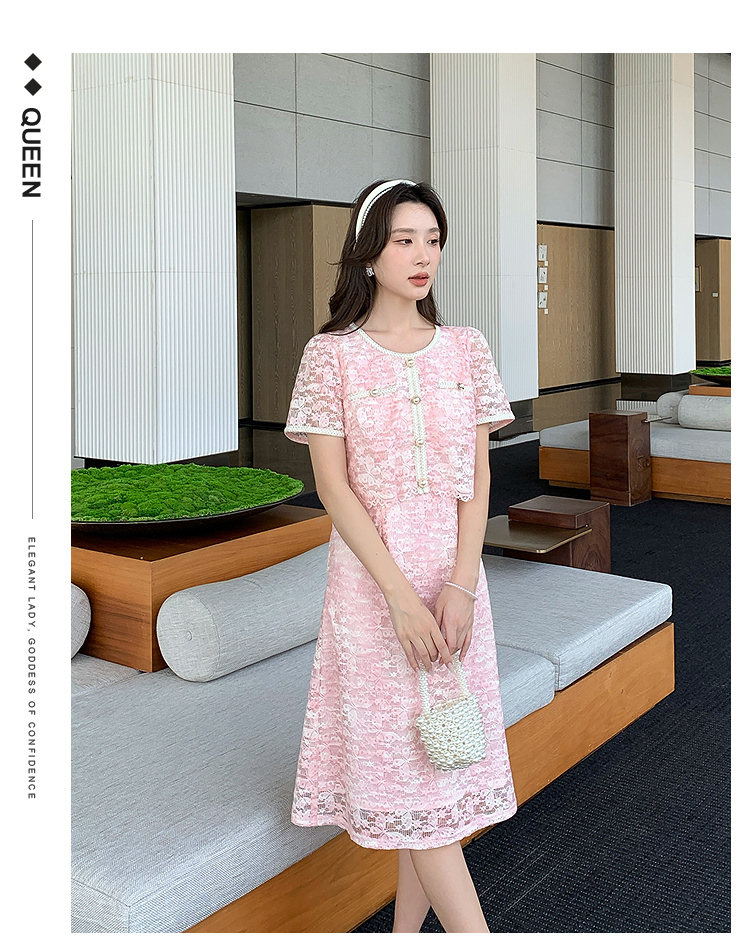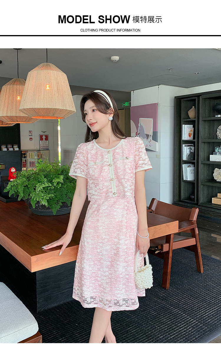 【清仓超15天不保价】奢姿大码女装2025夏季胖妹妹轻奢休闲连衣裙圆领假两件拼接裙子9952890354