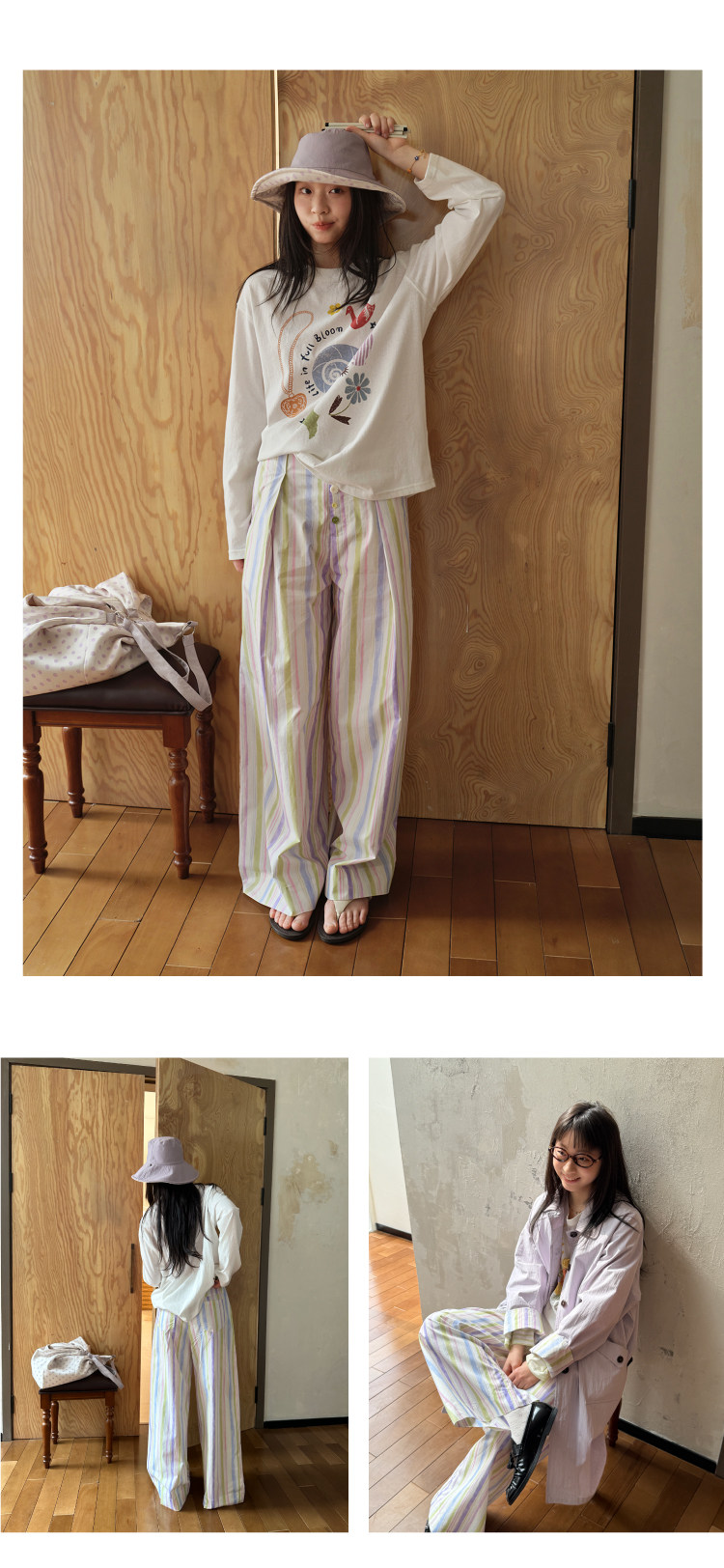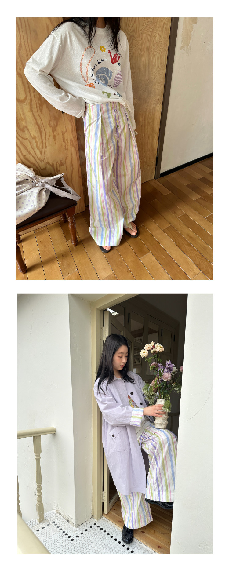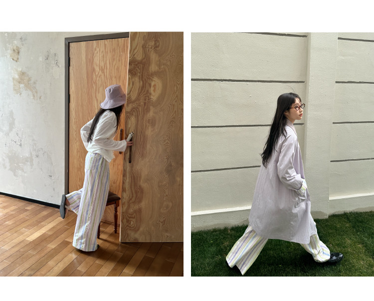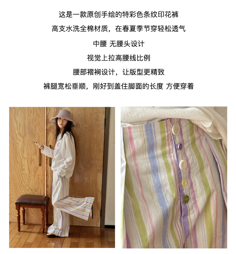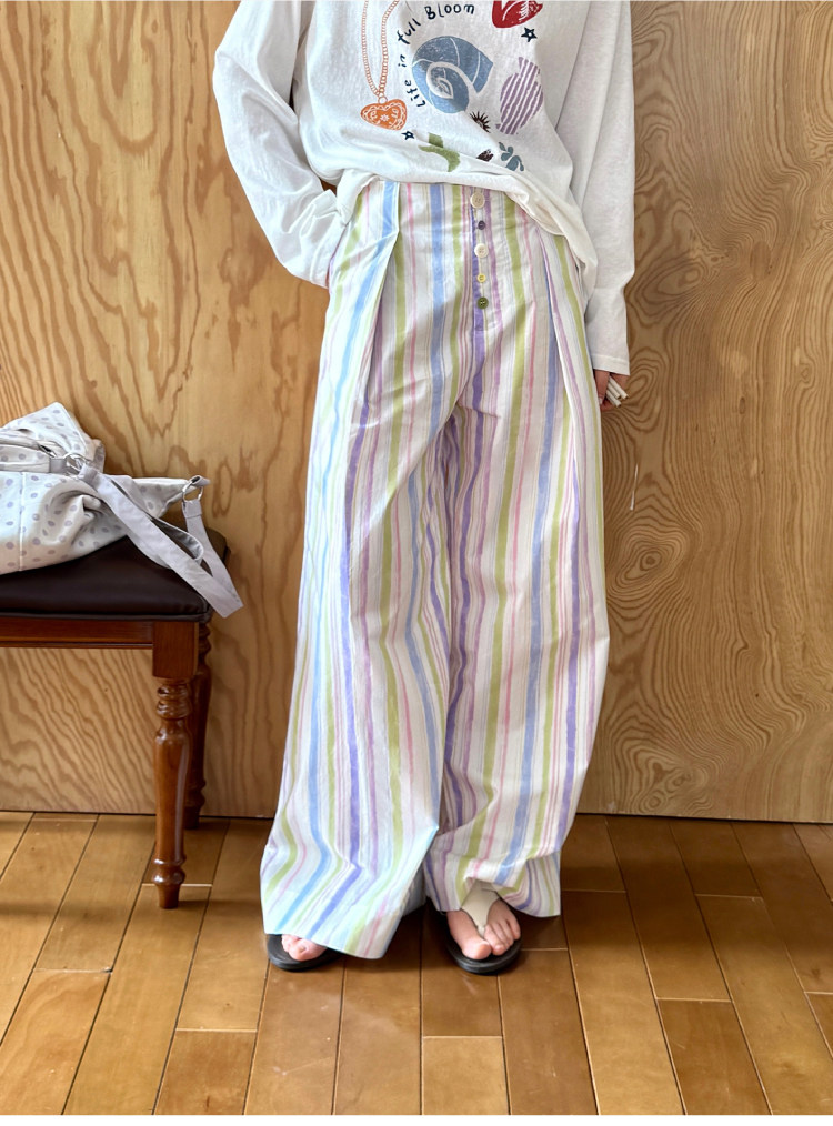 nothe Case布然/NC261816/「晕染画家」全棉褶间印花条纹裤