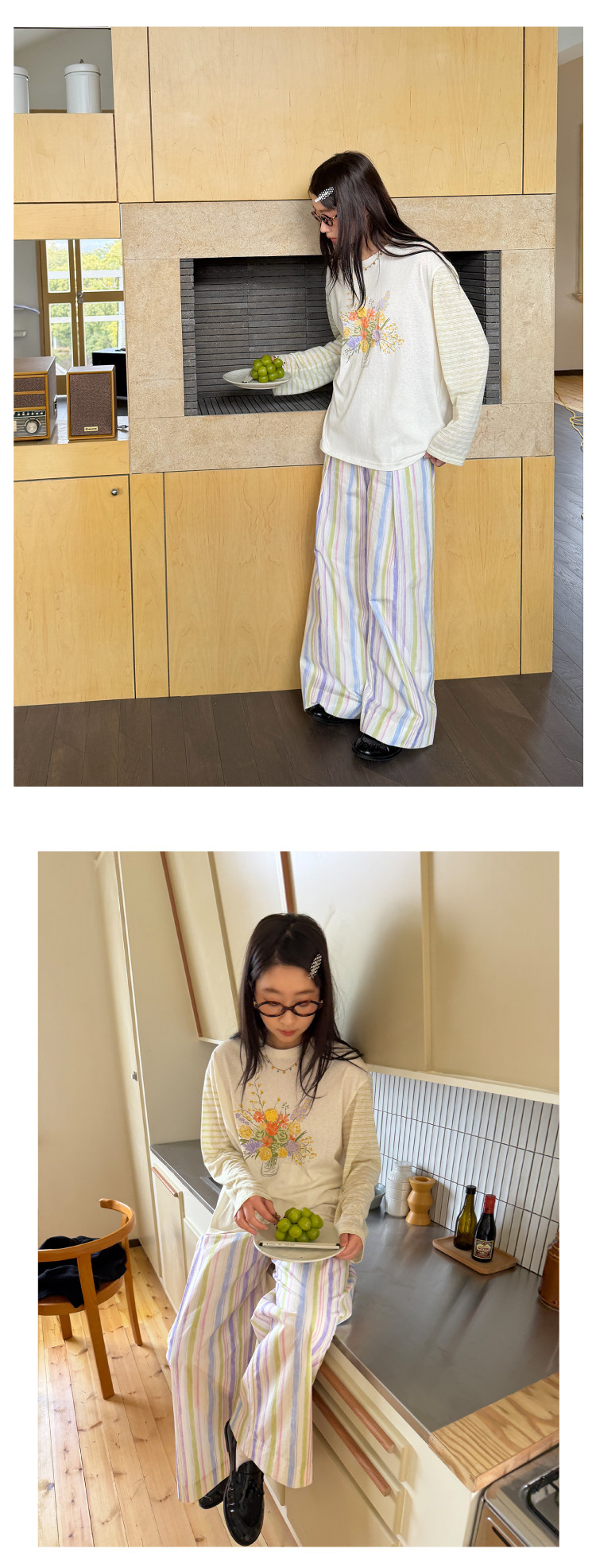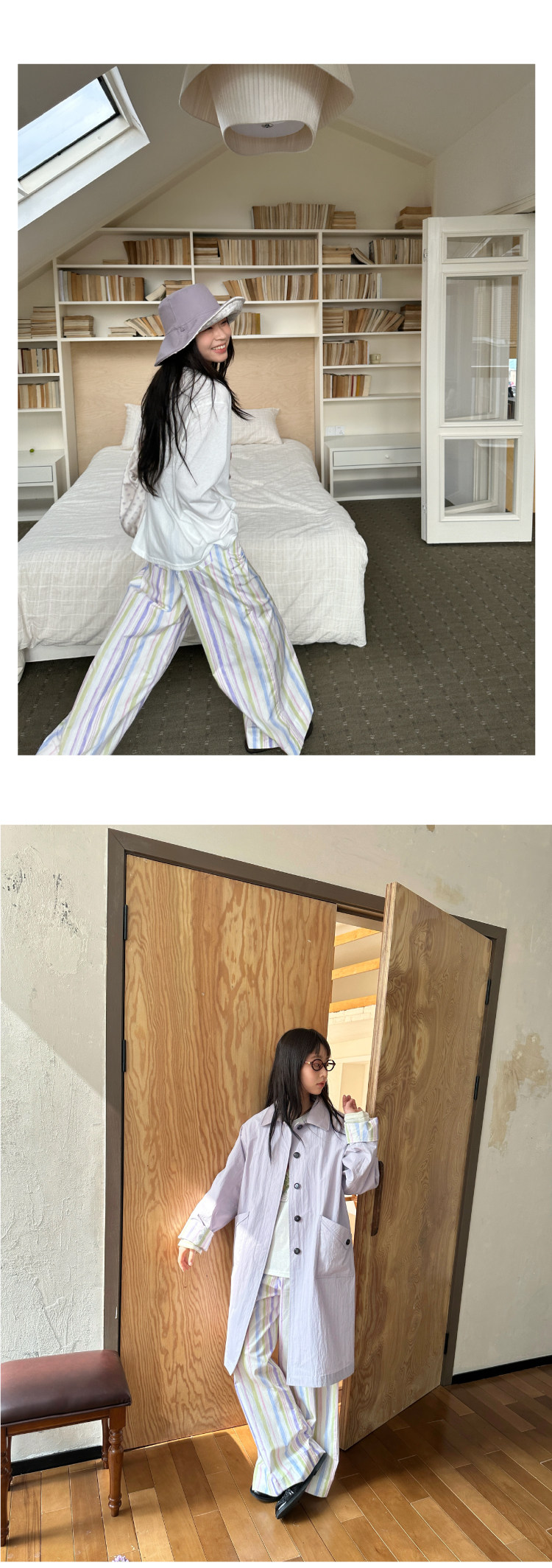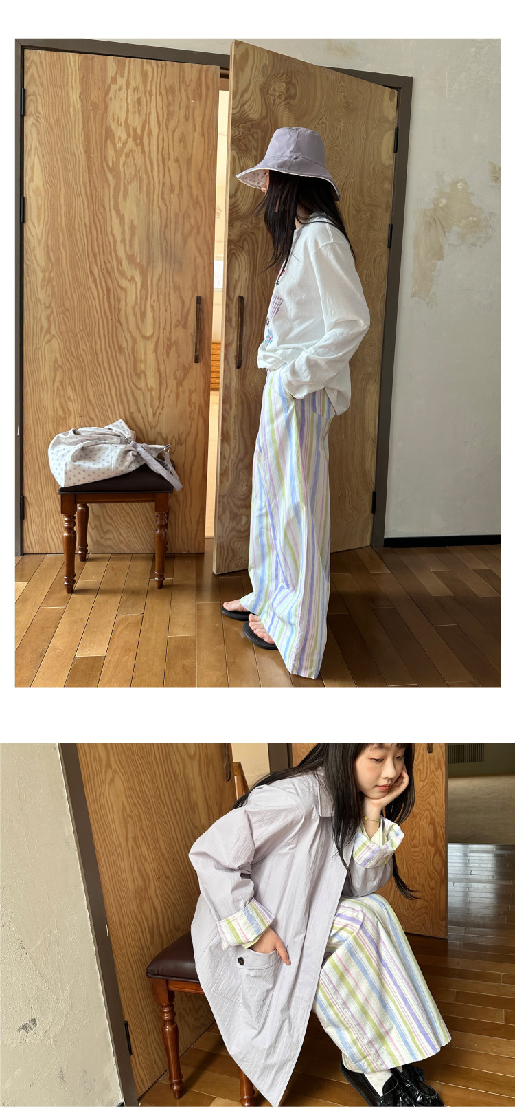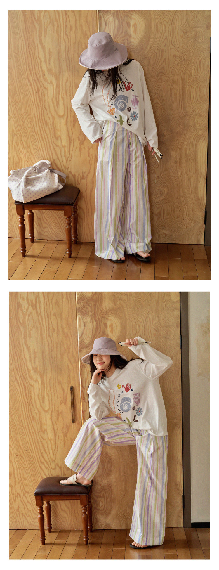 nothe Case布然/NC261816/「晕染画家」全棉褶间印花条纹裤