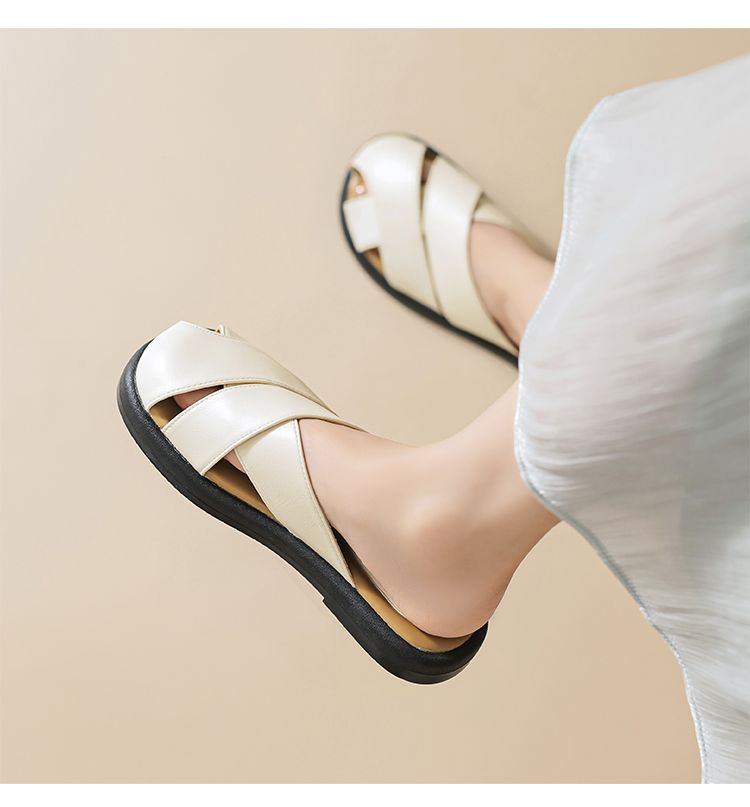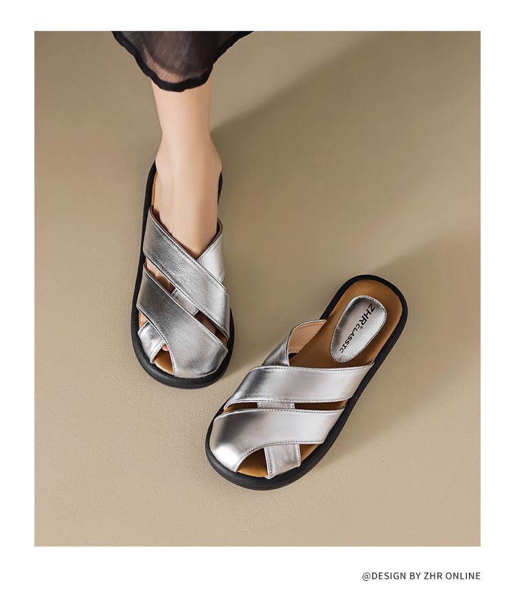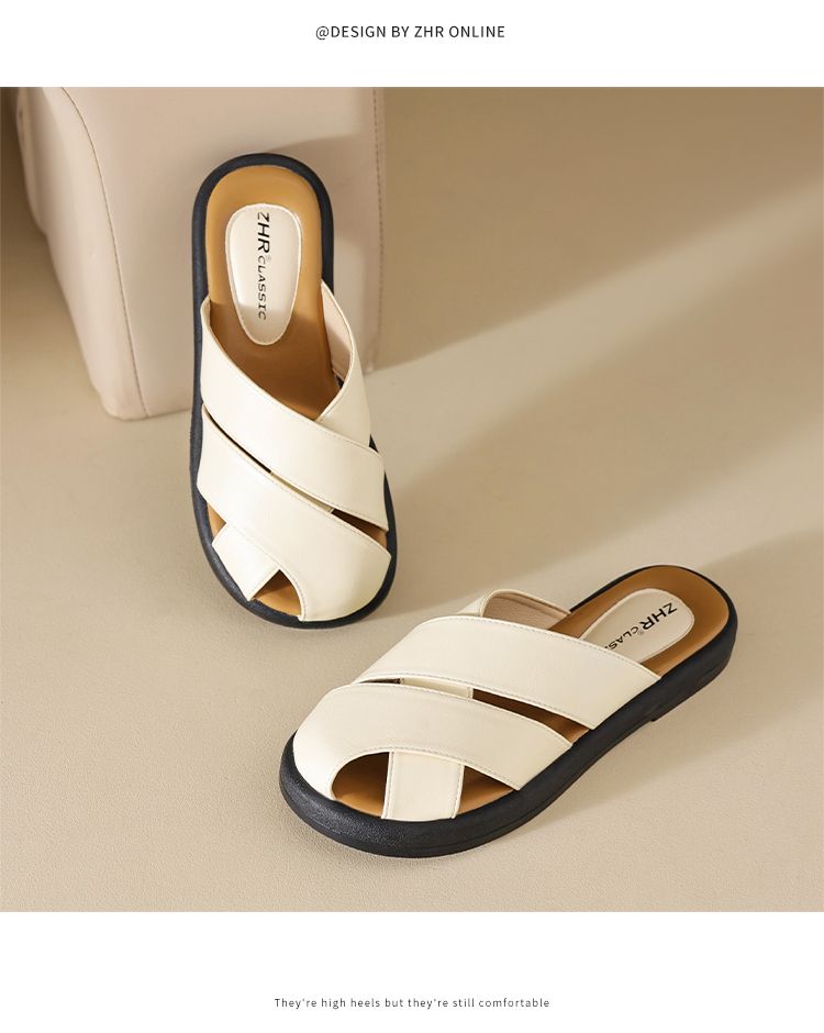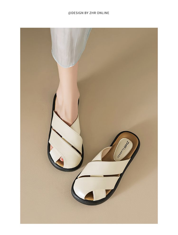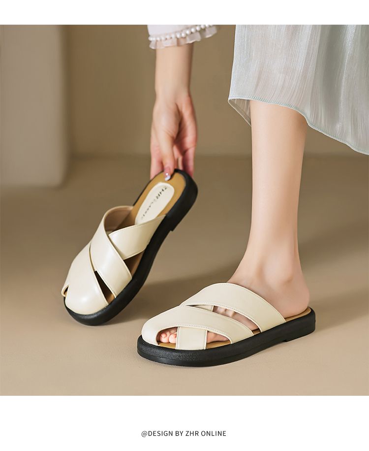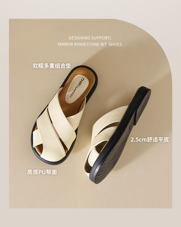ZHR则则平底包头女外出拖鞋2024夏季新款外穿复古懒人凉拖鞋防滑