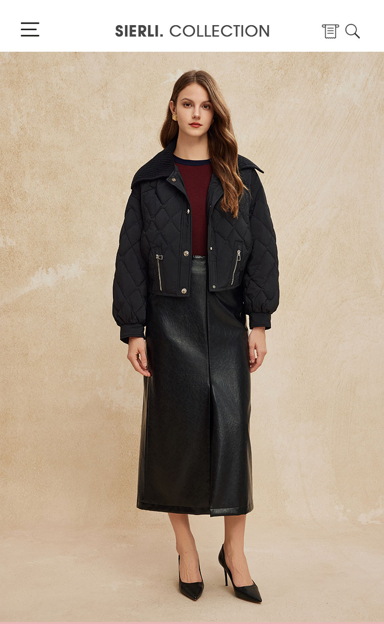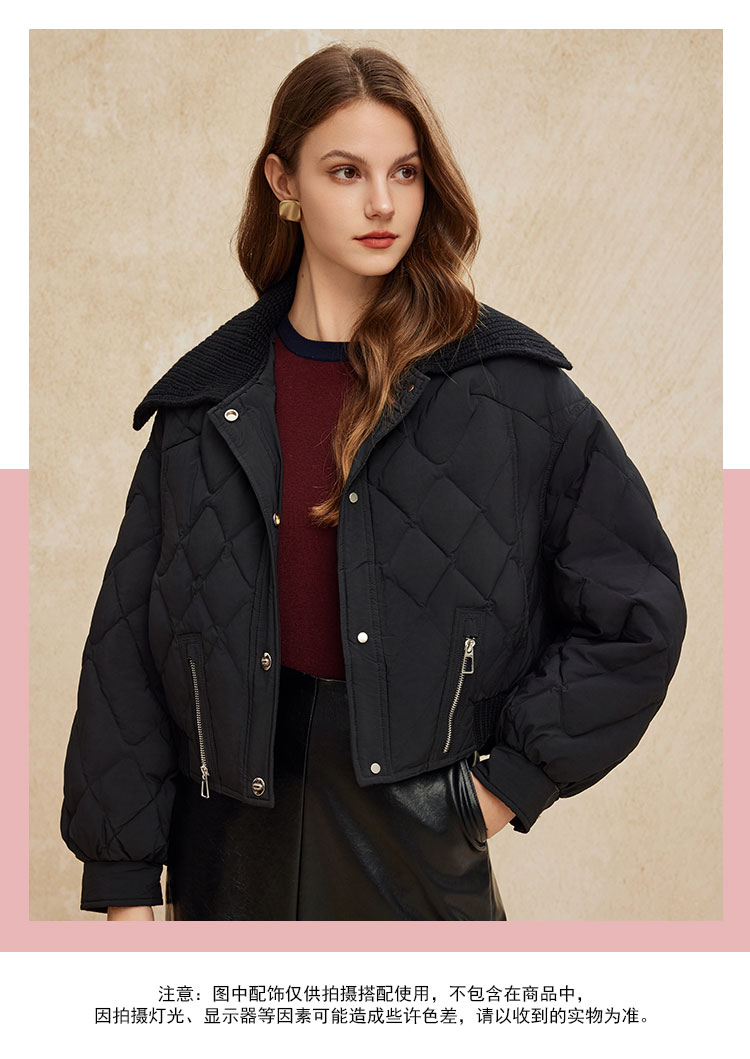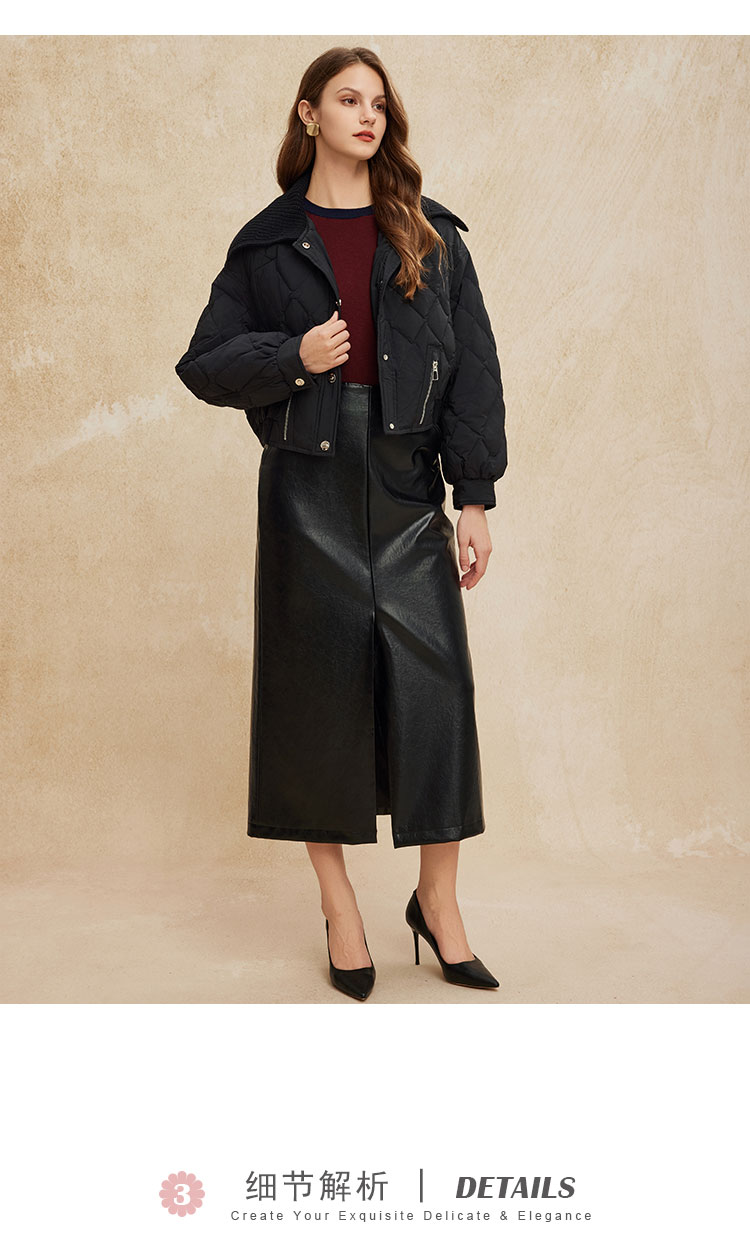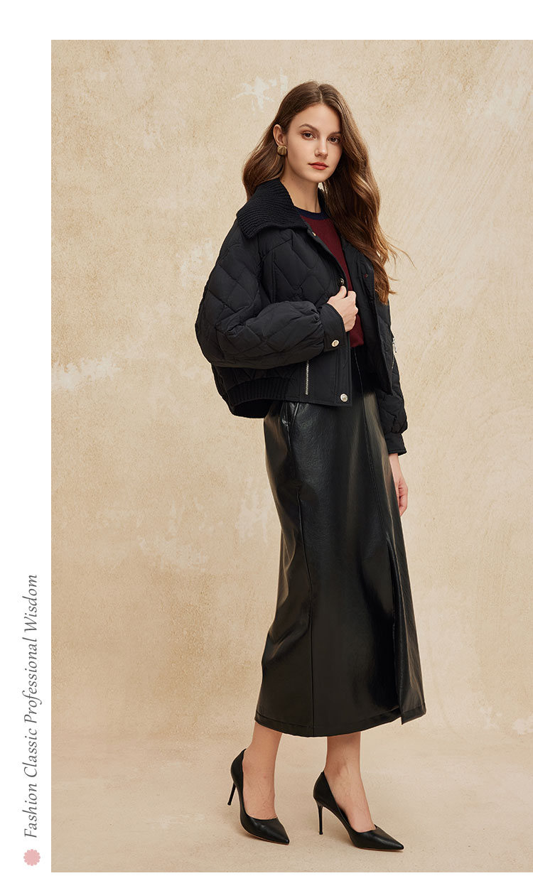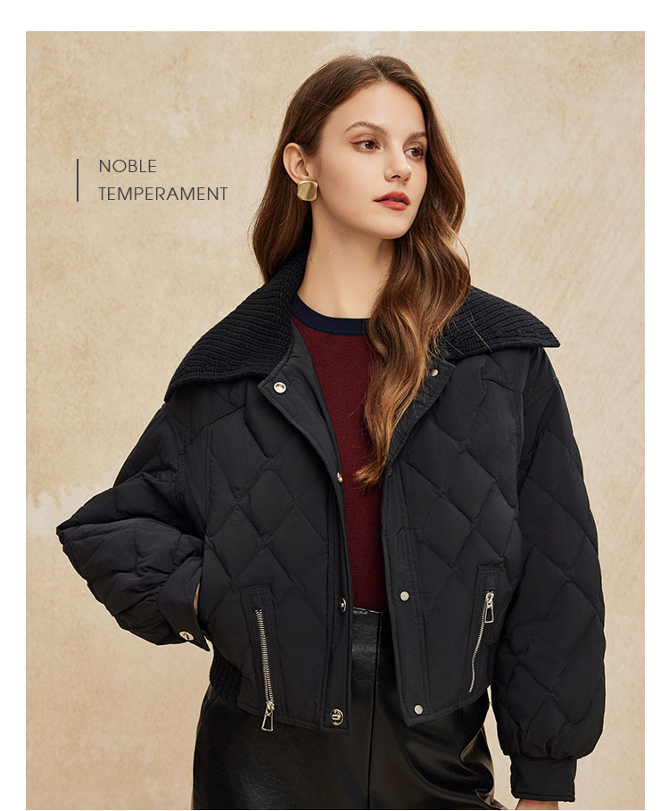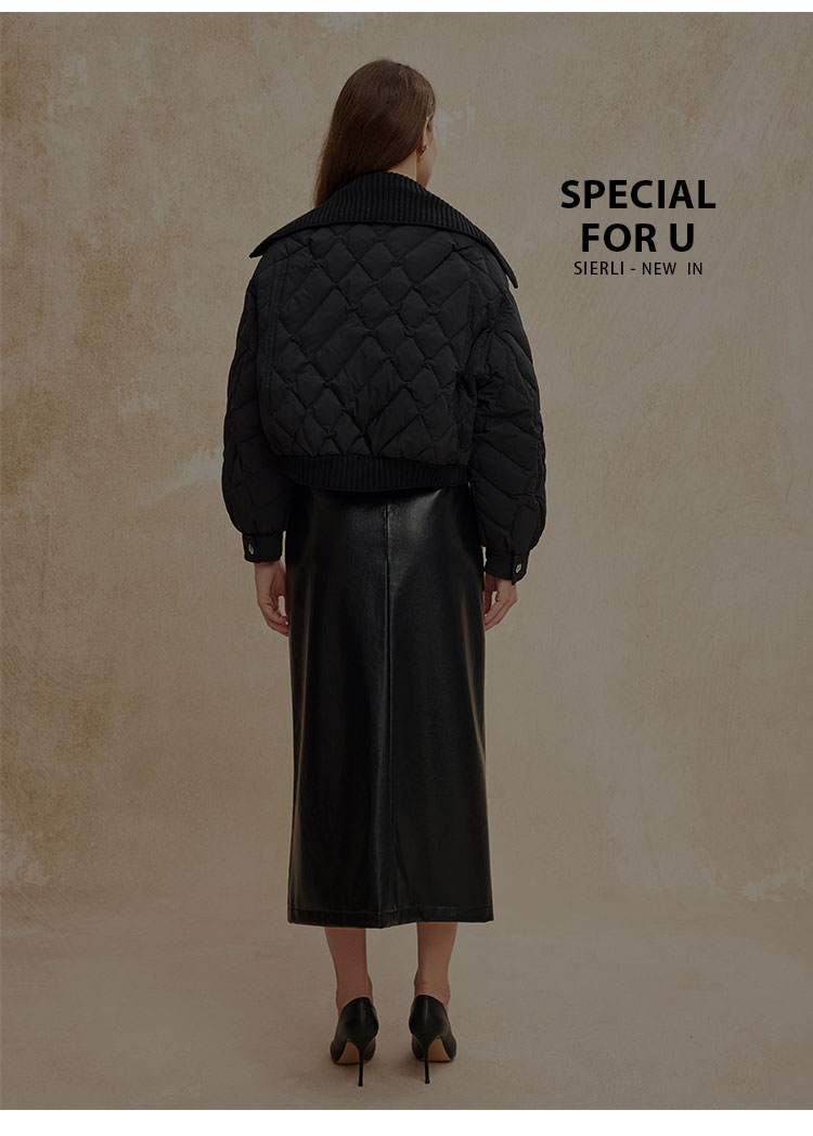 PR008斯尔丽24新款时尚甜酷风设计感短款针织翻领廓形减龄显高鸭绒羽绒服
