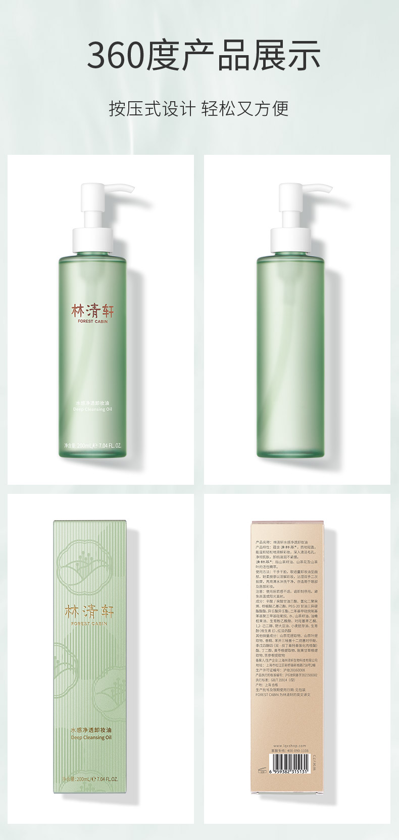 【特批加赠湿敷棉】林清轩水感净透卸妆油200ml深层清洁温和滋润清爽不油腻不紧绷舒缓肌肤