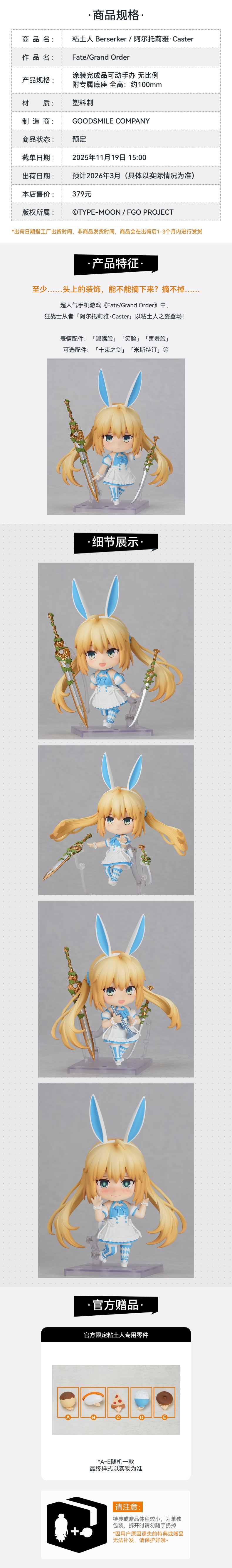 【GSC补款】粘土人 Berserker/阿尔托莉雅·Caster 手办模玩 Fate/Grand Order