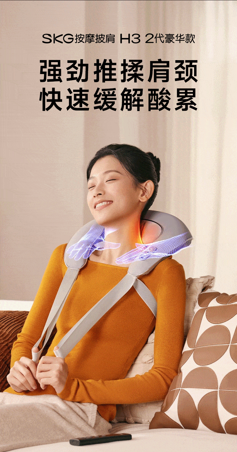 SKG颈椎按摩器【H3-2豪华款】肩颈椎按摩披肩按摩垫充电便携斜方肌揉捏车载腰背腿部按摩