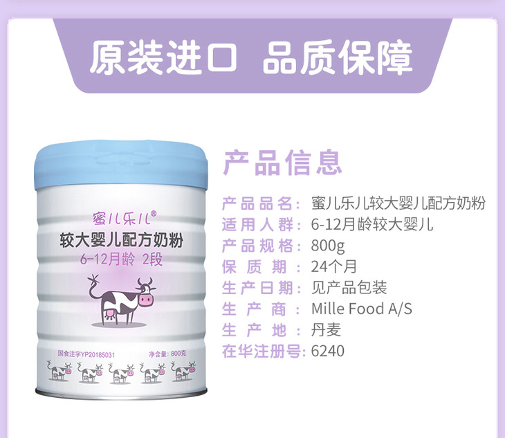 Mille麦蔻【蜜儿乐儿2段800g】6-12个月较大婴儿配方奶粉【New】【麦蔻】
