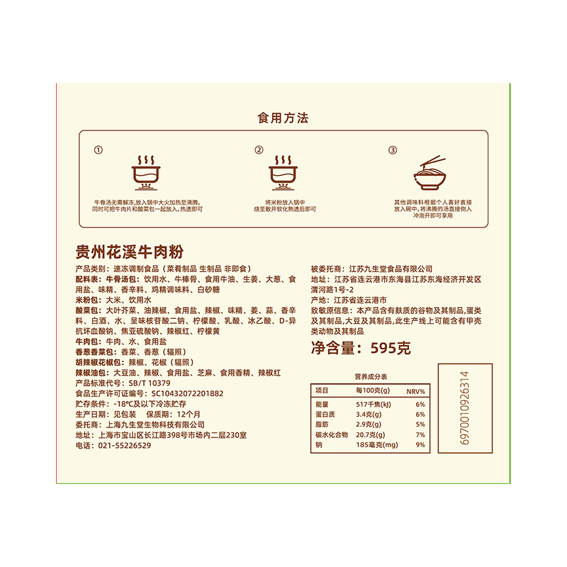 【发出后不支持拦截退货】九生堂 贵州花溪牛肉粉 595g*4