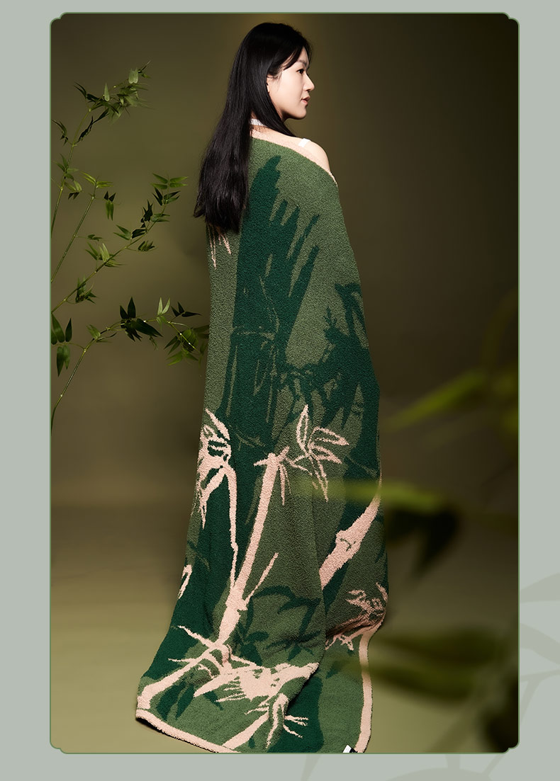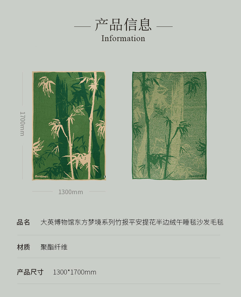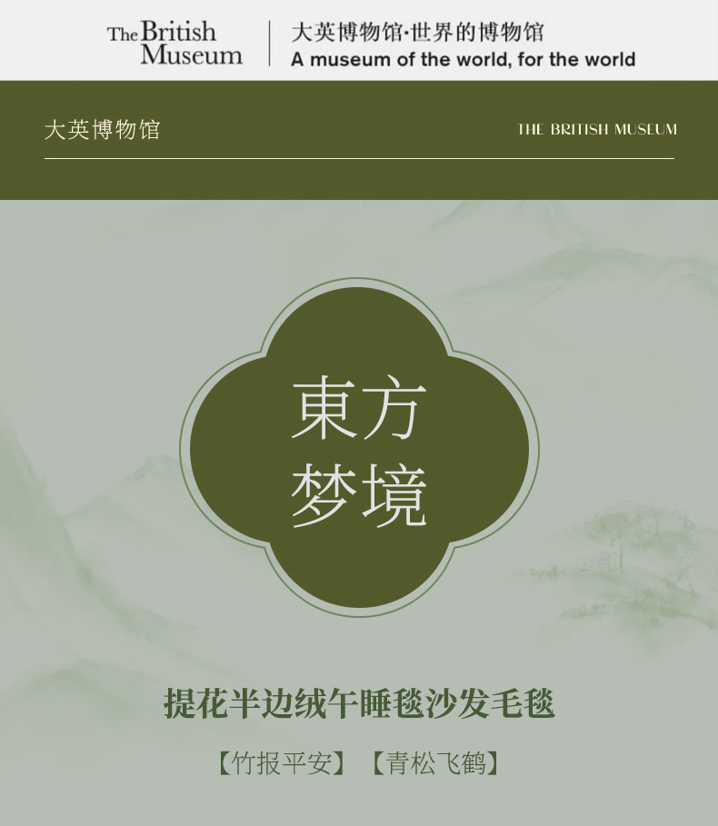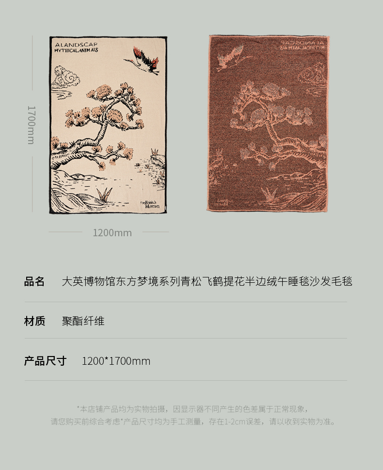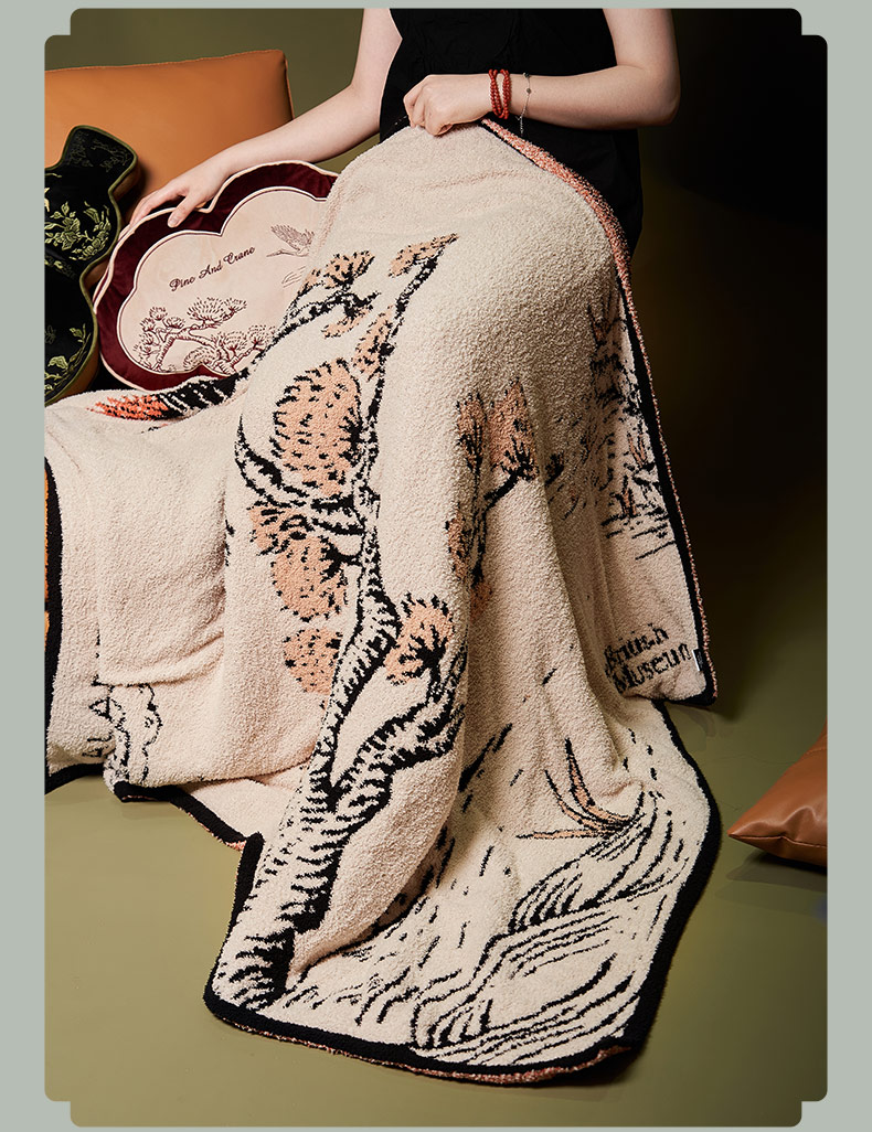 大英博物馆 东方梦境系列 竹报平安 青松飞鹤 提花 半边绒 午睡毯 沙发毛毯