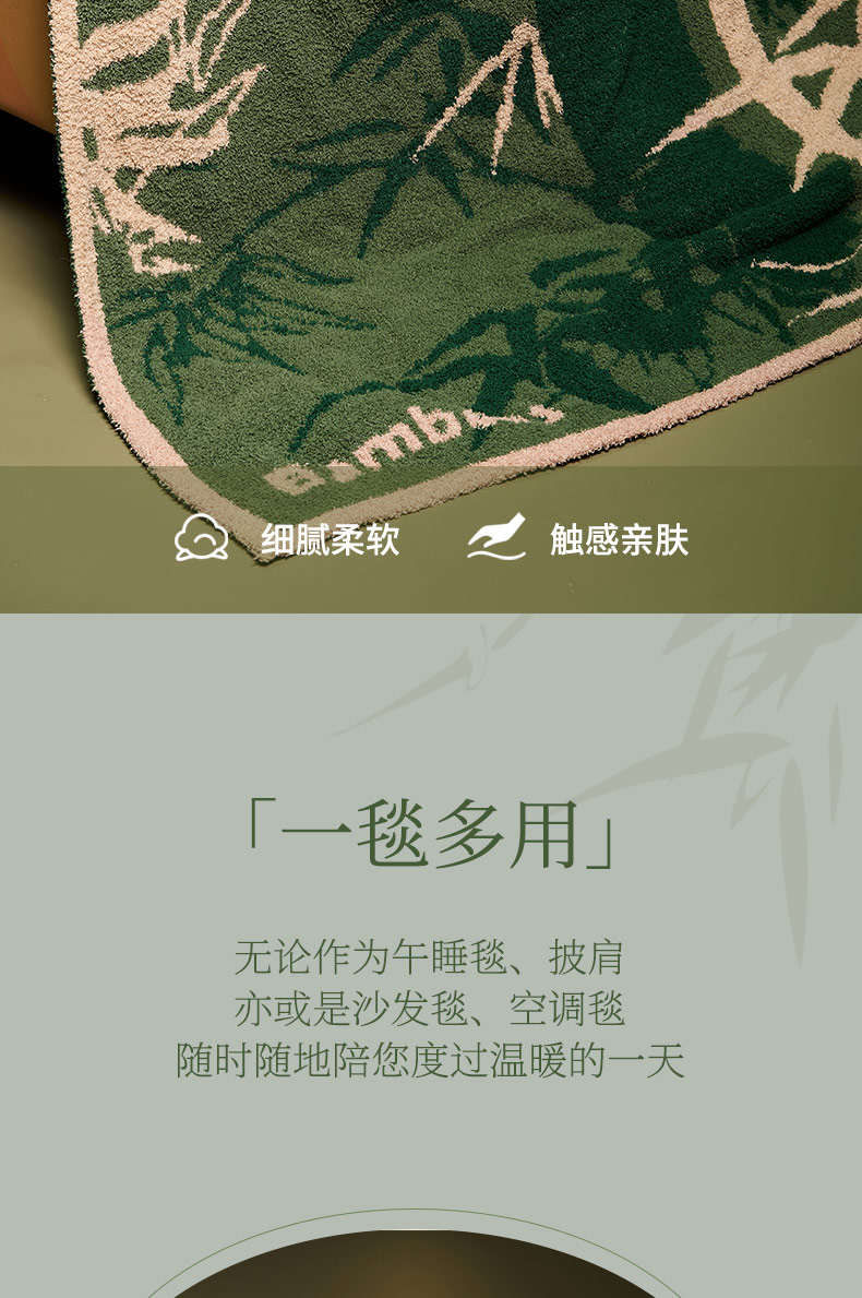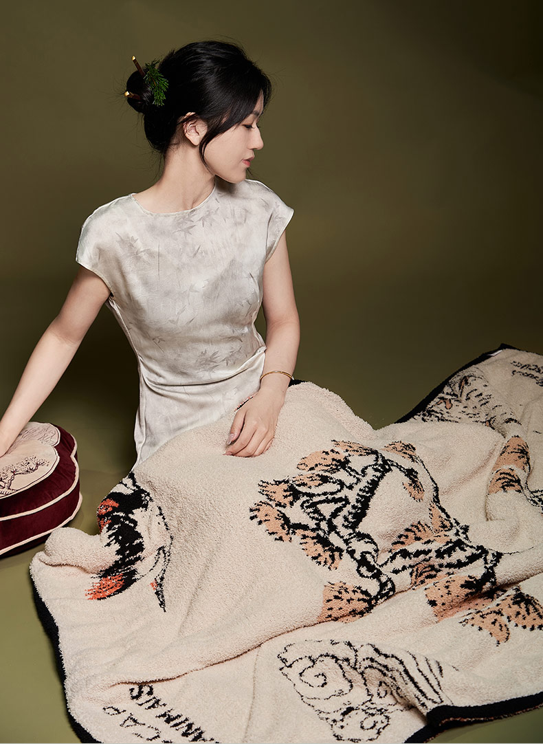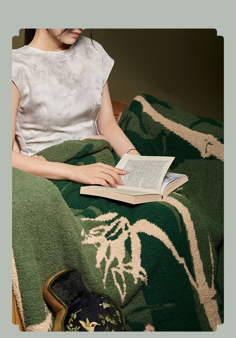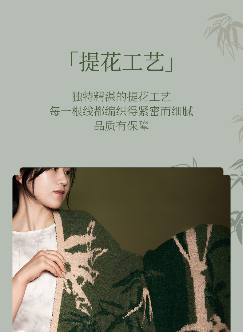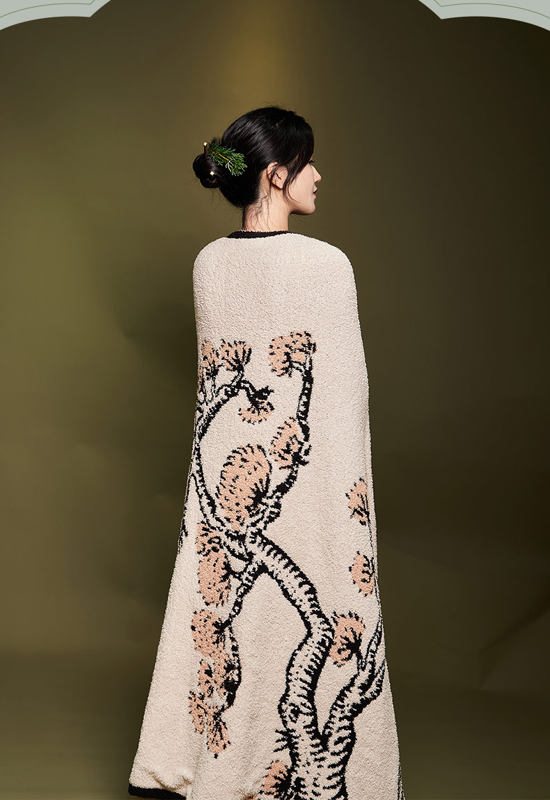 大英博物馆 东方梦境系列 竹报平安 青松飞鹤 提花 半边绒 午睡毯 沙发毛毯
