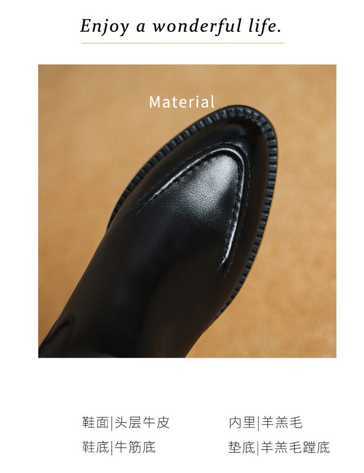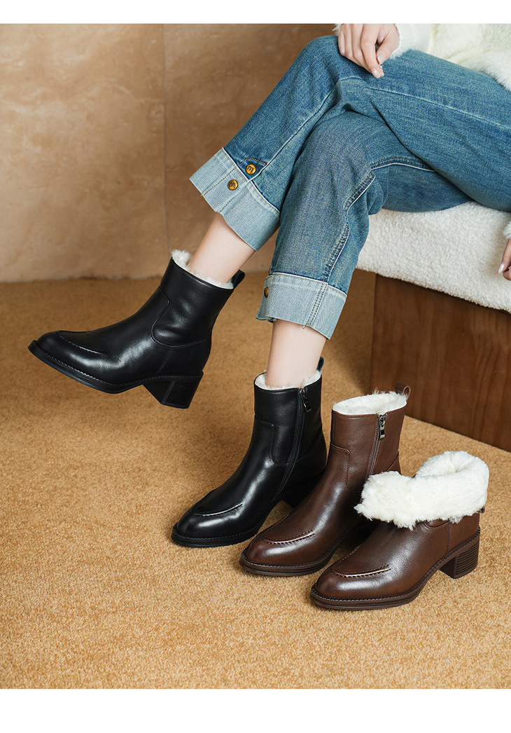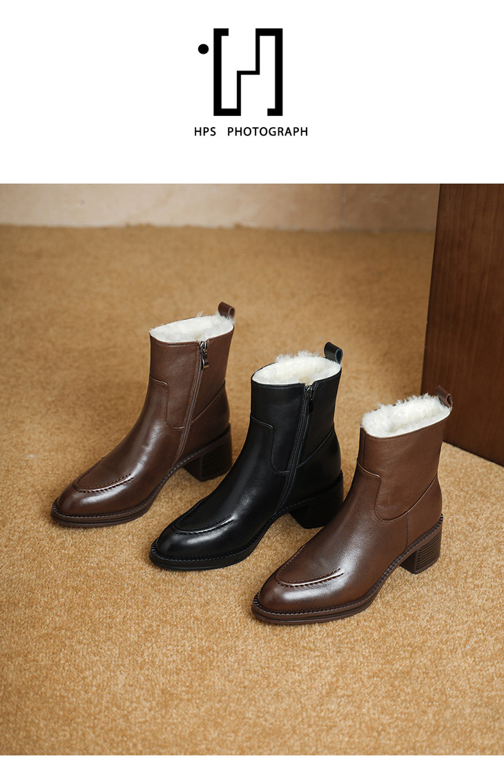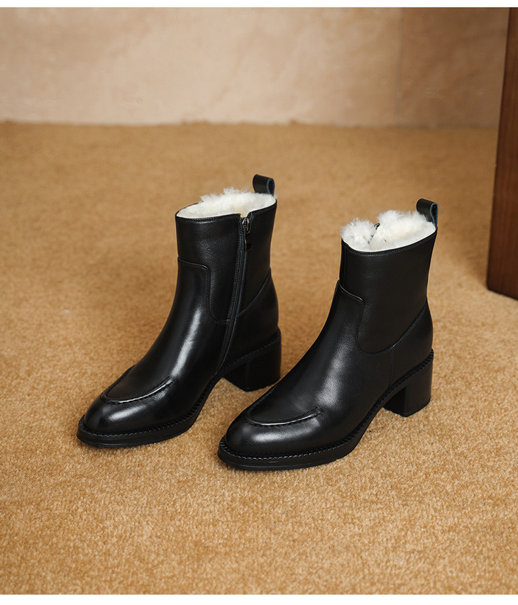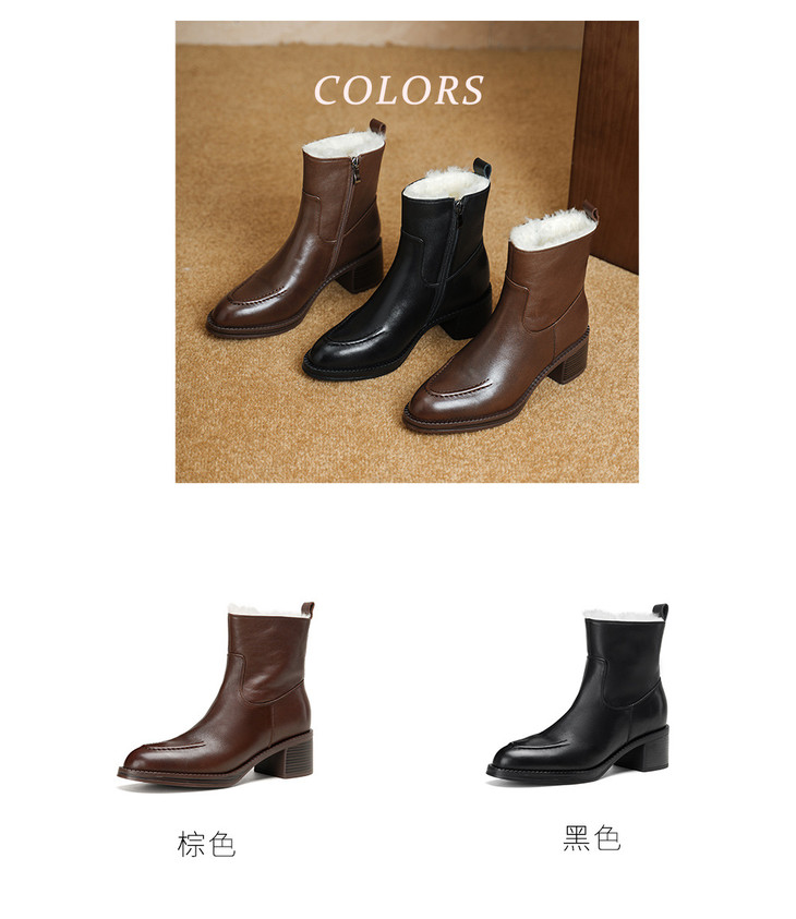 【预售5天】2025冬季新款粗高跟尖头侧拉链羊皮雪地靴毛鞋短靴GP3631