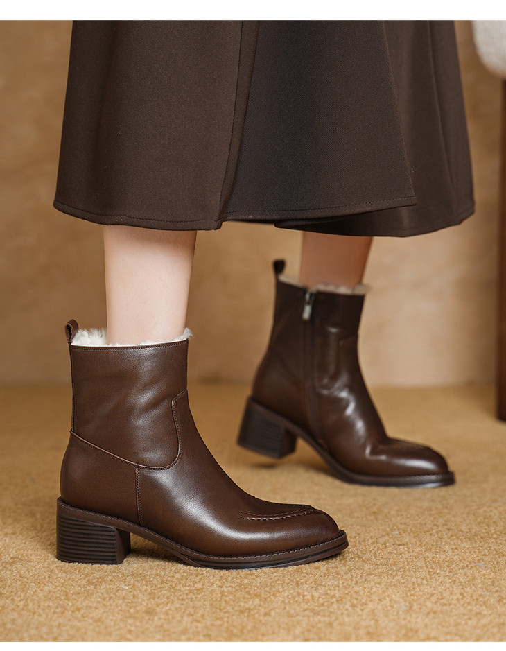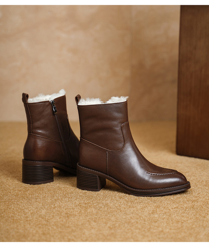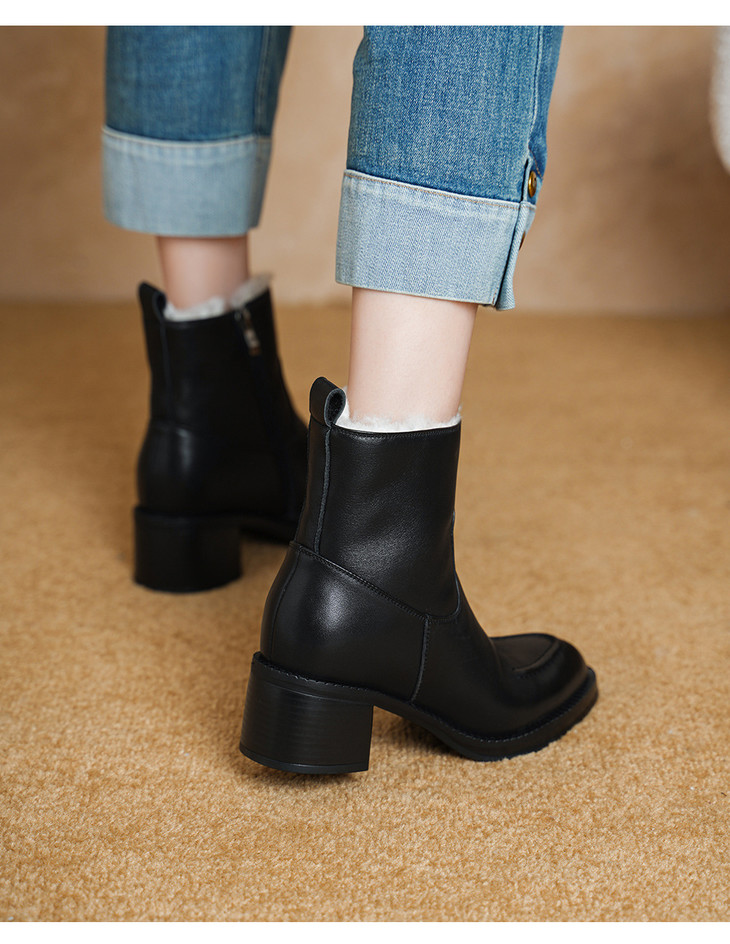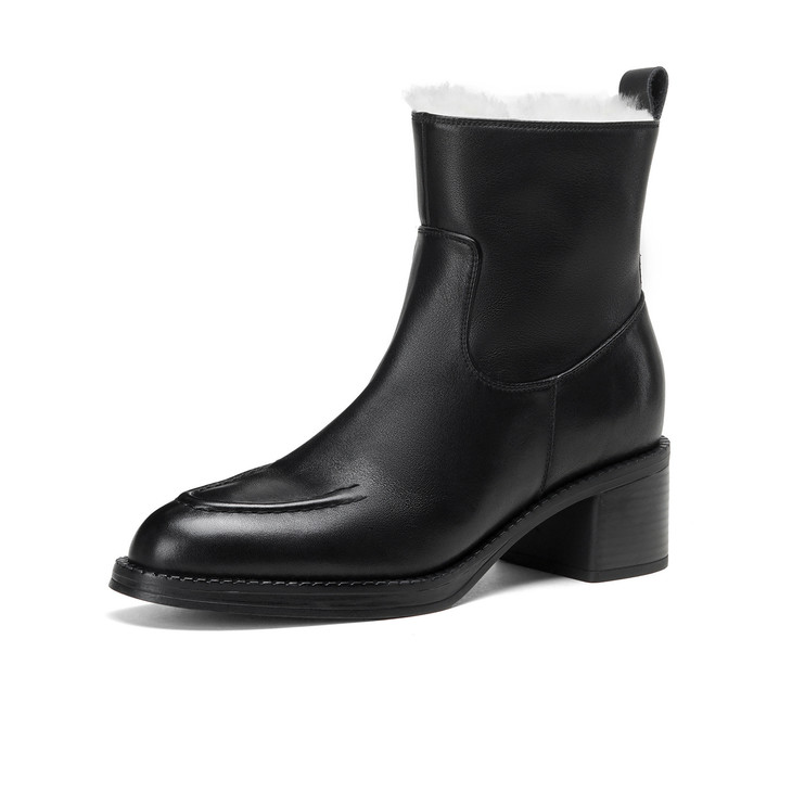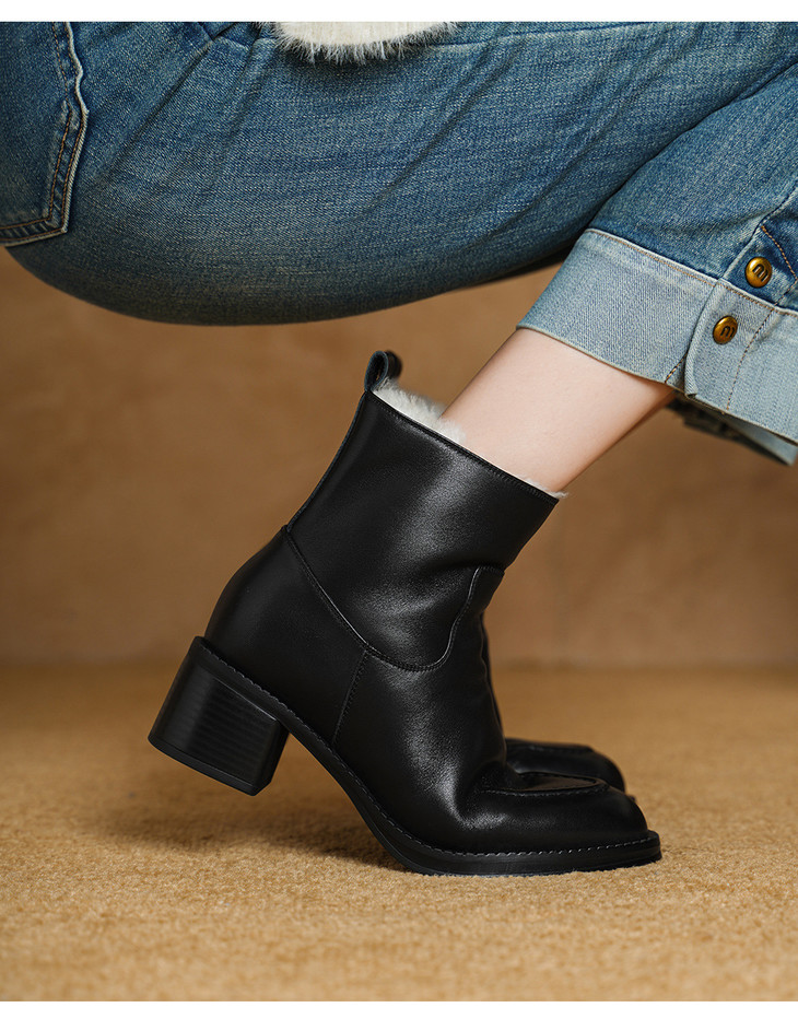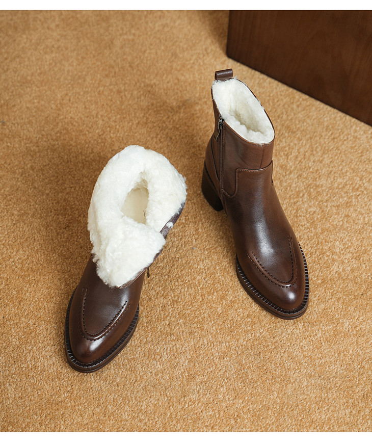 【预售5天】2025冬季新款粗高跟尖头侧拉链羊皮雪地靴毛鞋短靴GP3631