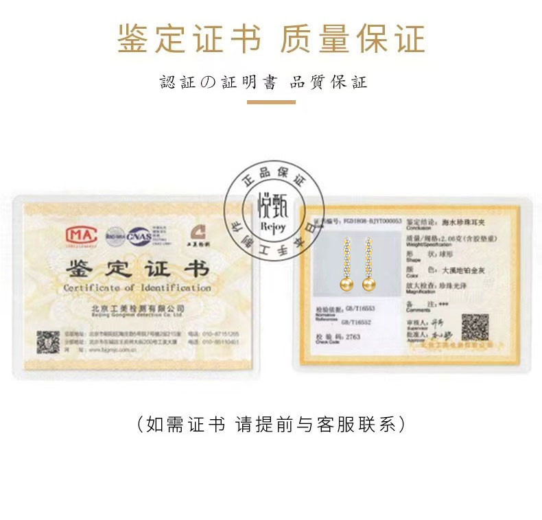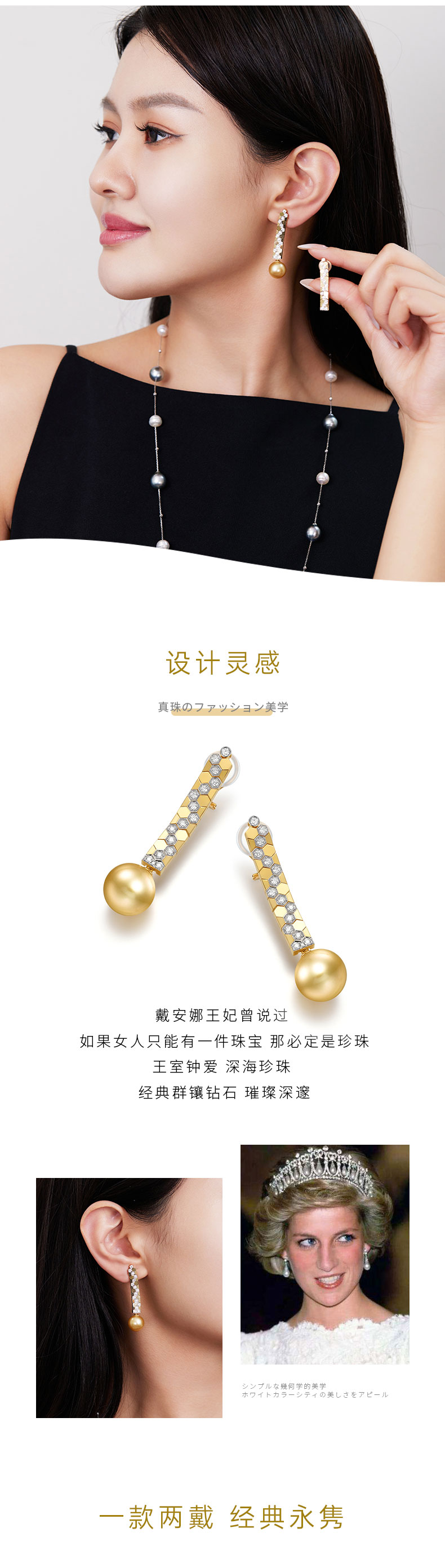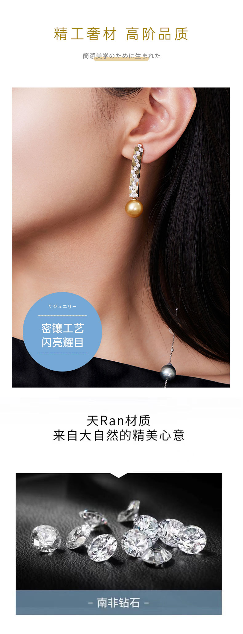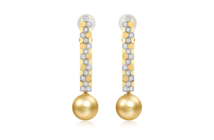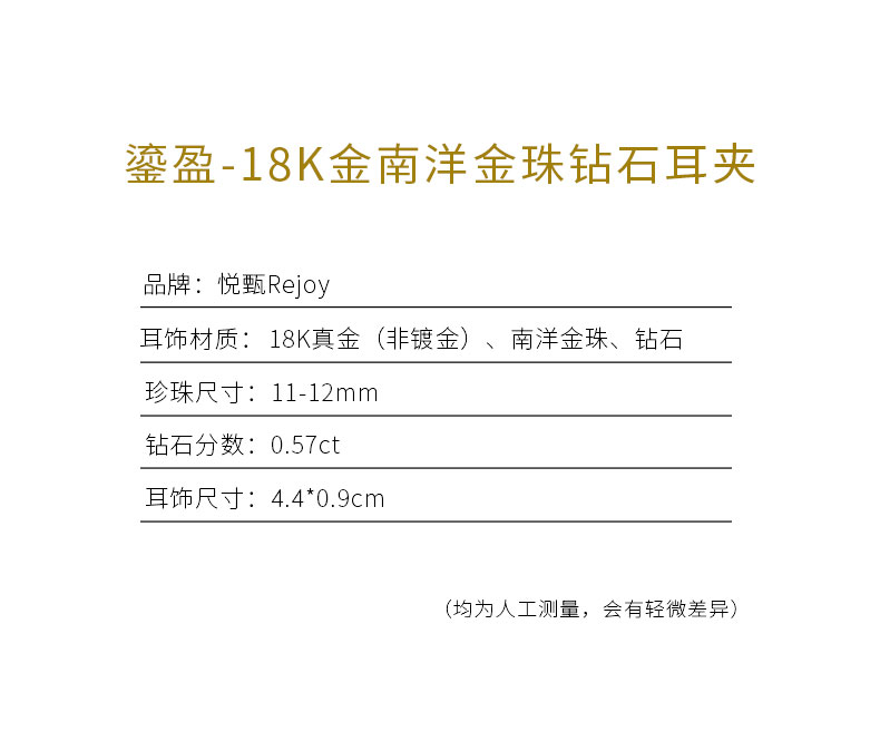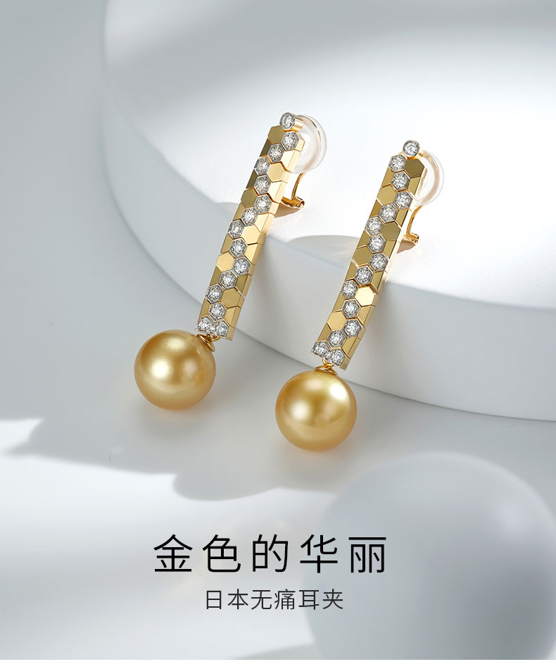 【天猫同款】悦甄 鎏盈-18k金南洋金珠钻石耳夹