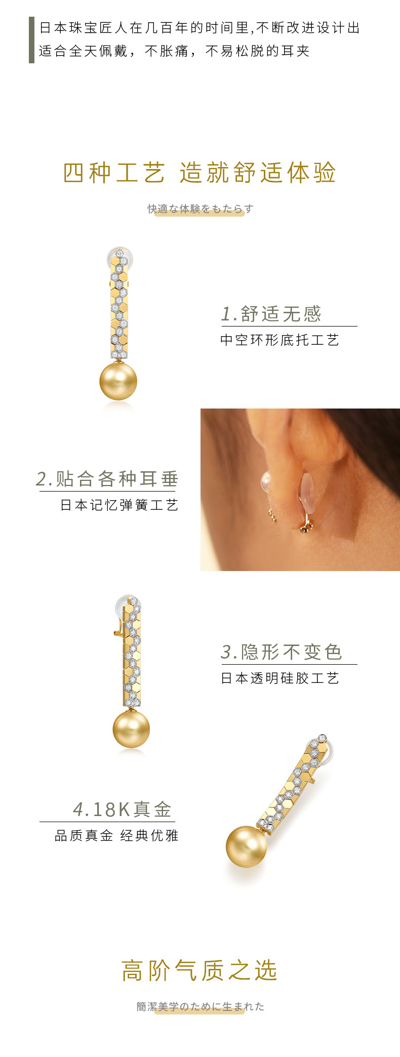 【天猫同款】悦甄 classic 日本无痛耳夹南洋金珍珠弹力耳夹
