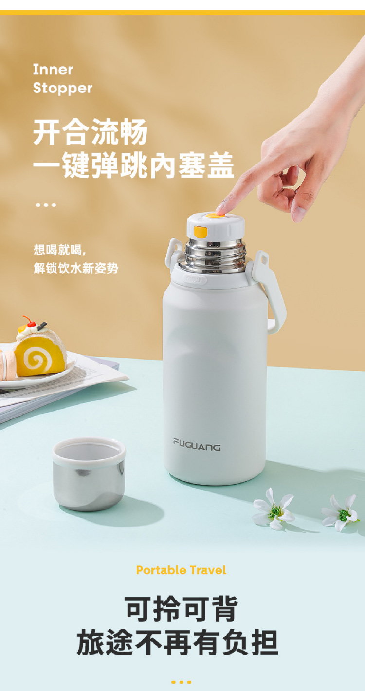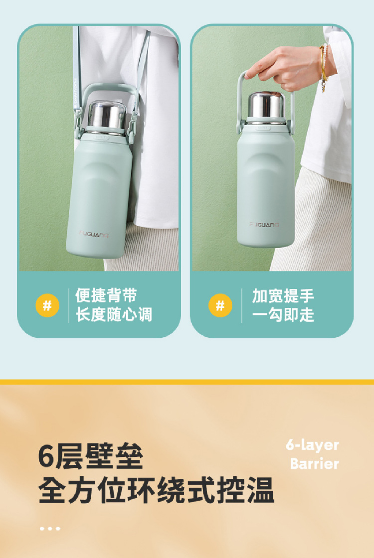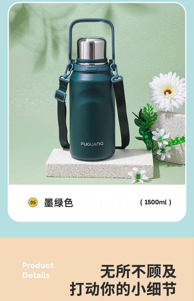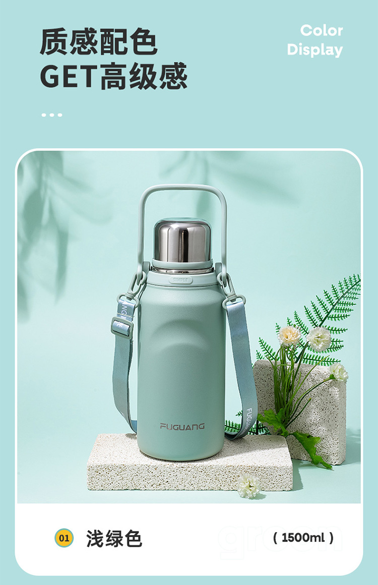 【大水壶保温杯】简约出游便携保温杯1500ML大容量 不锈钢真空水壶男女户外运动水杯