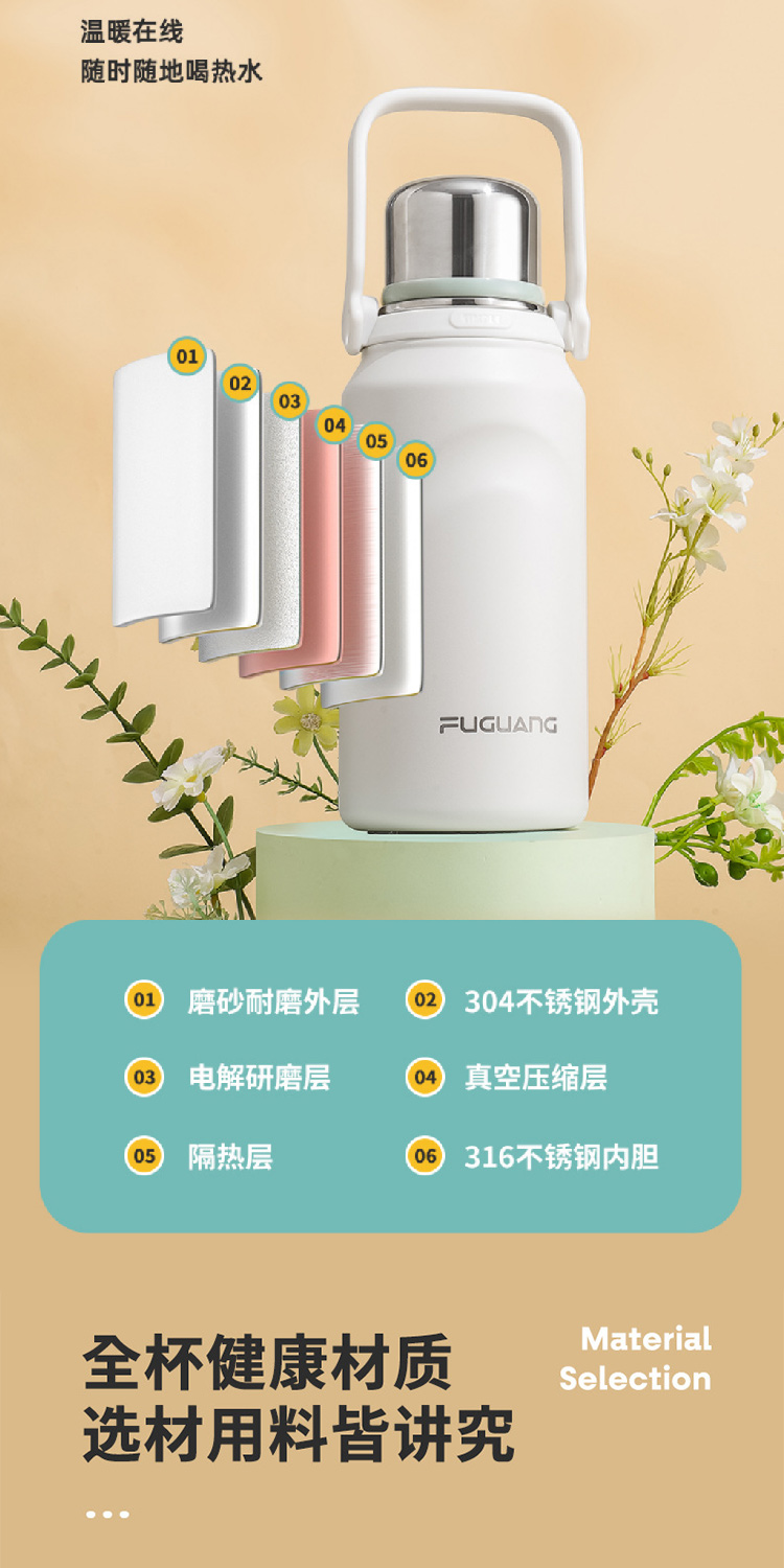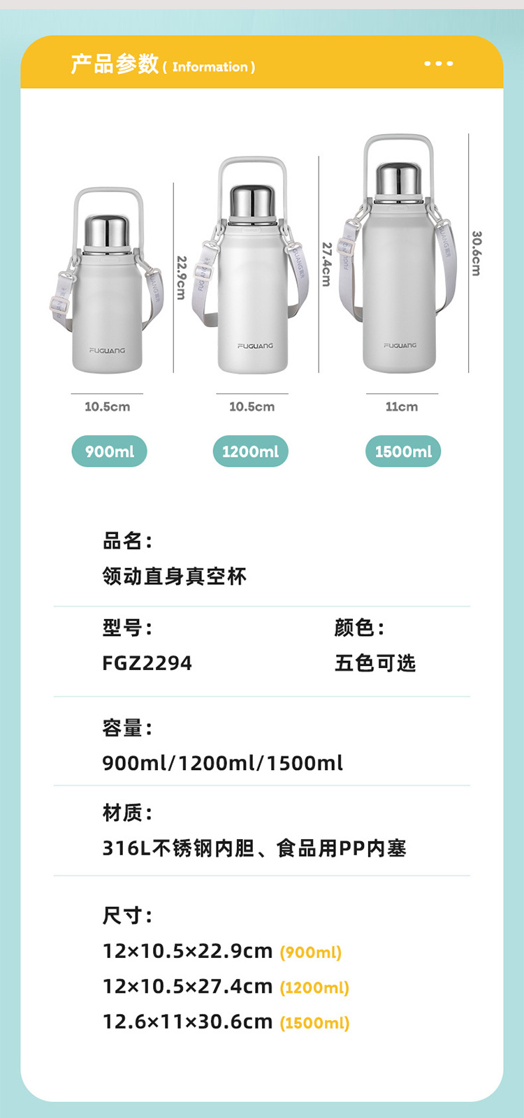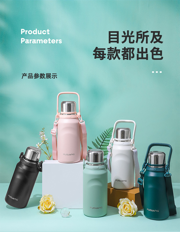 【大水壶保温杯】简约出游便携保温杯1500ML大容量 不锈钢真空水壶男女户外运动水杯