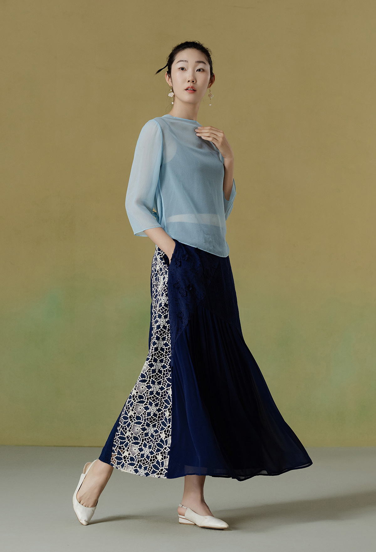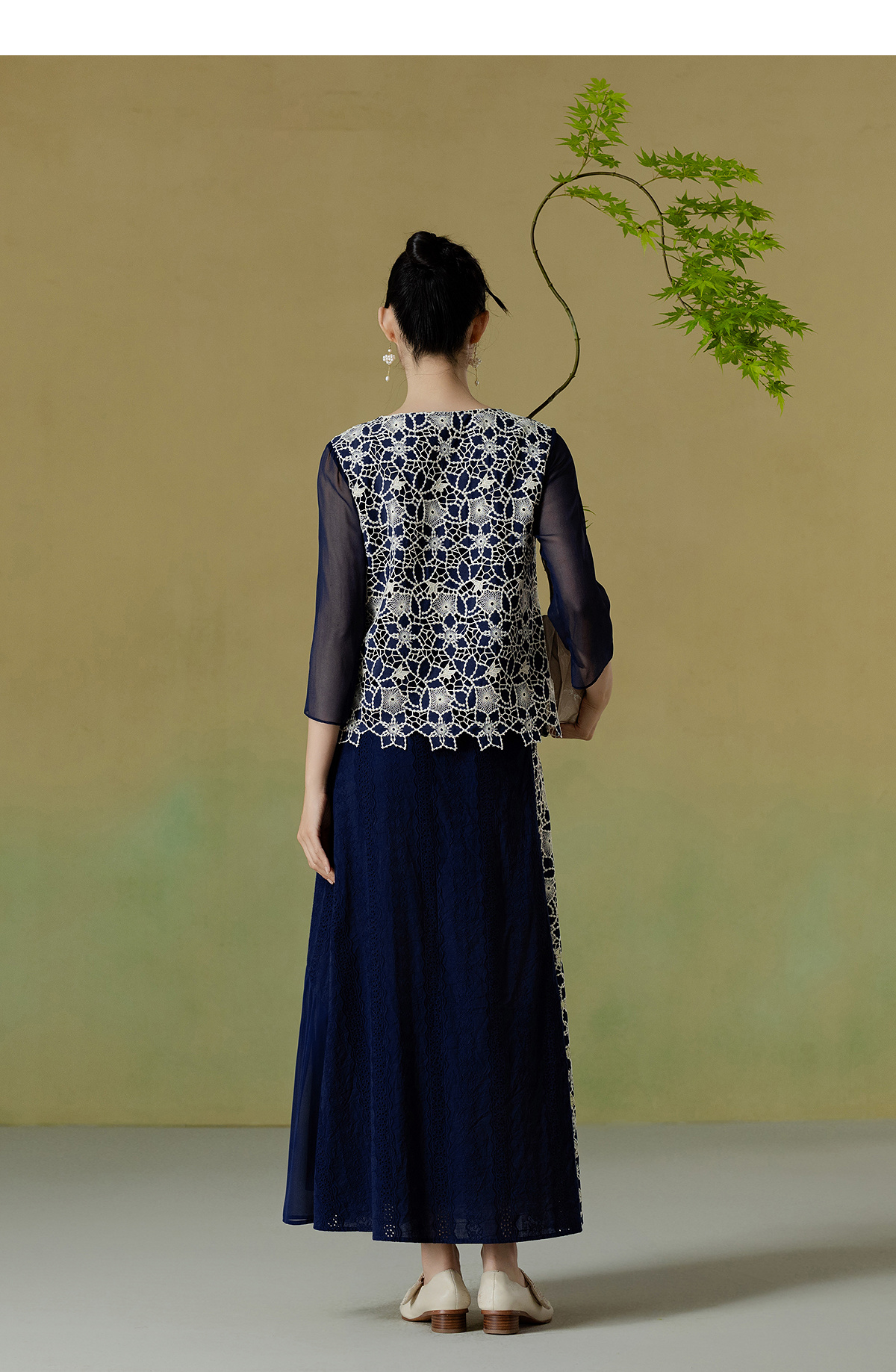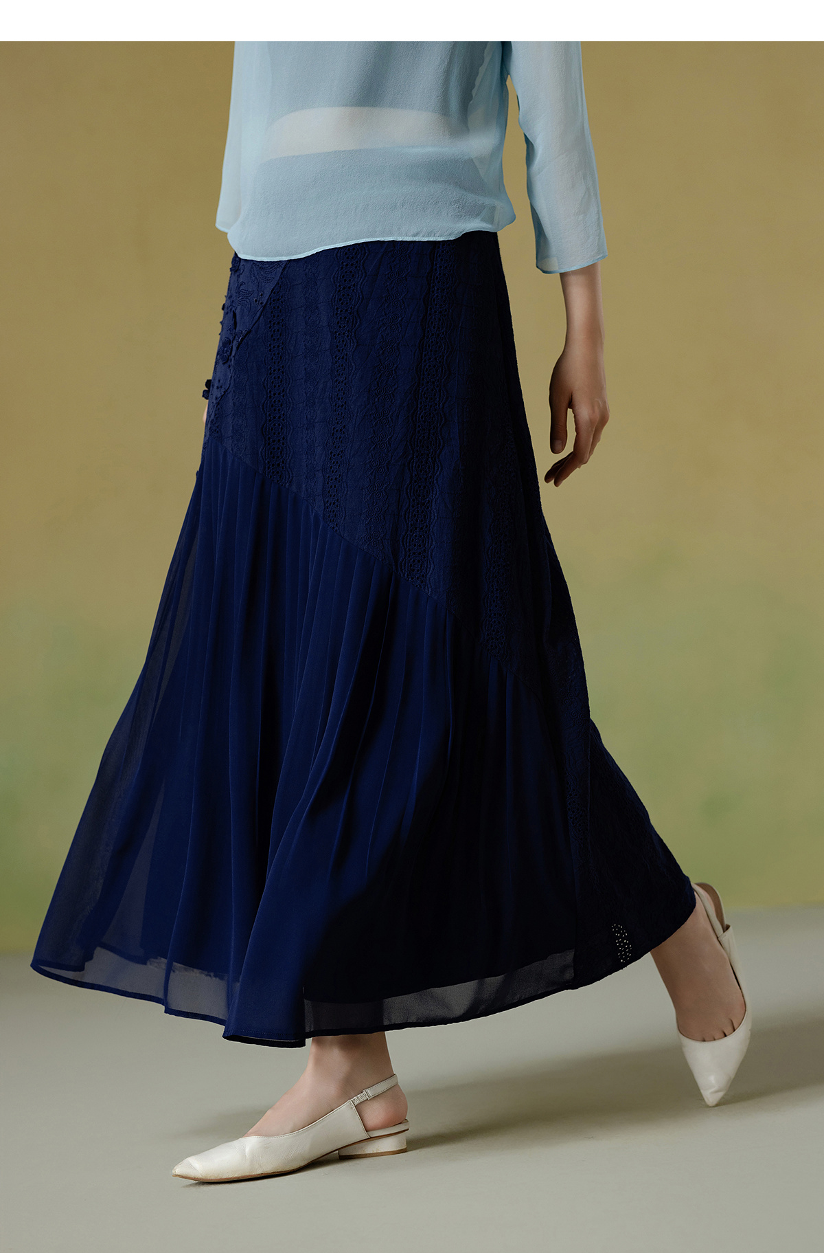 【林栖设计小店】纯棉半身裙拼镂空蕾丝绣花立体优雅2025夏季新品裙子女1952062