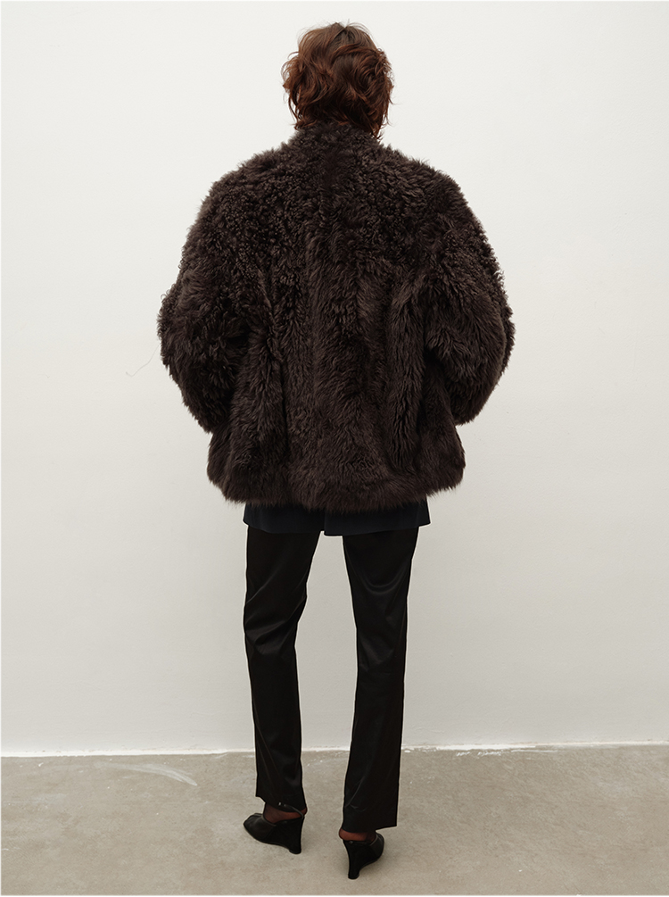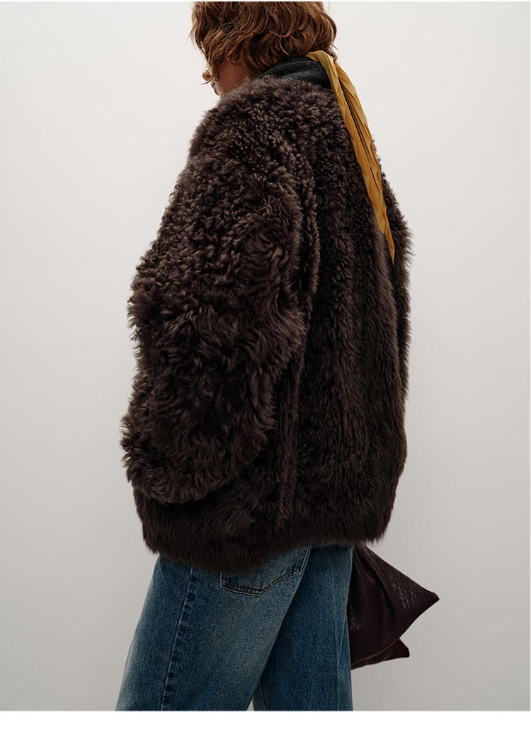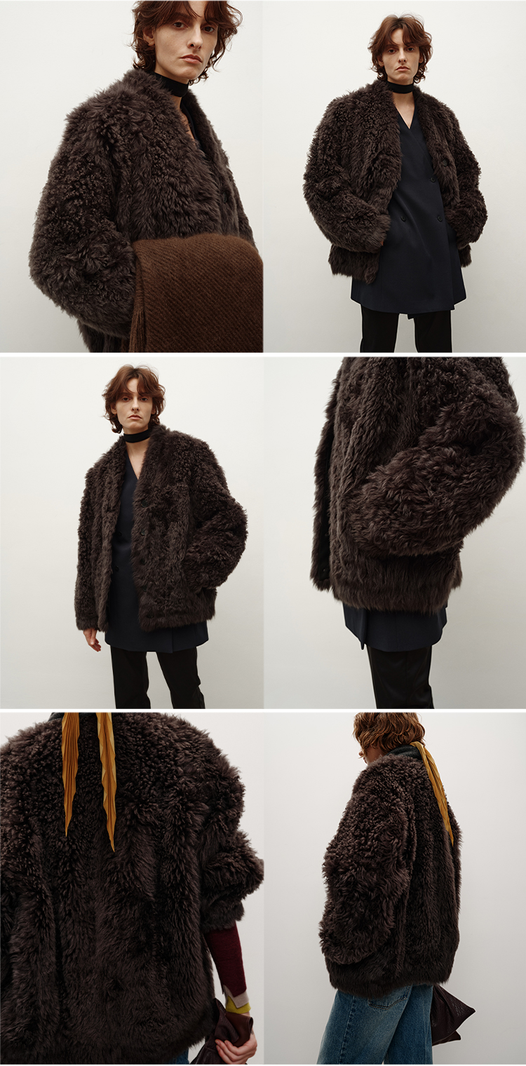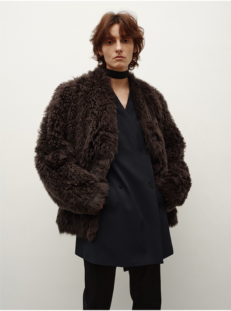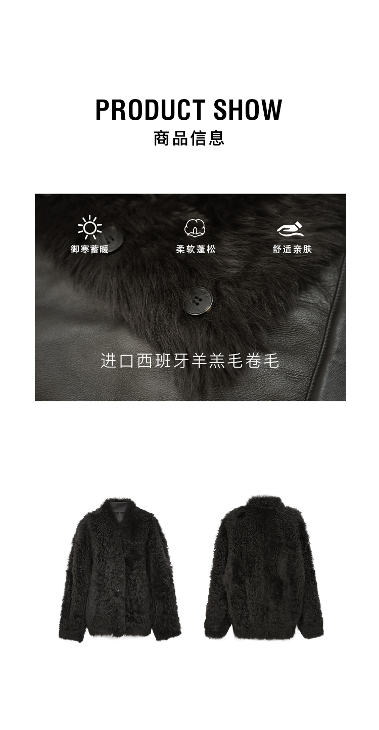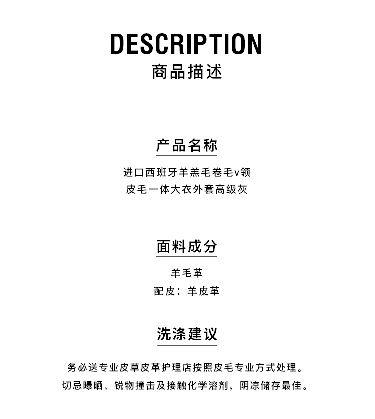 HIDEMI 大秀款进口西班牙羊羔毛卷毛v领皮毛一体大衣外套 高级灰
